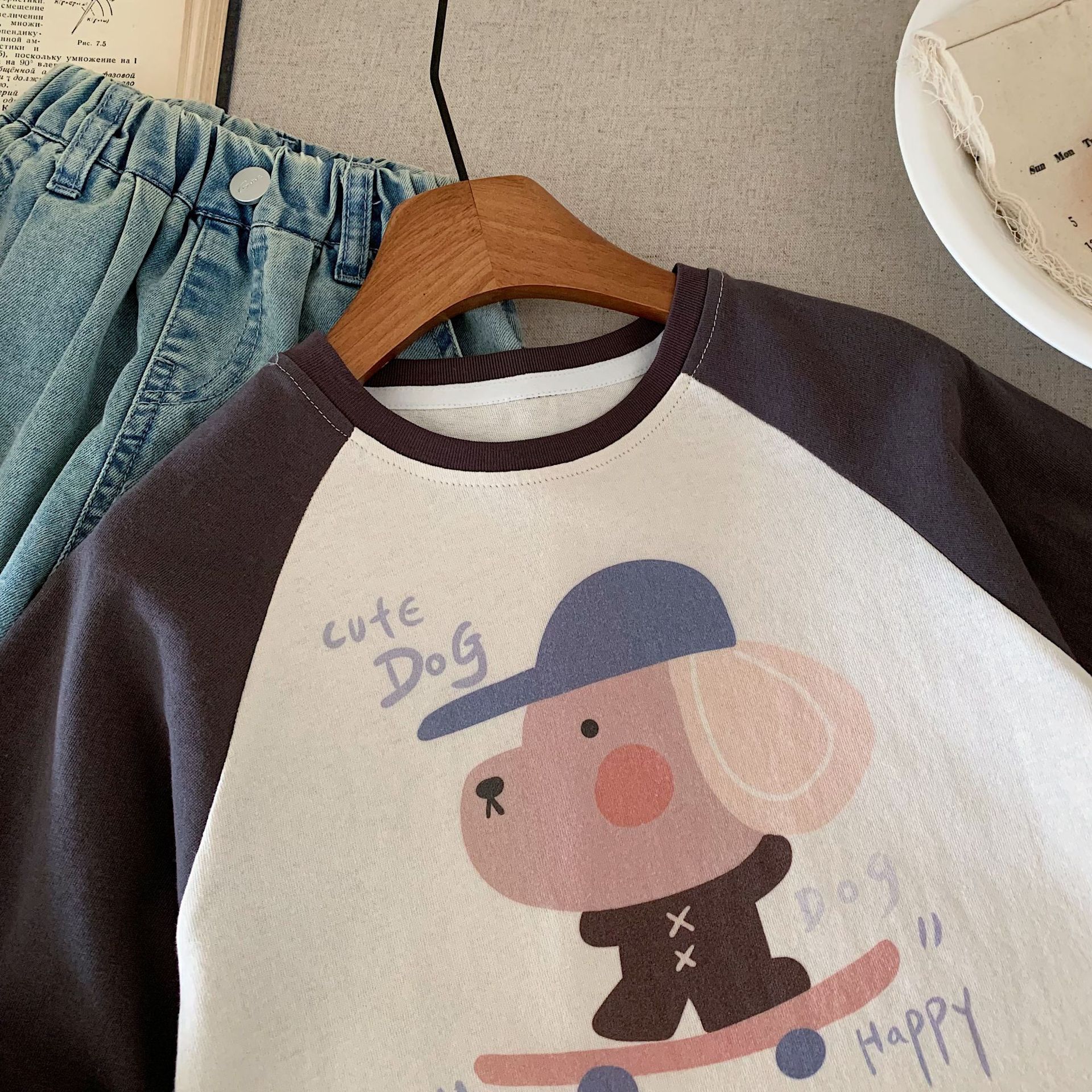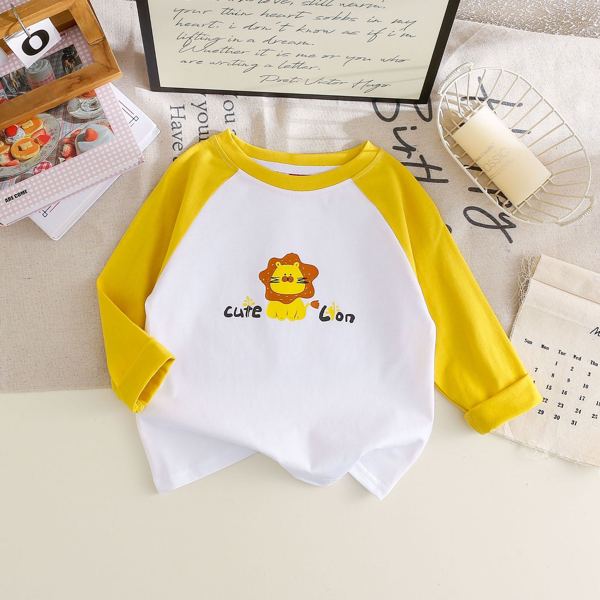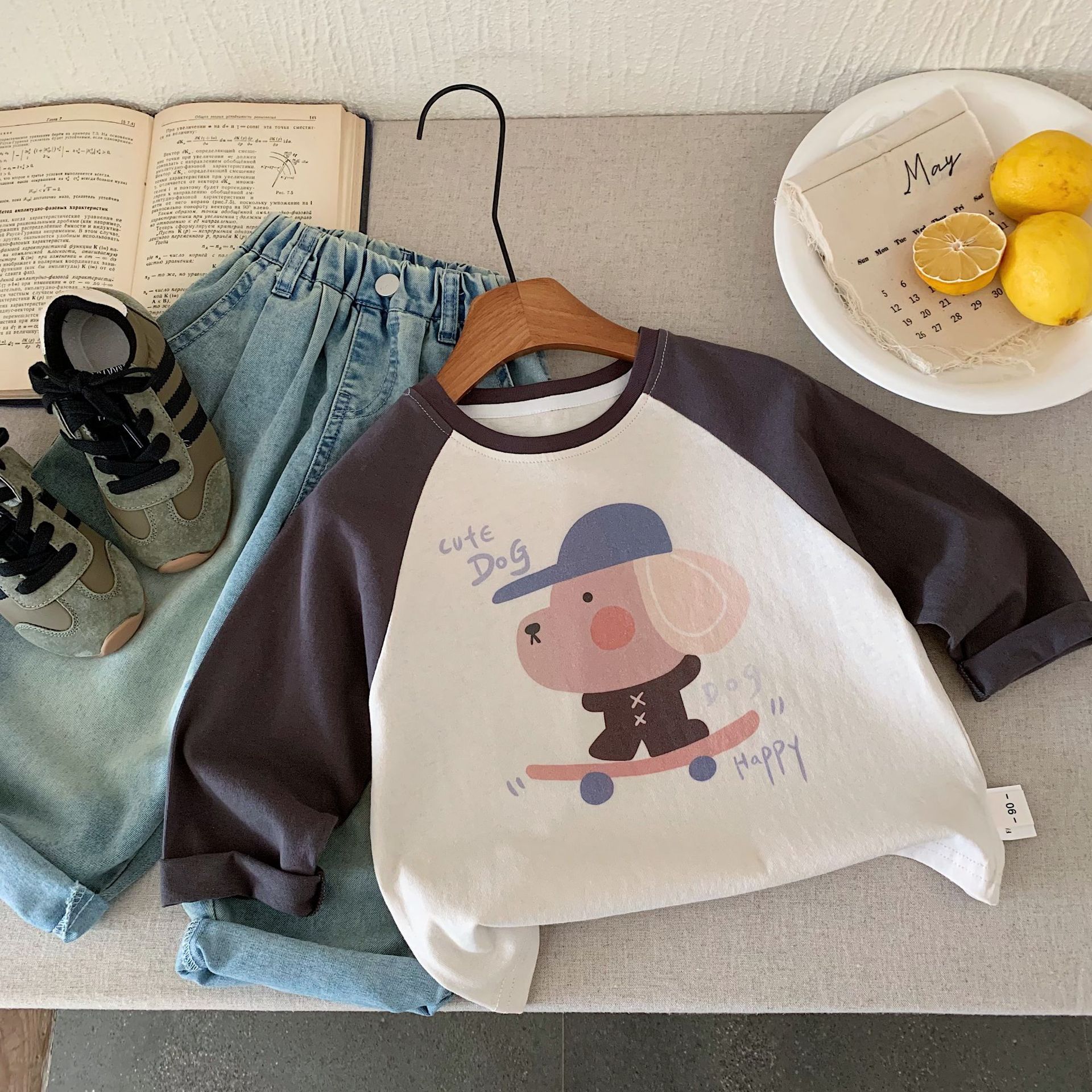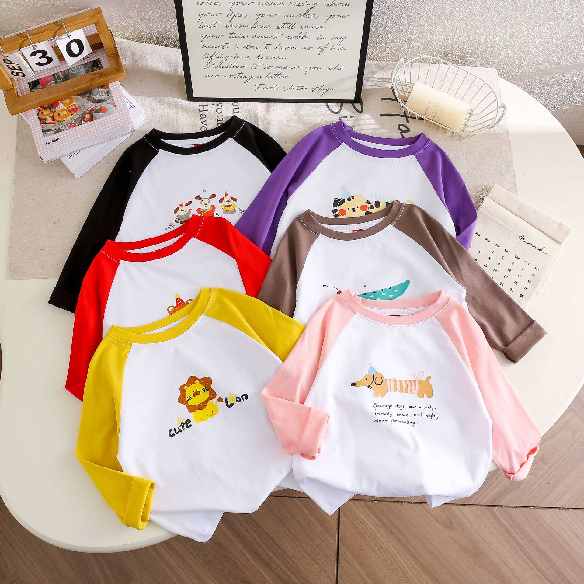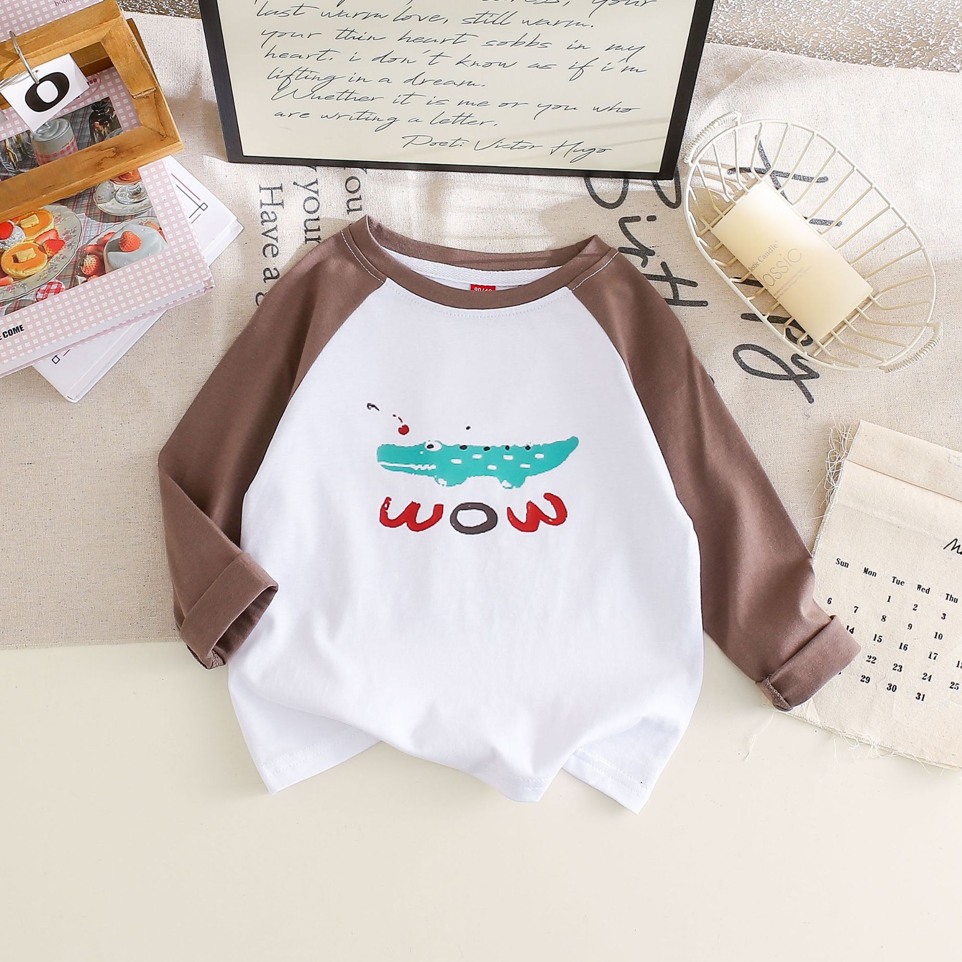 2025秋冬韩版儿童纯棉卡通撞色长袖T恤男女宝宝拼色插肩袖打底衫