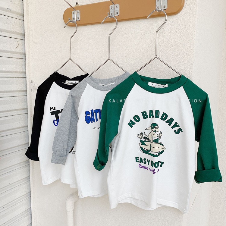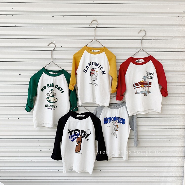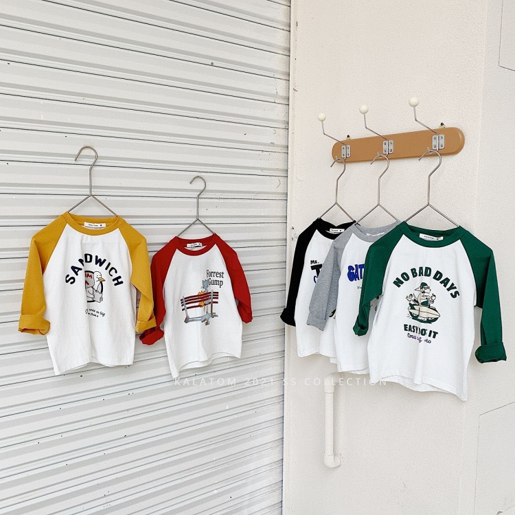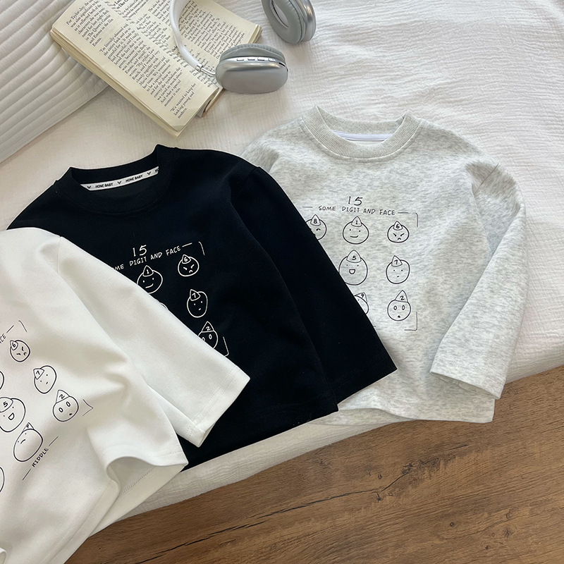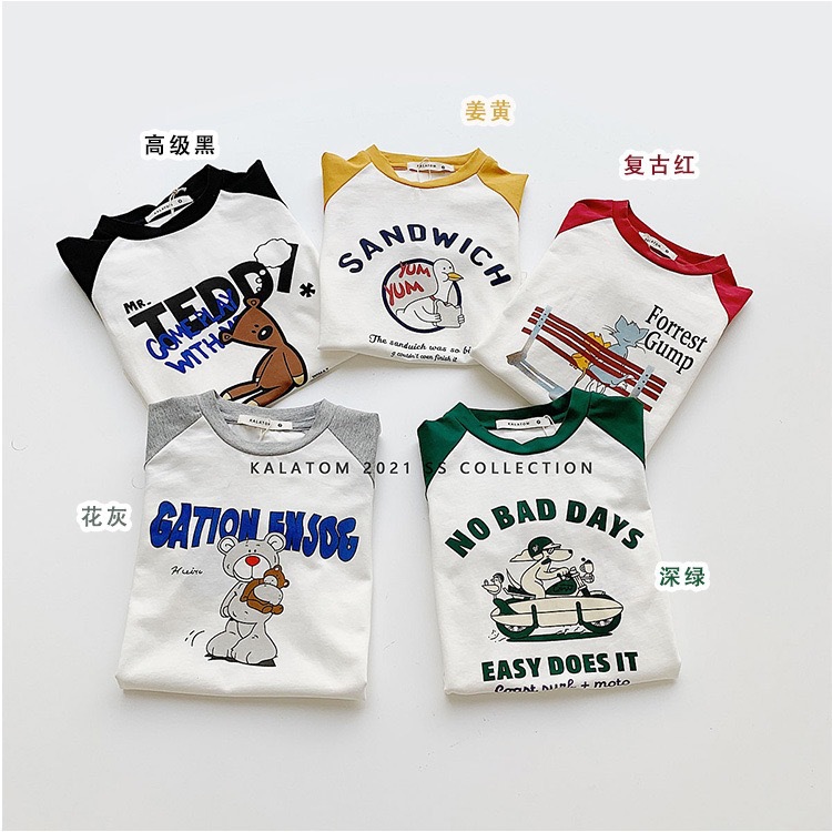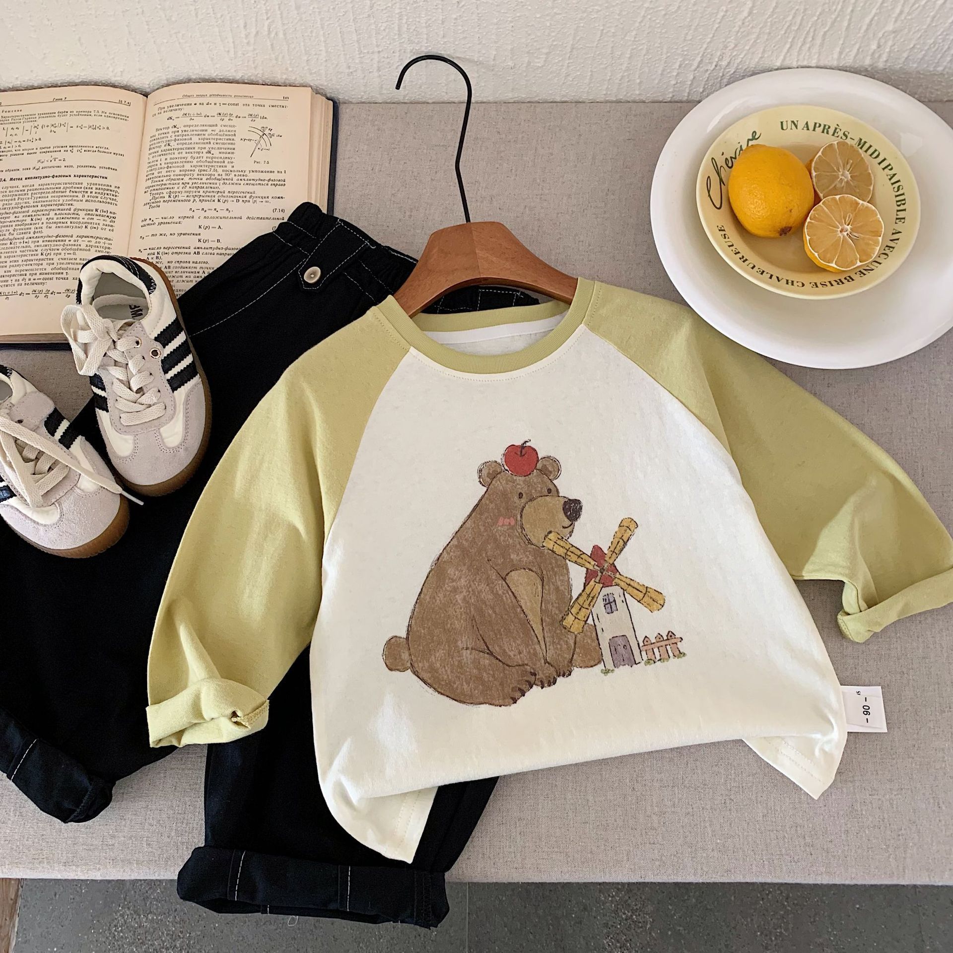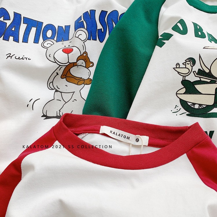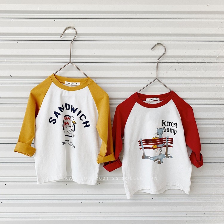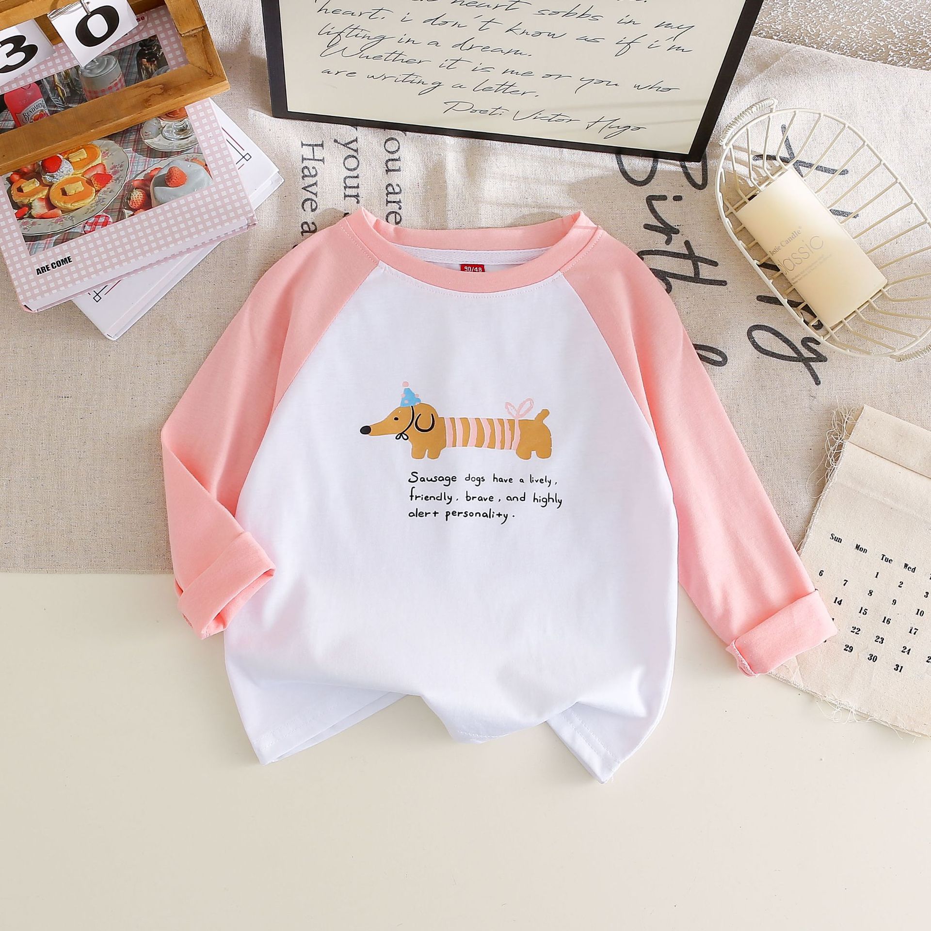 2025秋冬韩版儿童纯棉卡通撞色长袖T恤男女宝宝拼色插肩袖打底衫