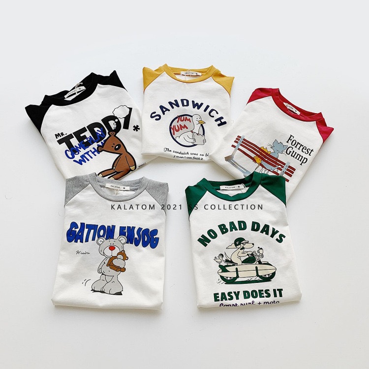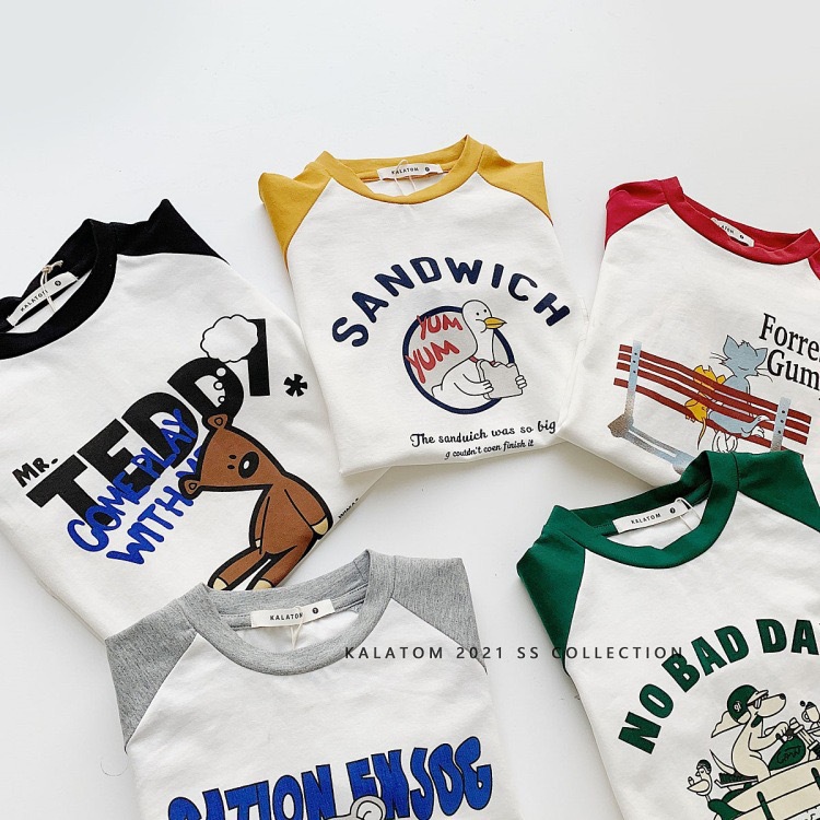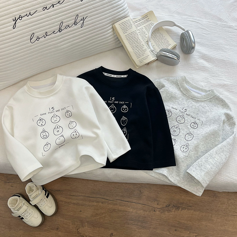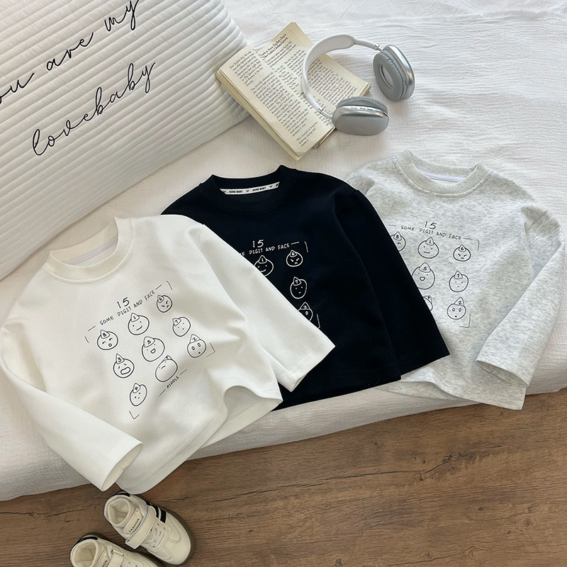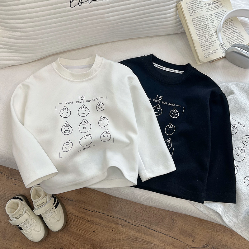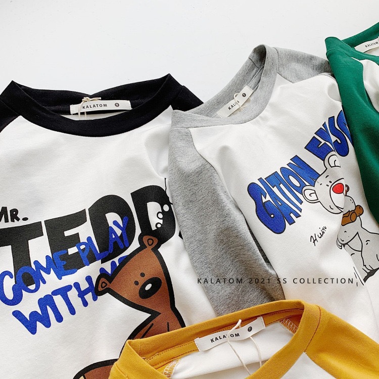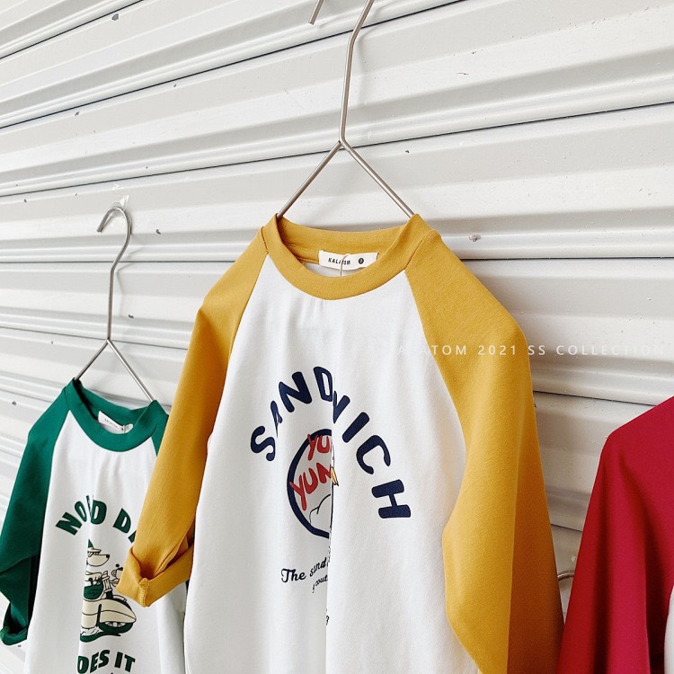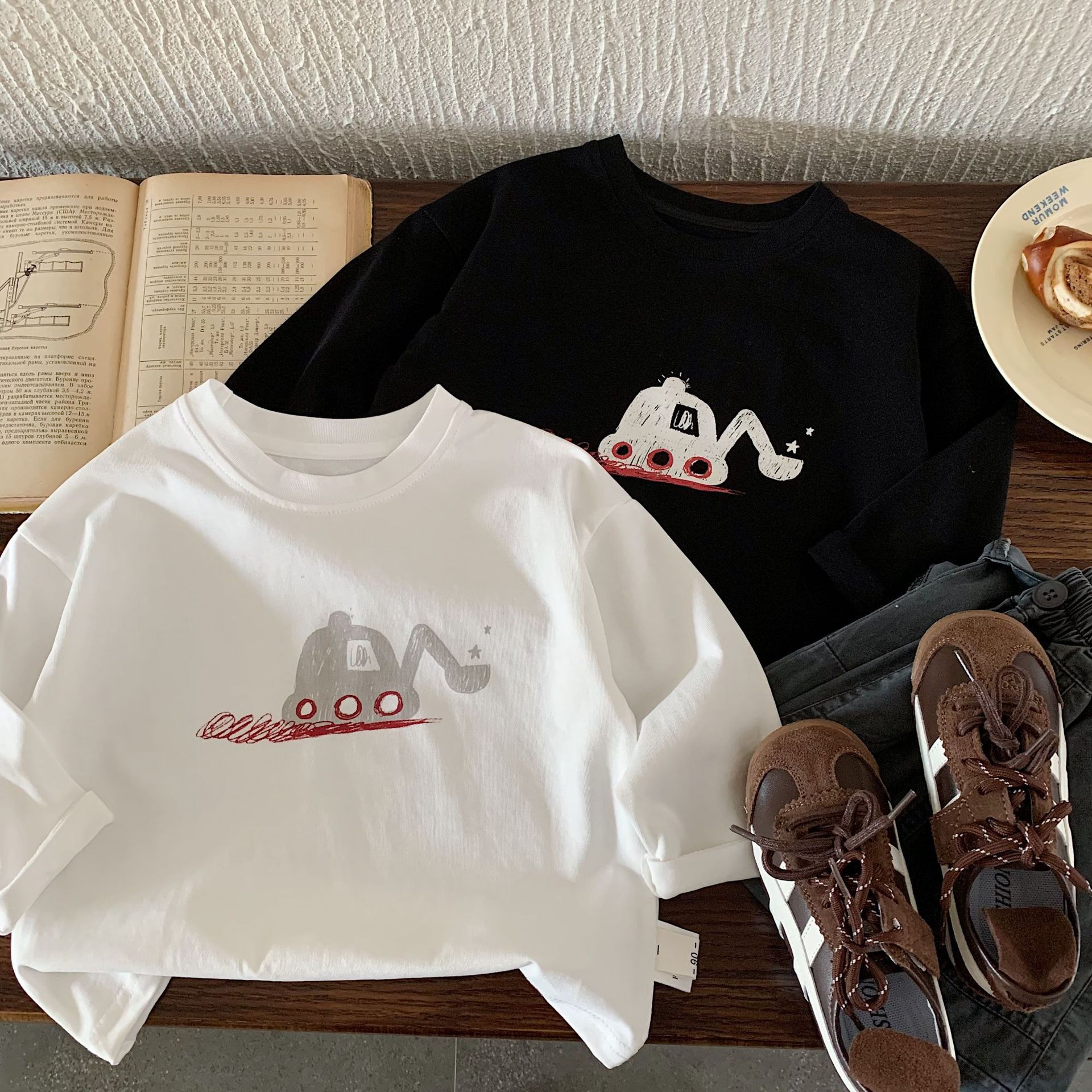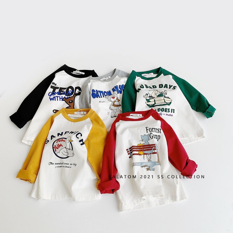 2025秋冬韩版儿童纯棉卡通撞色长袖T恤男女宝宝拼色插肩袖打底衫