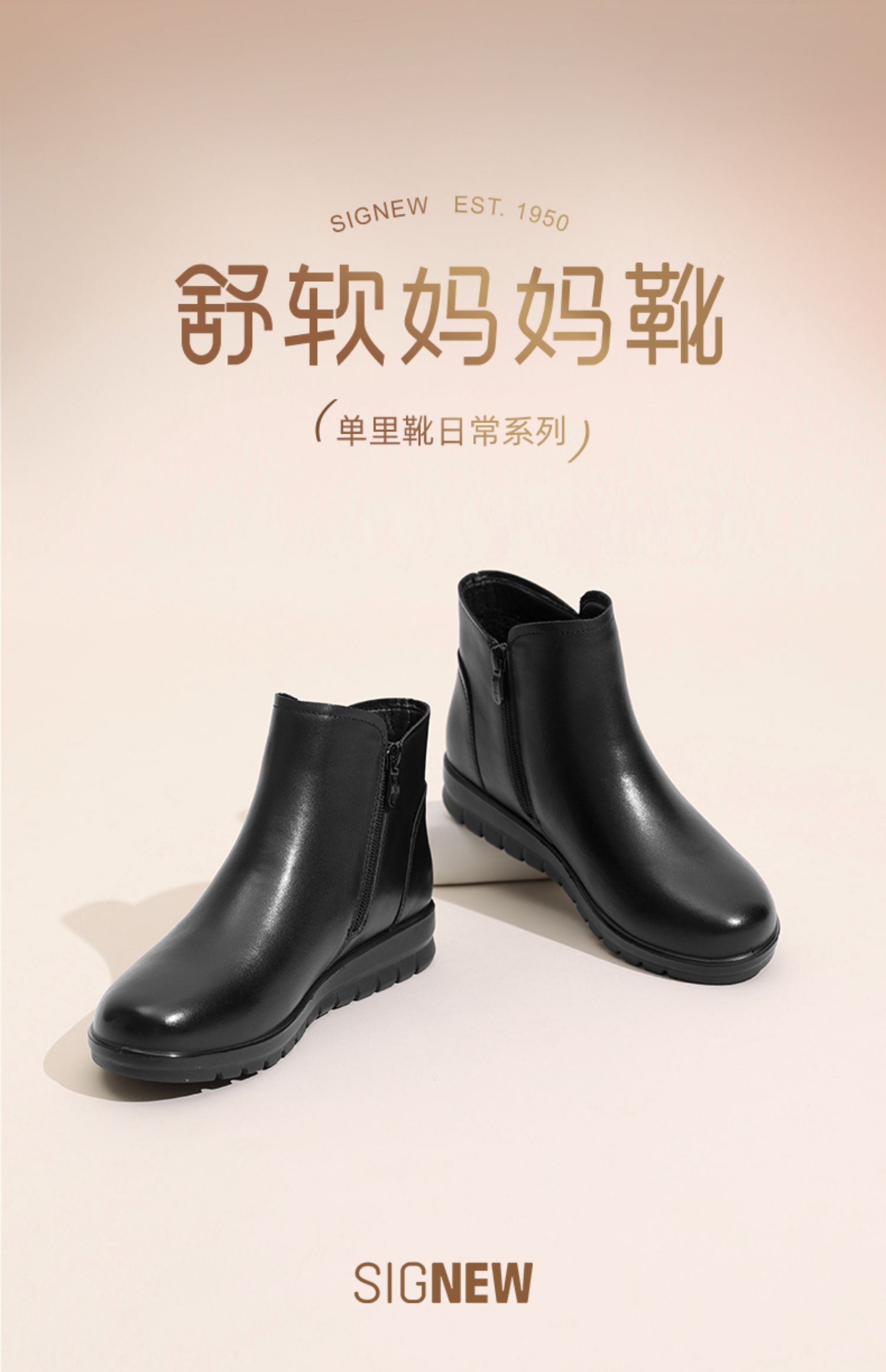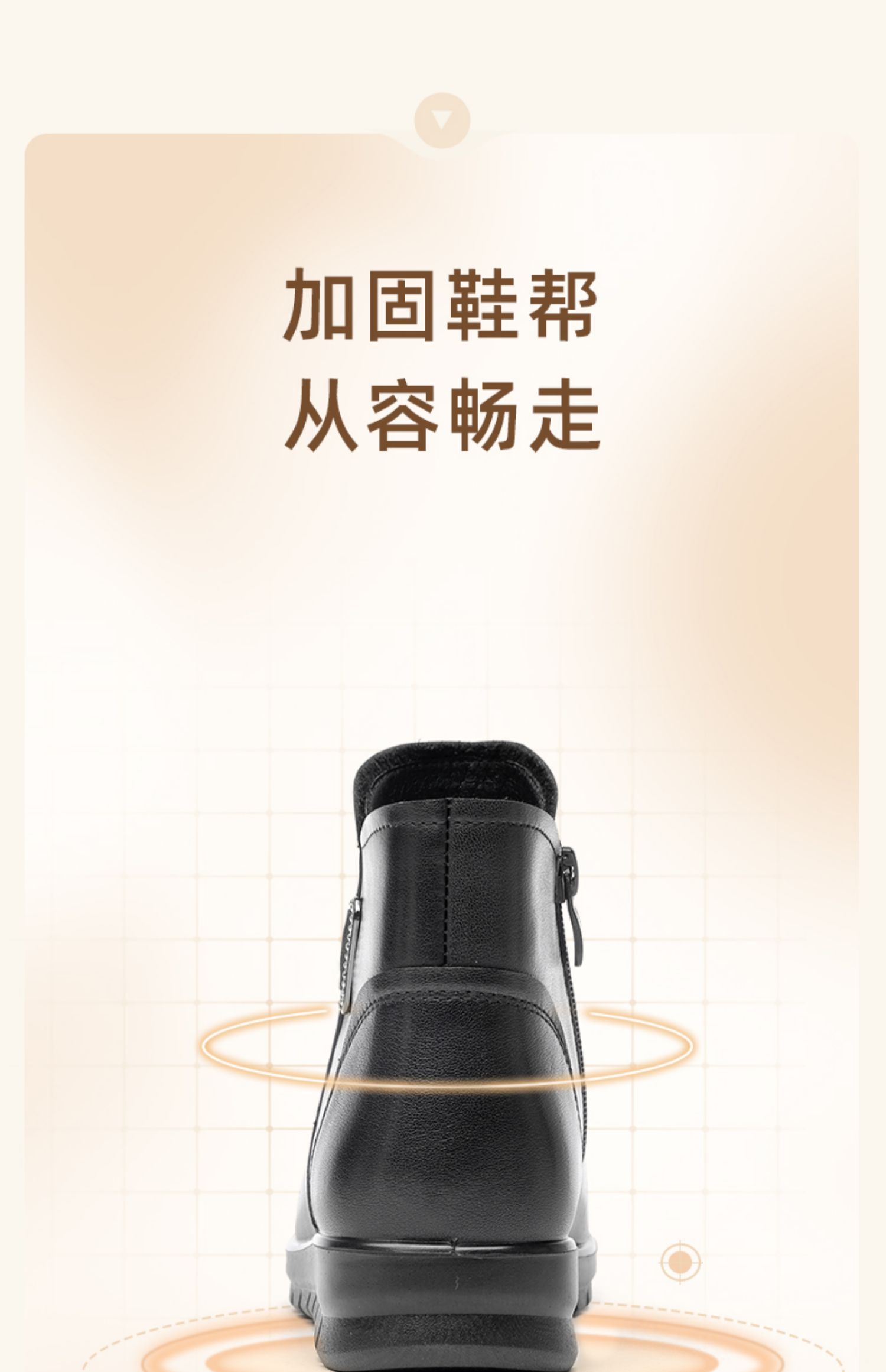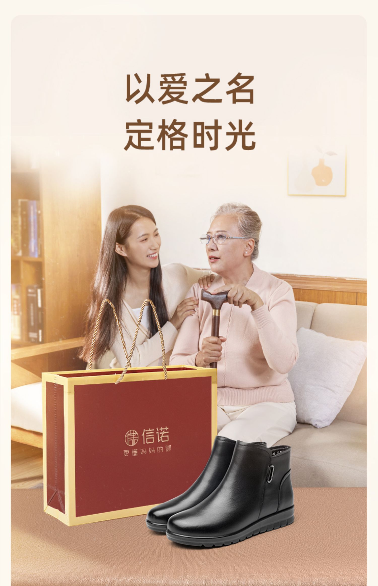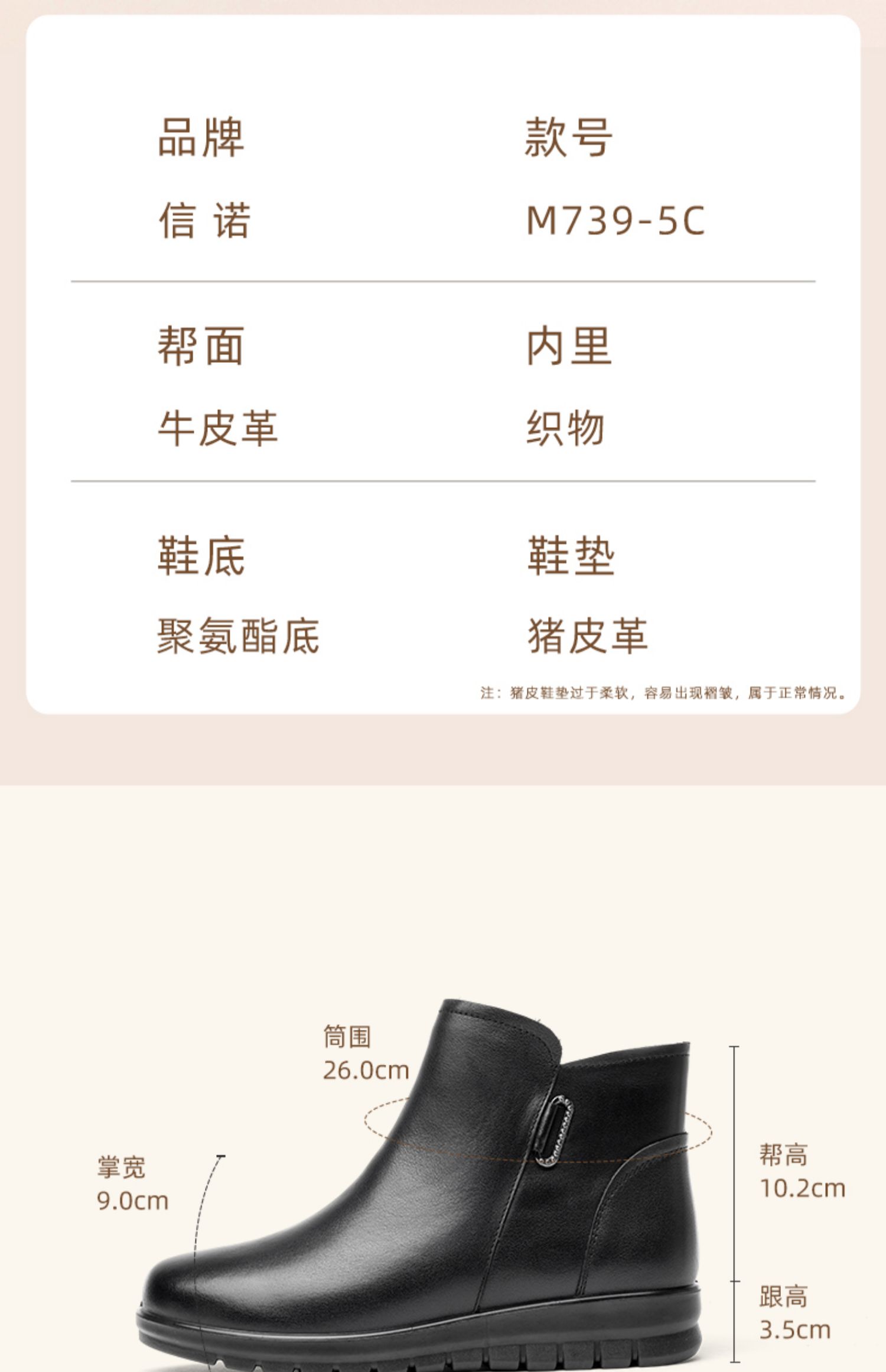 信诺女鞋 冬季新款真皮不加绒短靴高帮棉鞋女士妈妈鞋中老年短靴M739-5C