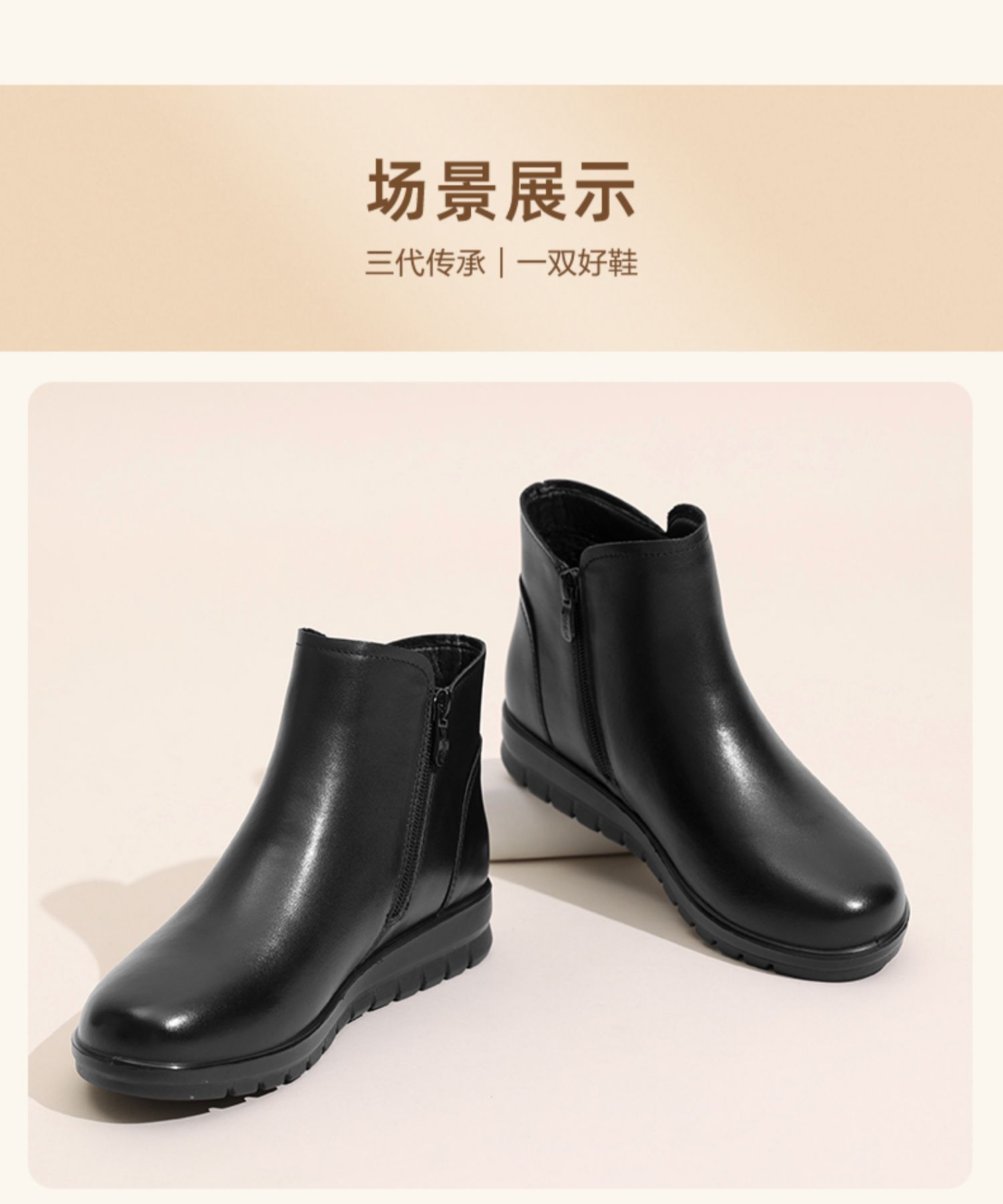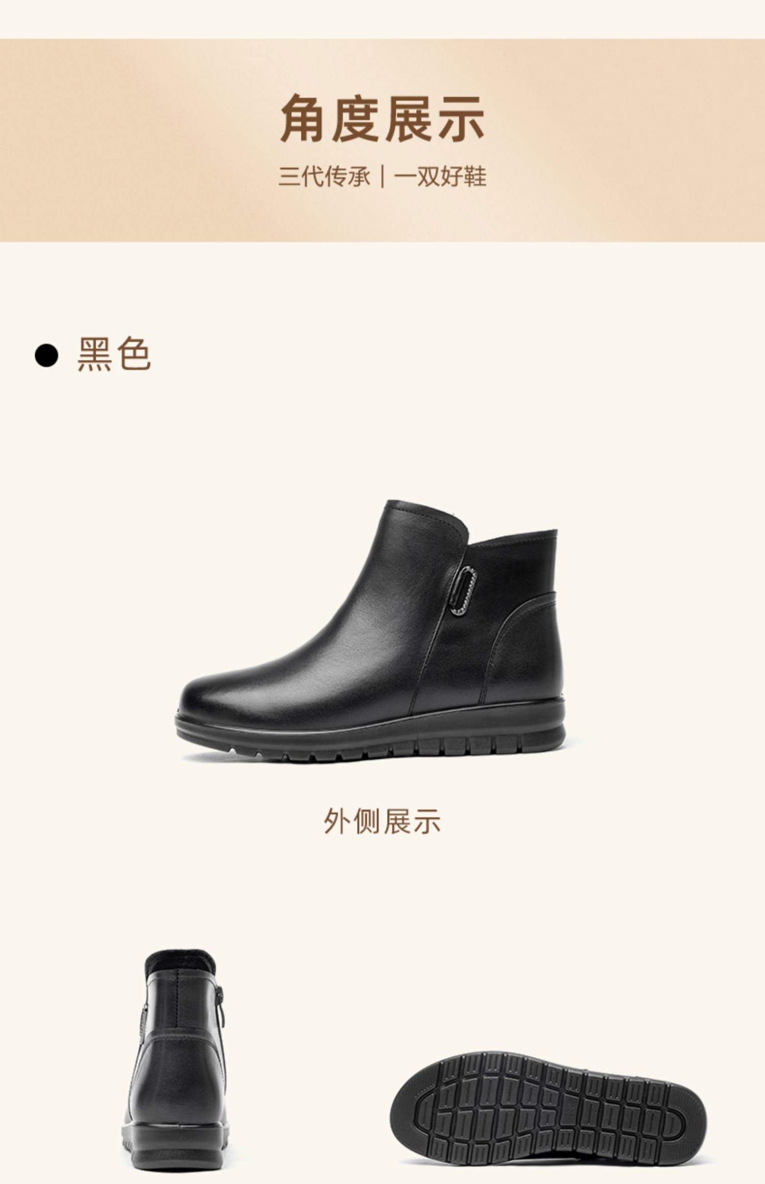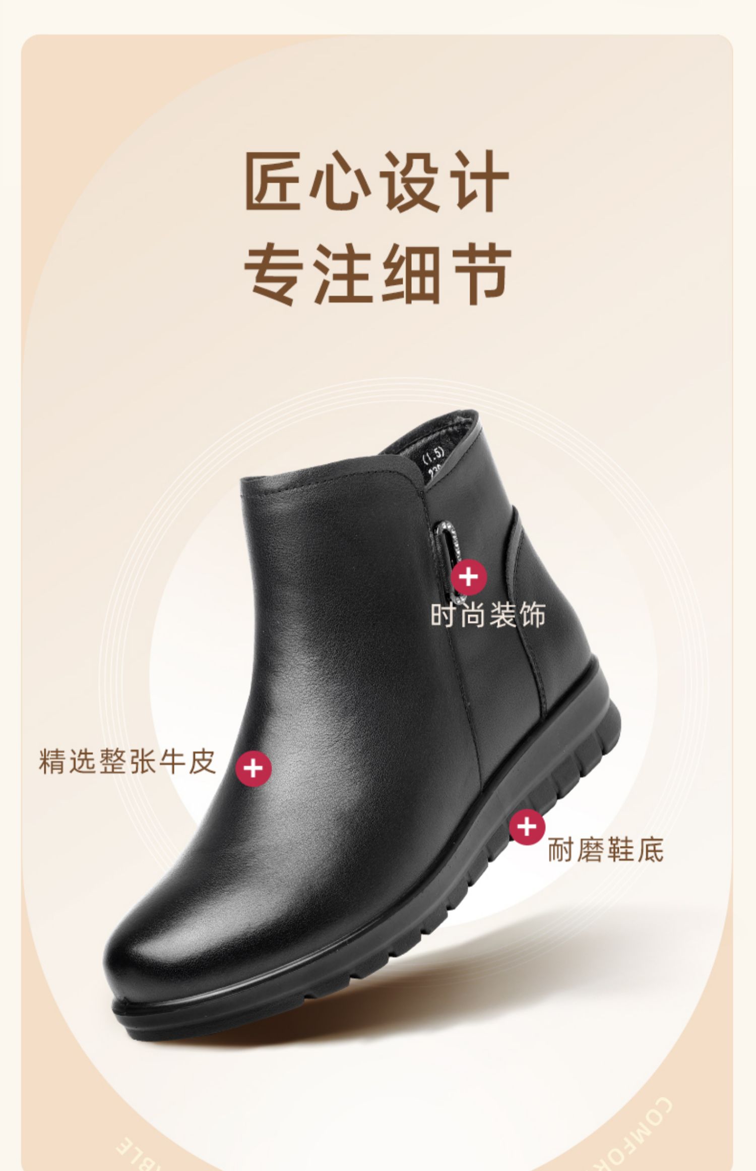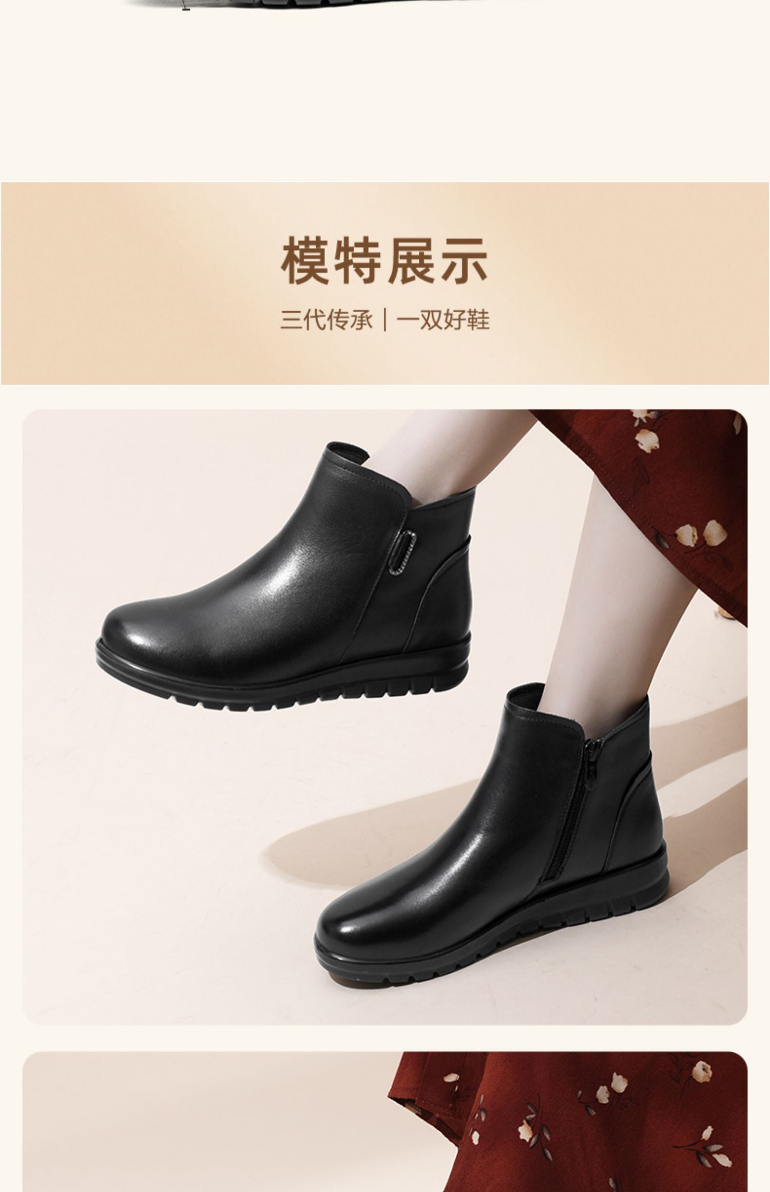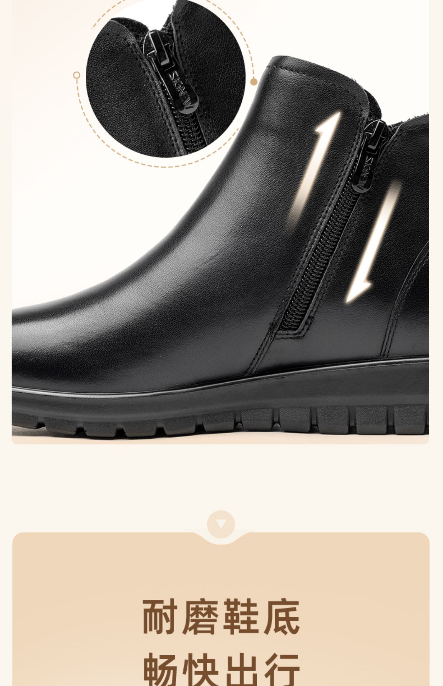 信诺女鞋 冬季新款真皮不加绒短靴高帮棉鞋女士妈妈鞋中老年短靴M739-5C