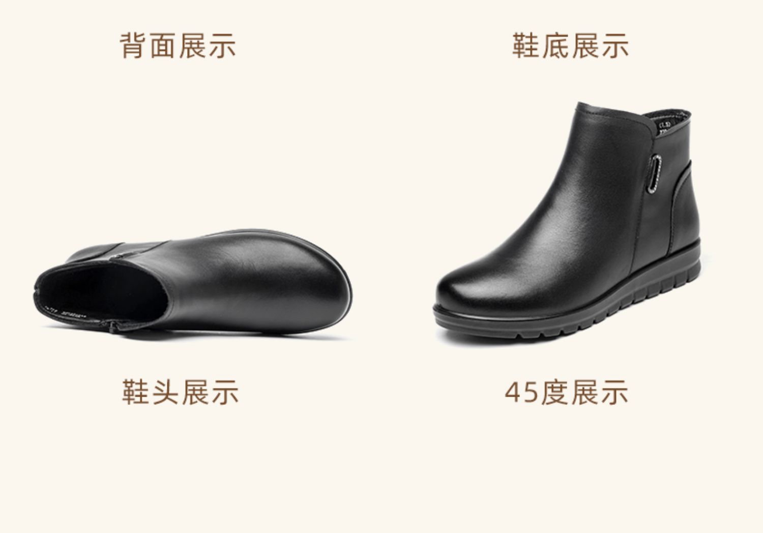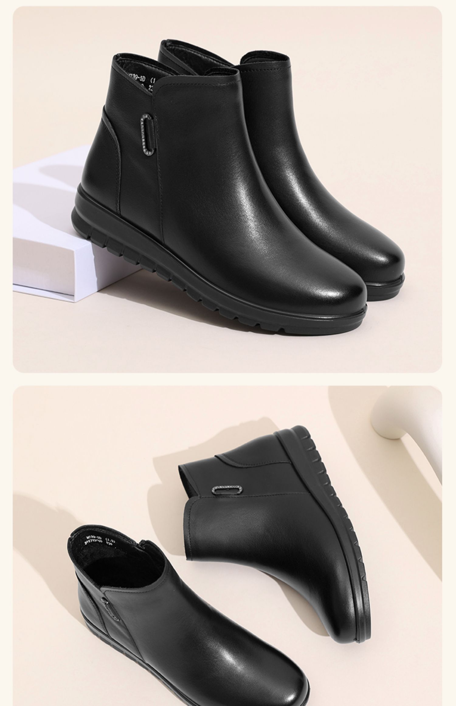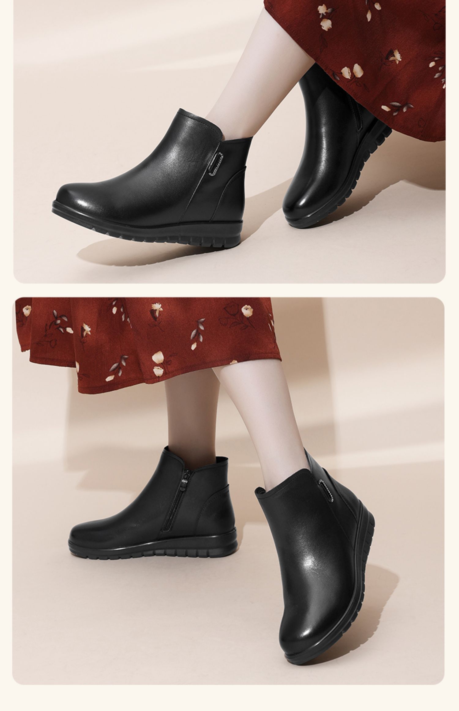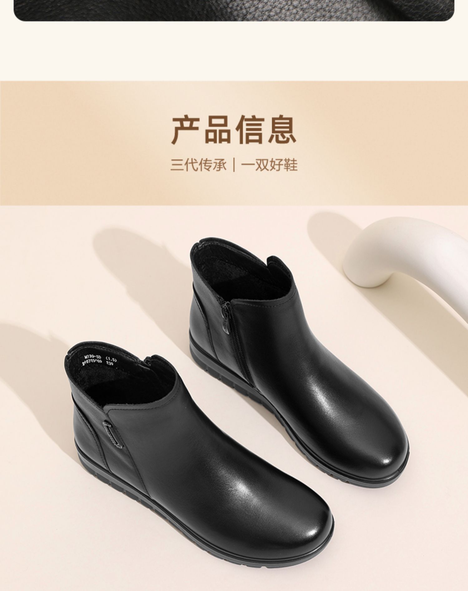 信诺女鞋 冬季新款真皮不加绒短靴高帮棉鞋女士妈妈鞋中老年短靴M739-5C