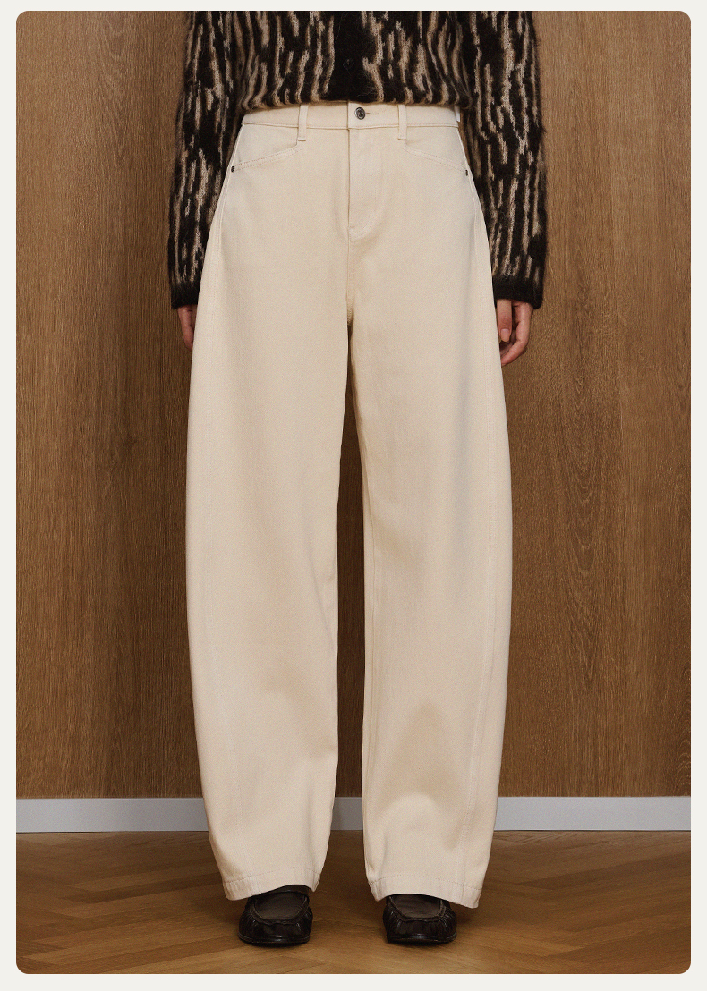 【四面弹月亮裤】simplepieces秋新款SPS牛仔白色宽松拖地弯刀裤