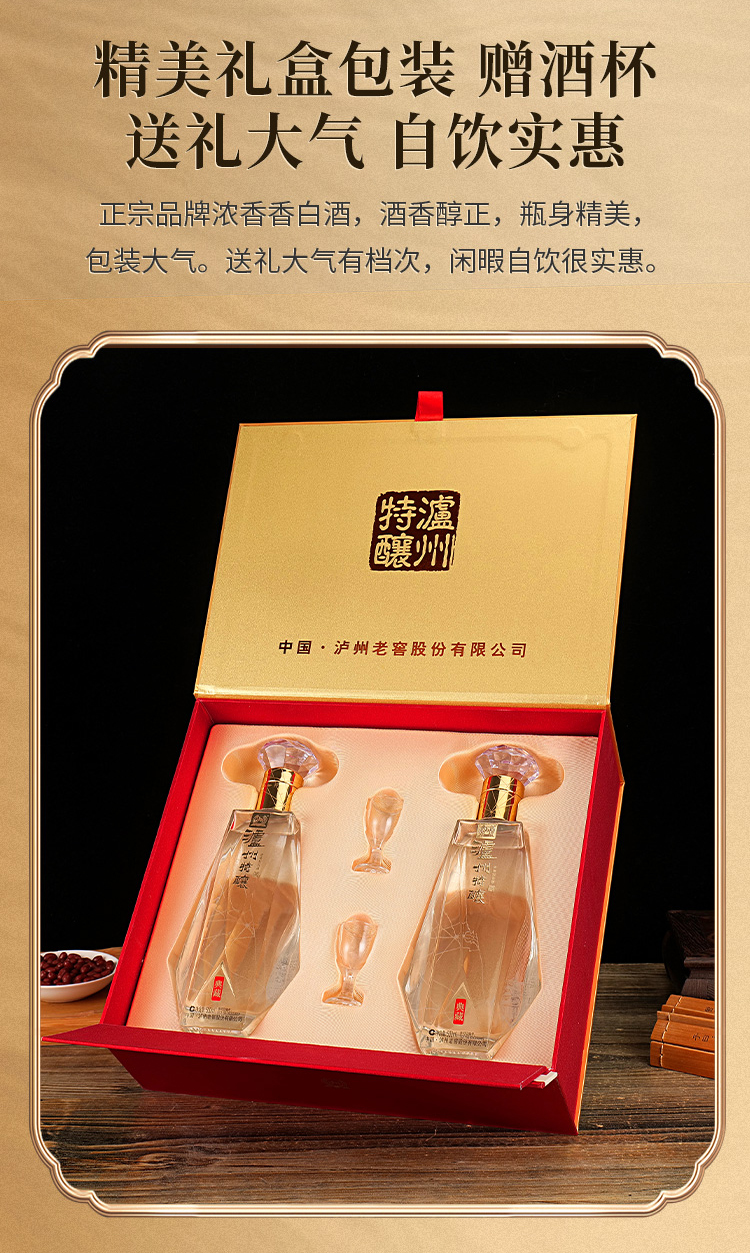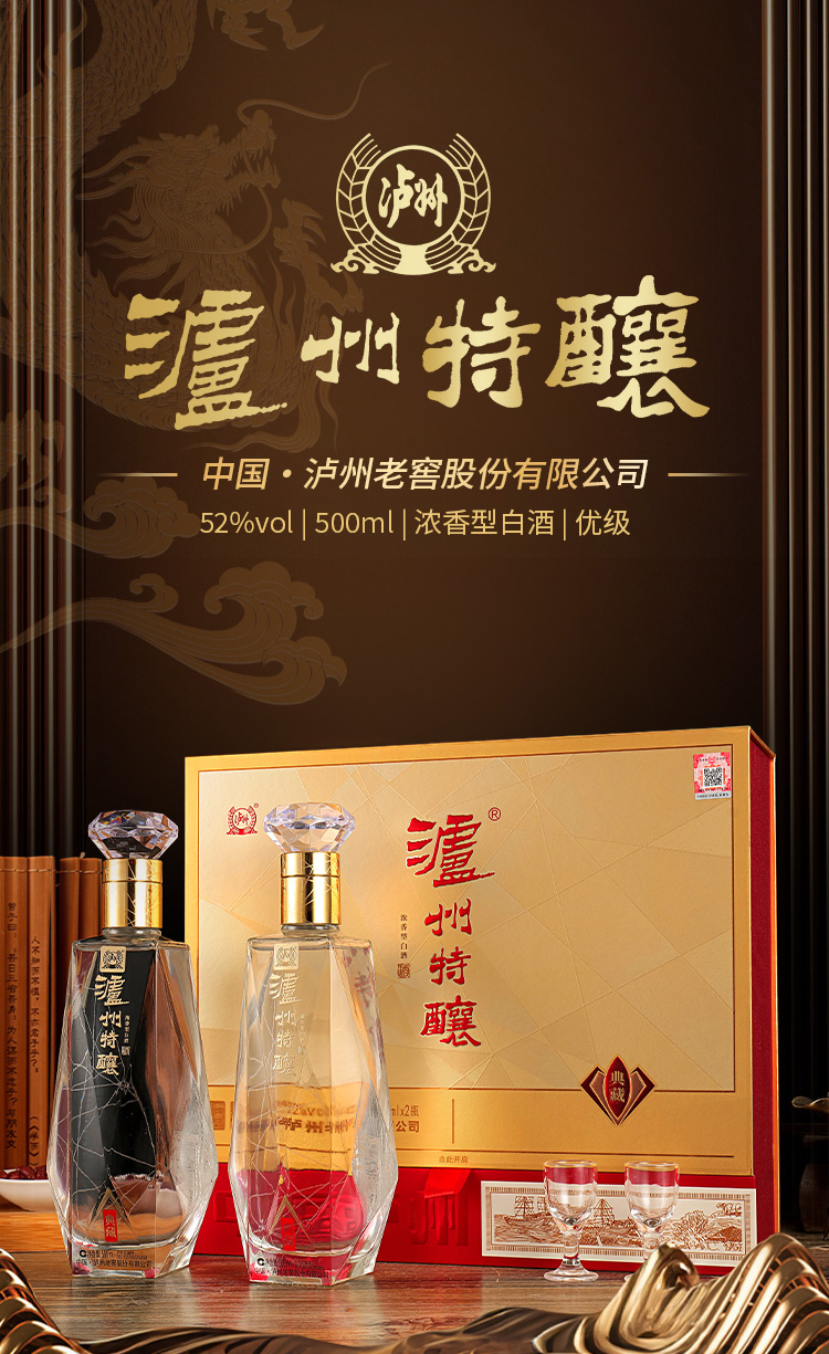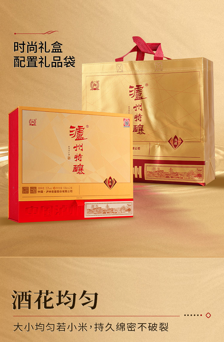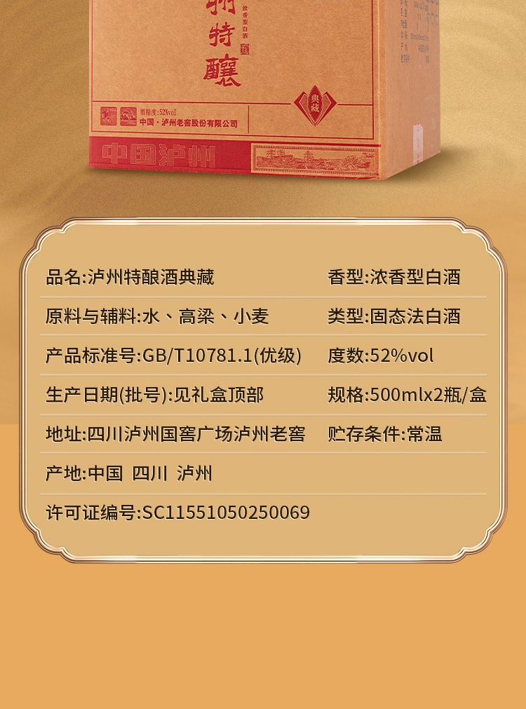 【泸州特酿典藏礼盒】采用砖石重工面切割 单粮型 入口更加柔顺 尾调回甘明显AA