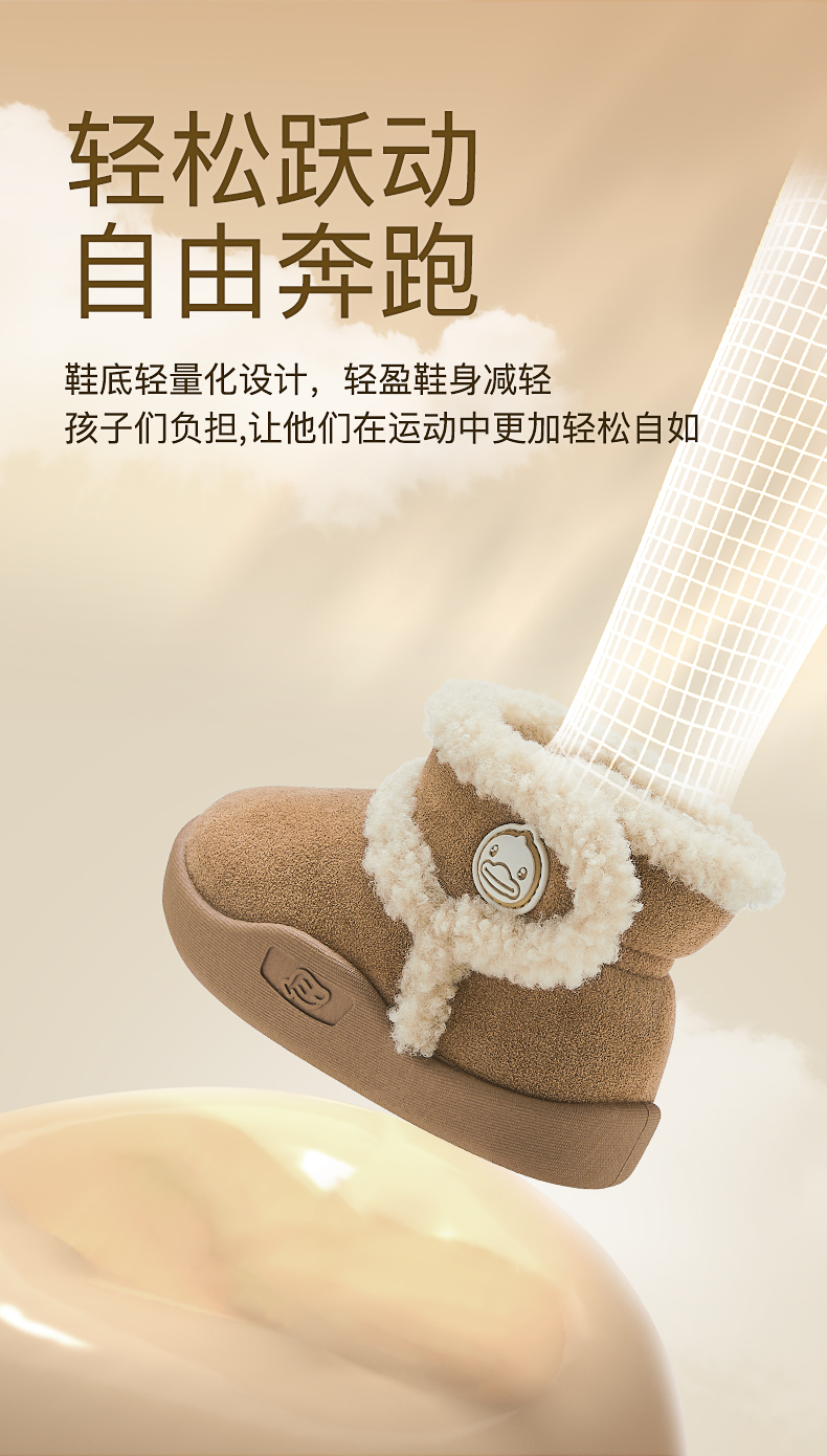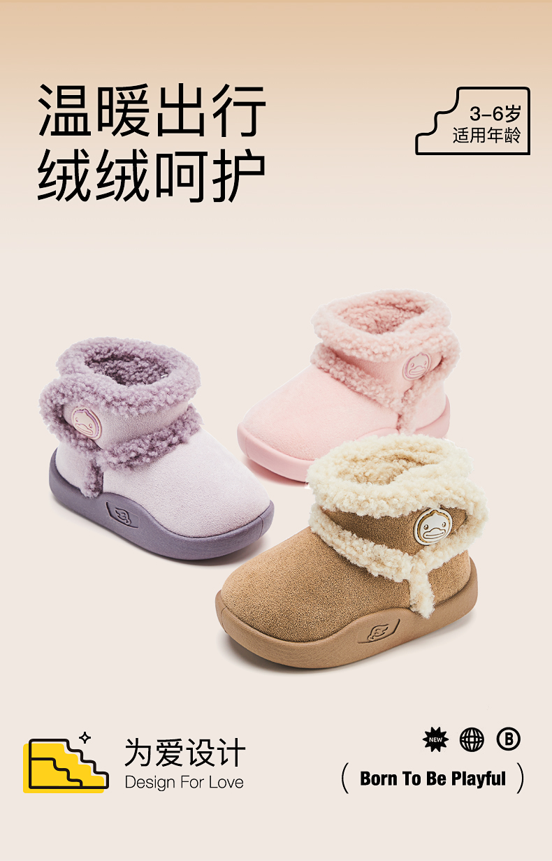 B.DUCK小黄鸭童鞋冬季男女童时尚雪地靴22-30 B5486804A
