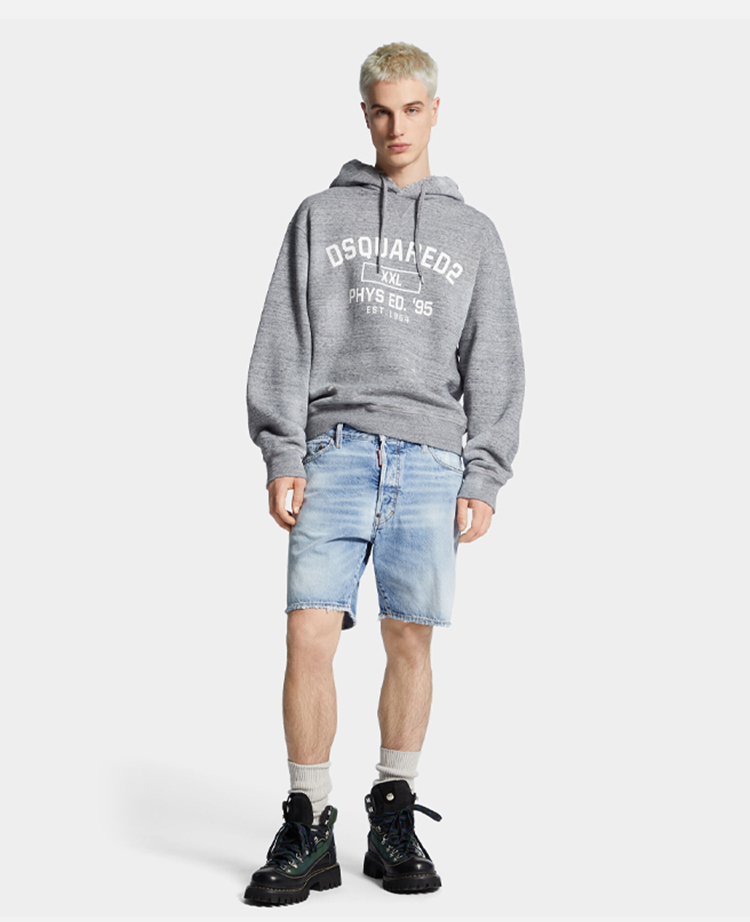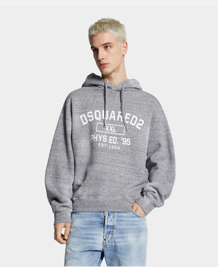 DSQUARED2 男士字母徽标印花棉质连帽卫衣 深灰色 S74GU0894 S25477 860M