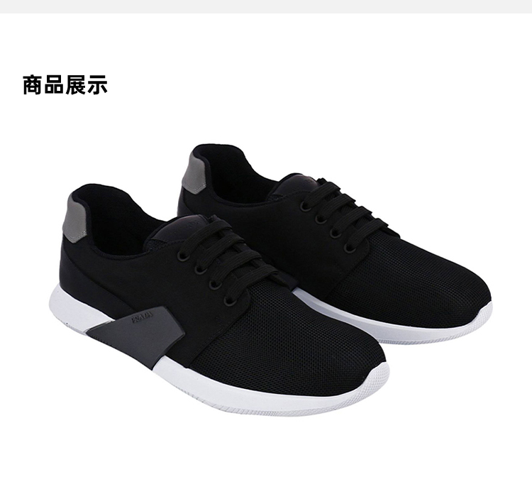 PRADA 普拉达 男士织物拼皮系带休闲运动鞋 黑色 4E3167 3H8I F0MSK