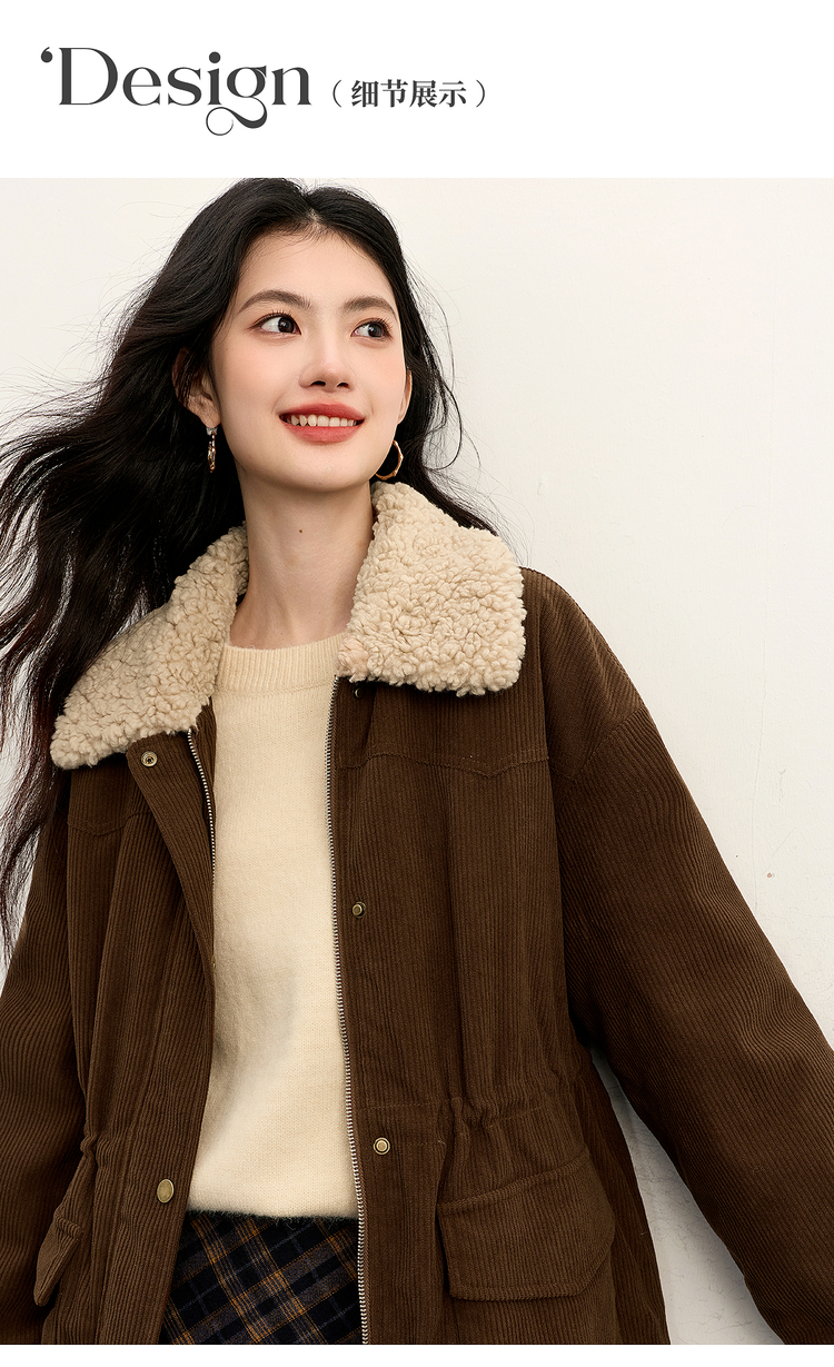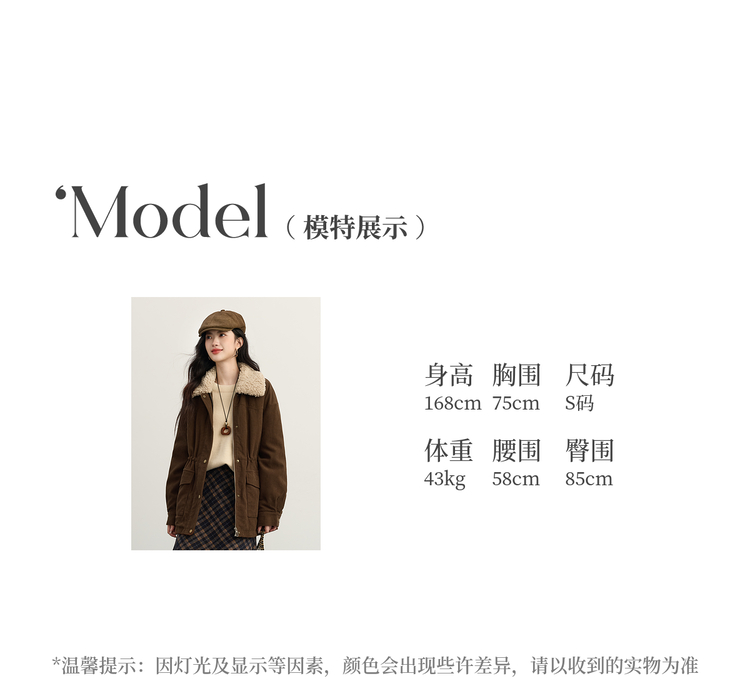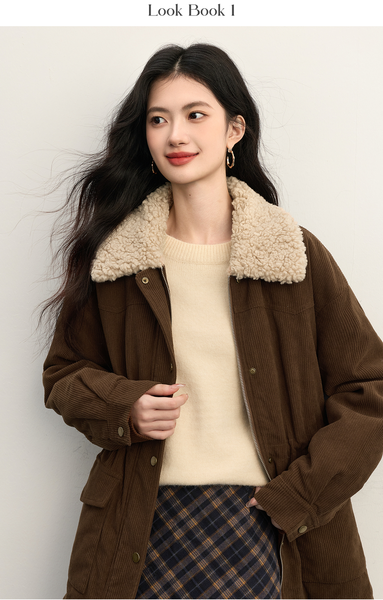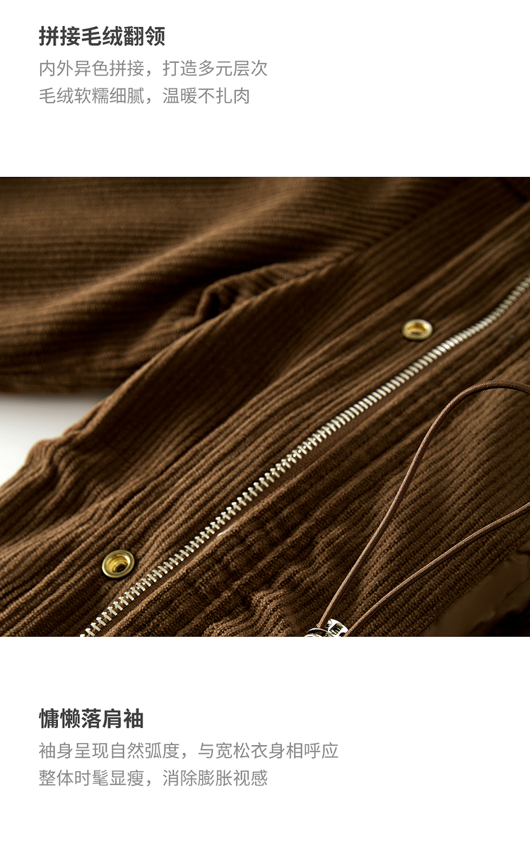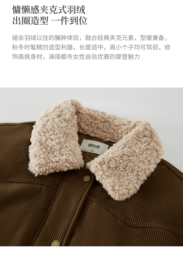 【11/14新品】熙世界美拉德毛绒翻领羽绒服女短款保暖白鸭绒外套2025年冬装新款