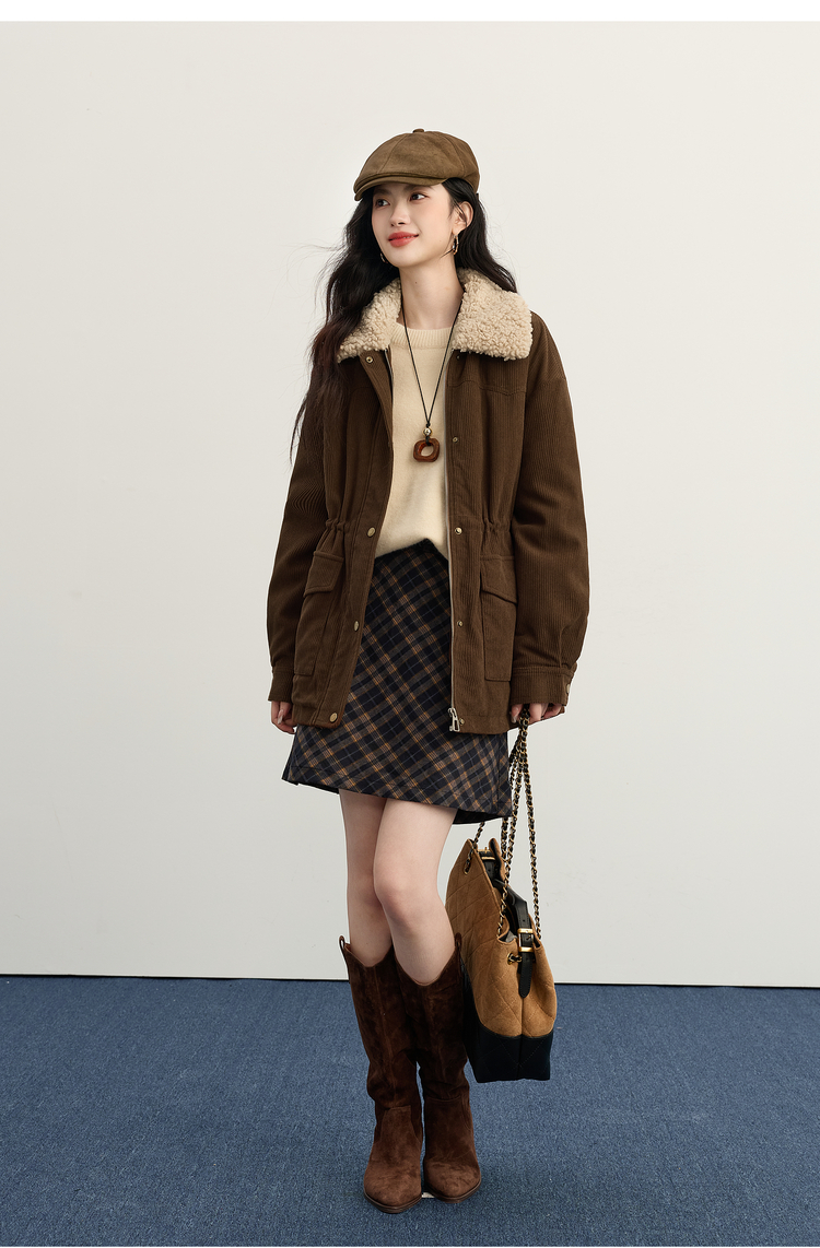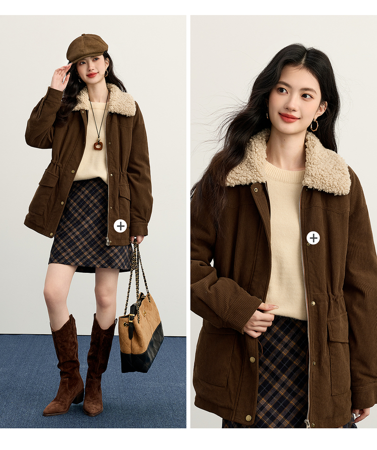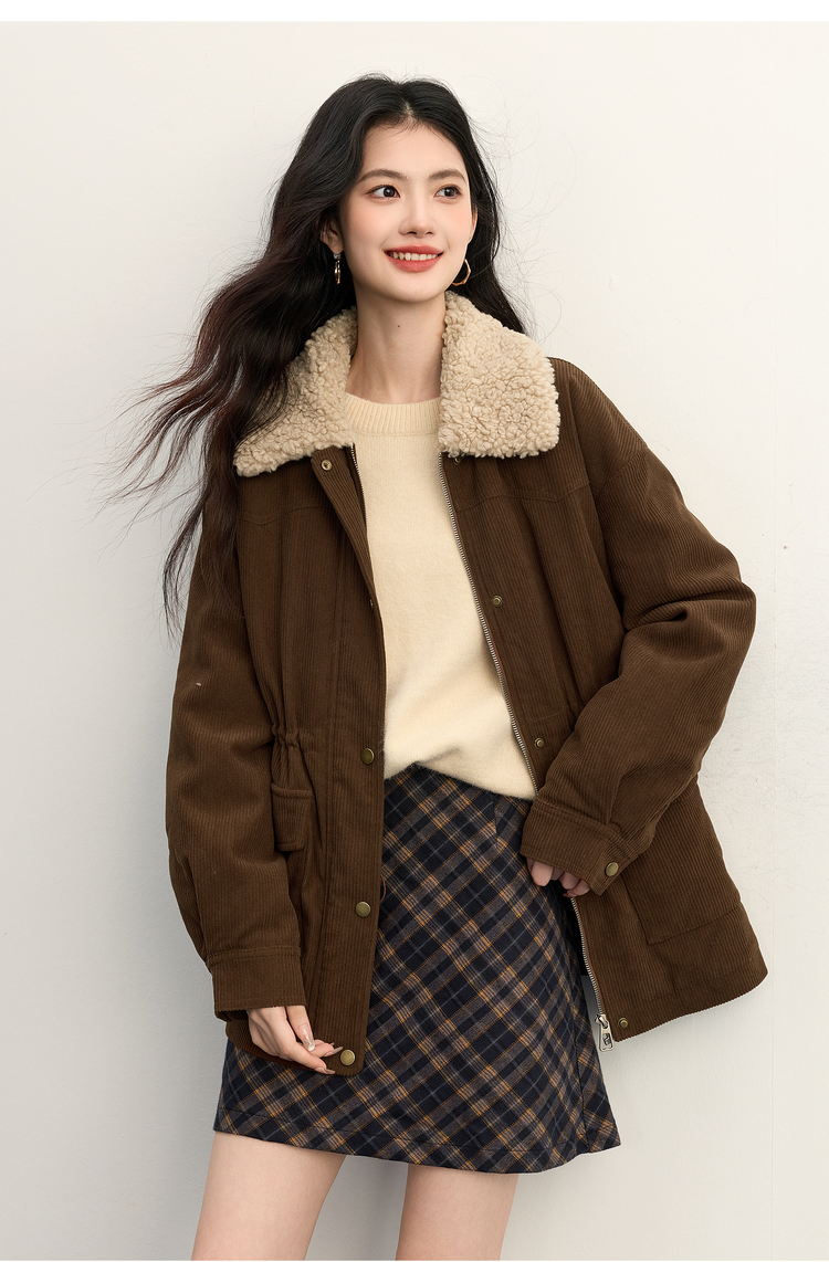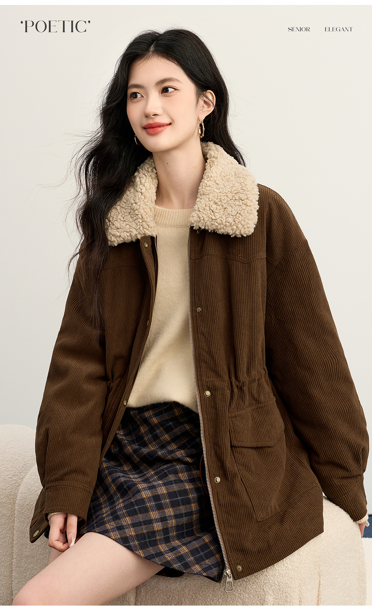 【11/14新品】熙世界美拉德毛绒翻领羽绒服女短款保暖白鸭绒外套2025年冬装新款