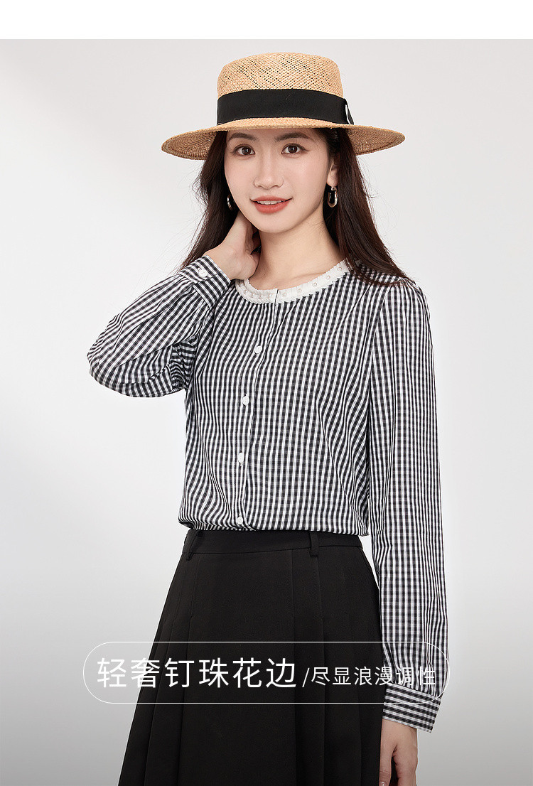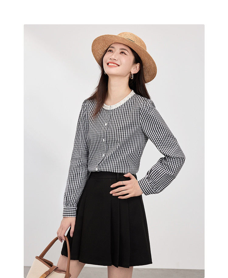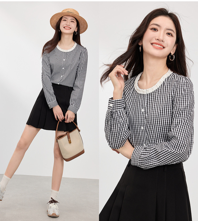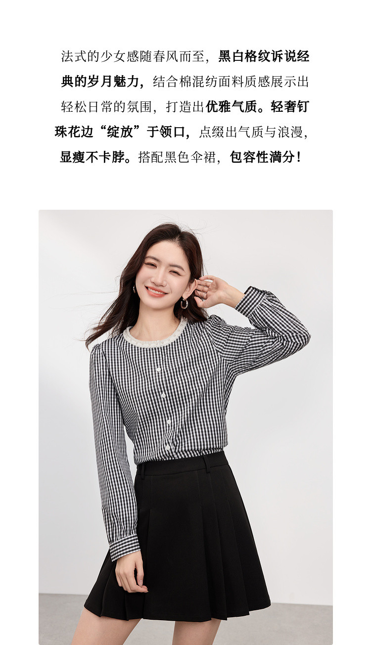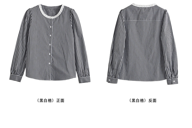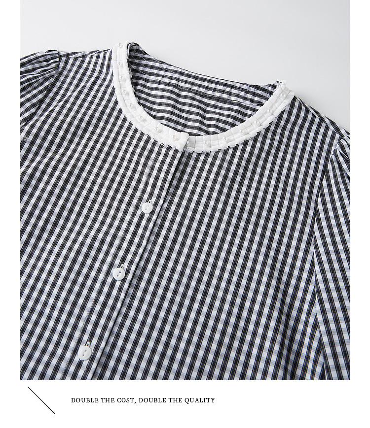 【专属特价】熙世界优雅精致格子衬衣女2025春夏季新时尚休闲泡泡袖通勤衬衫上衣