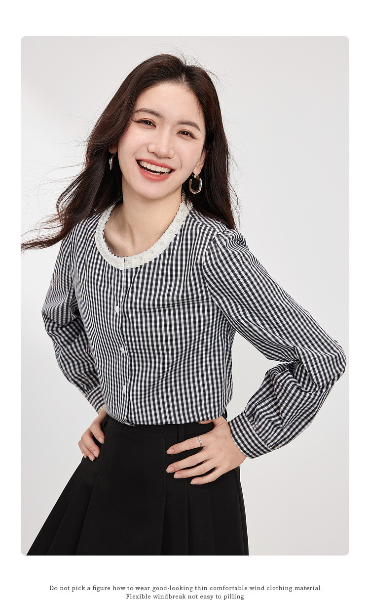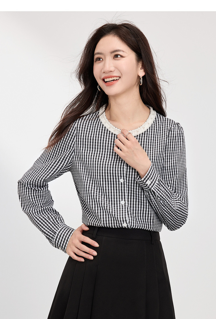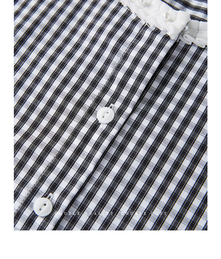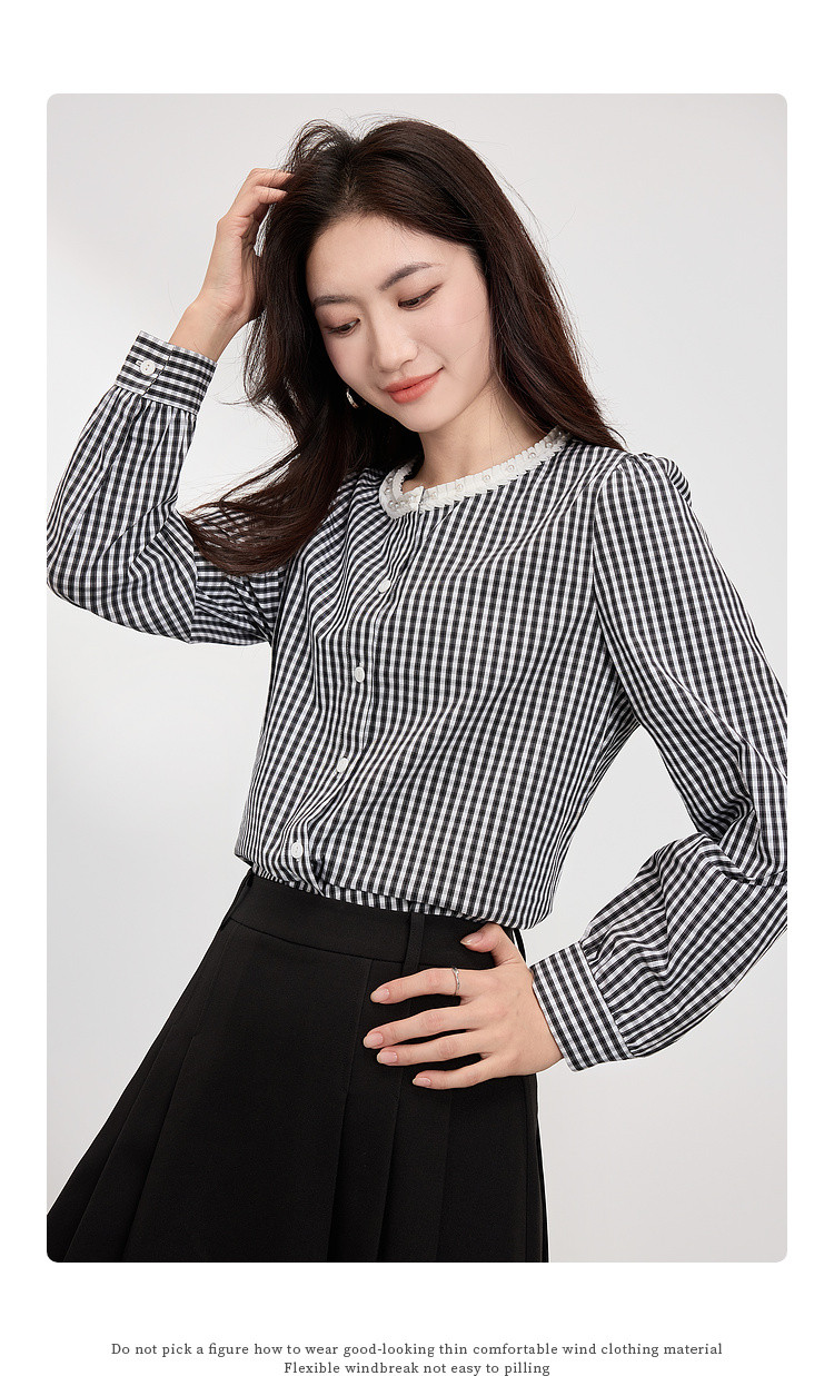 【专属特价】熙世界优雅精致格子衬衣女2025春夏季新时尚休闲泡泡袖通勤衬衫上衣