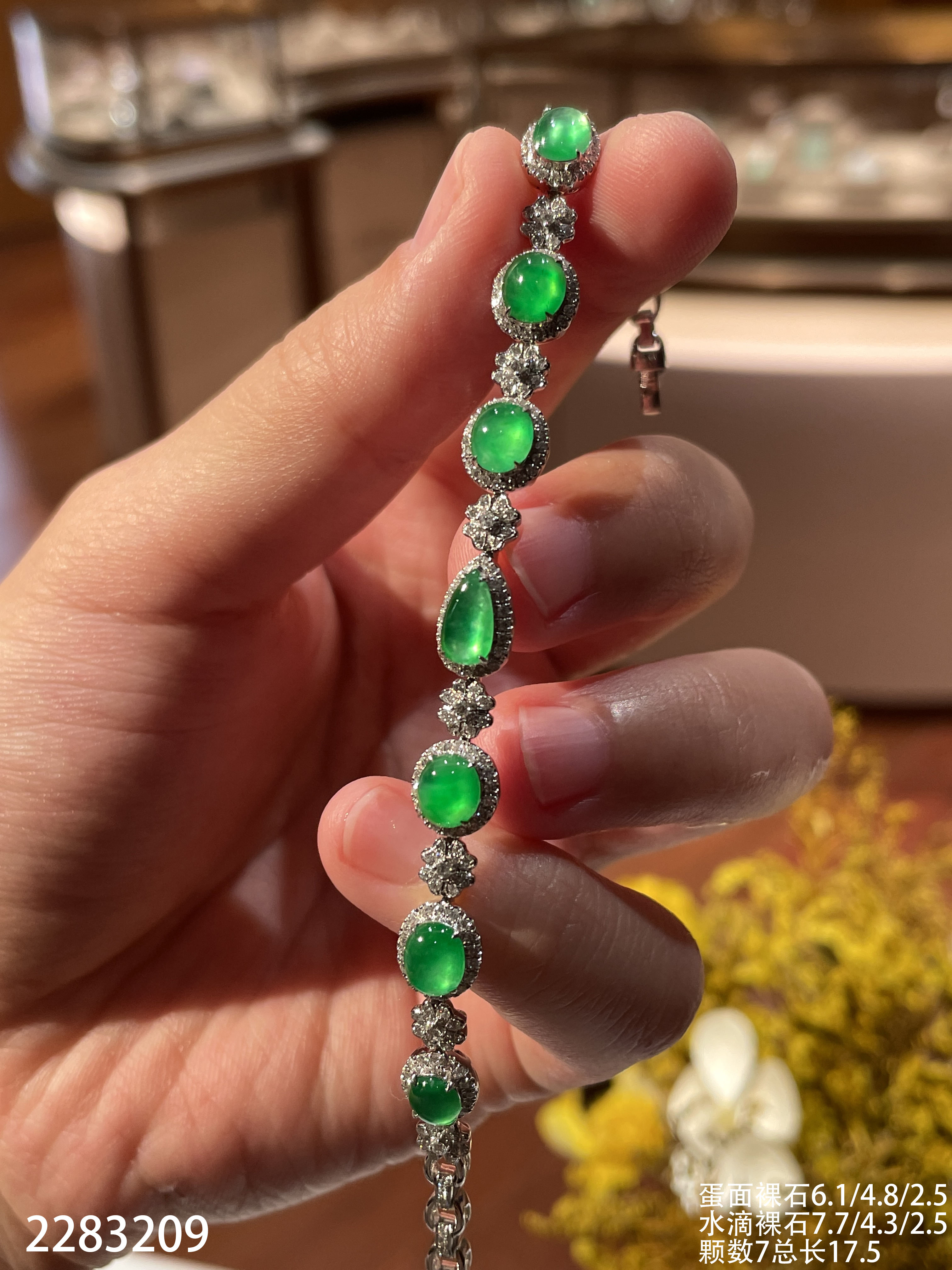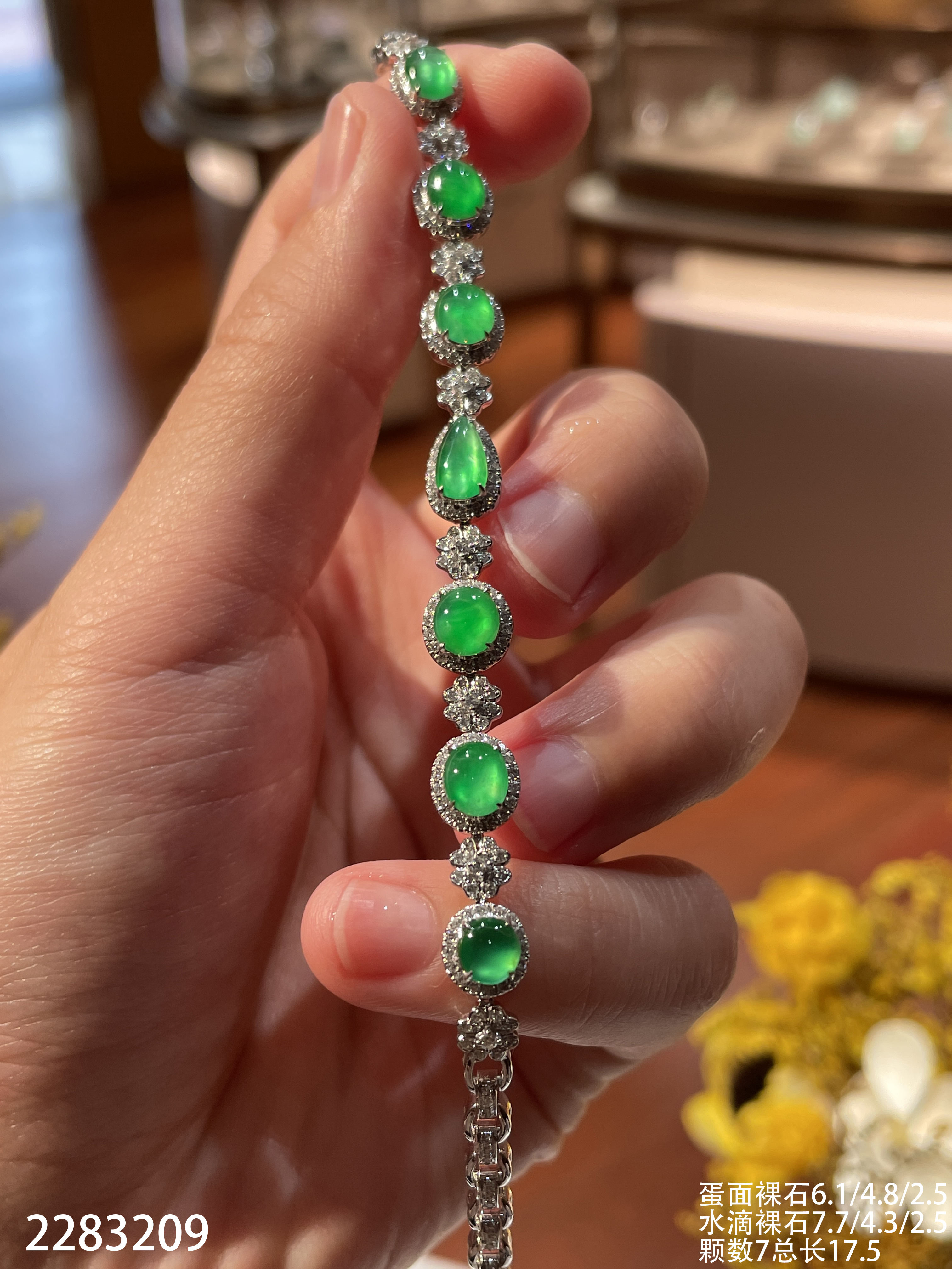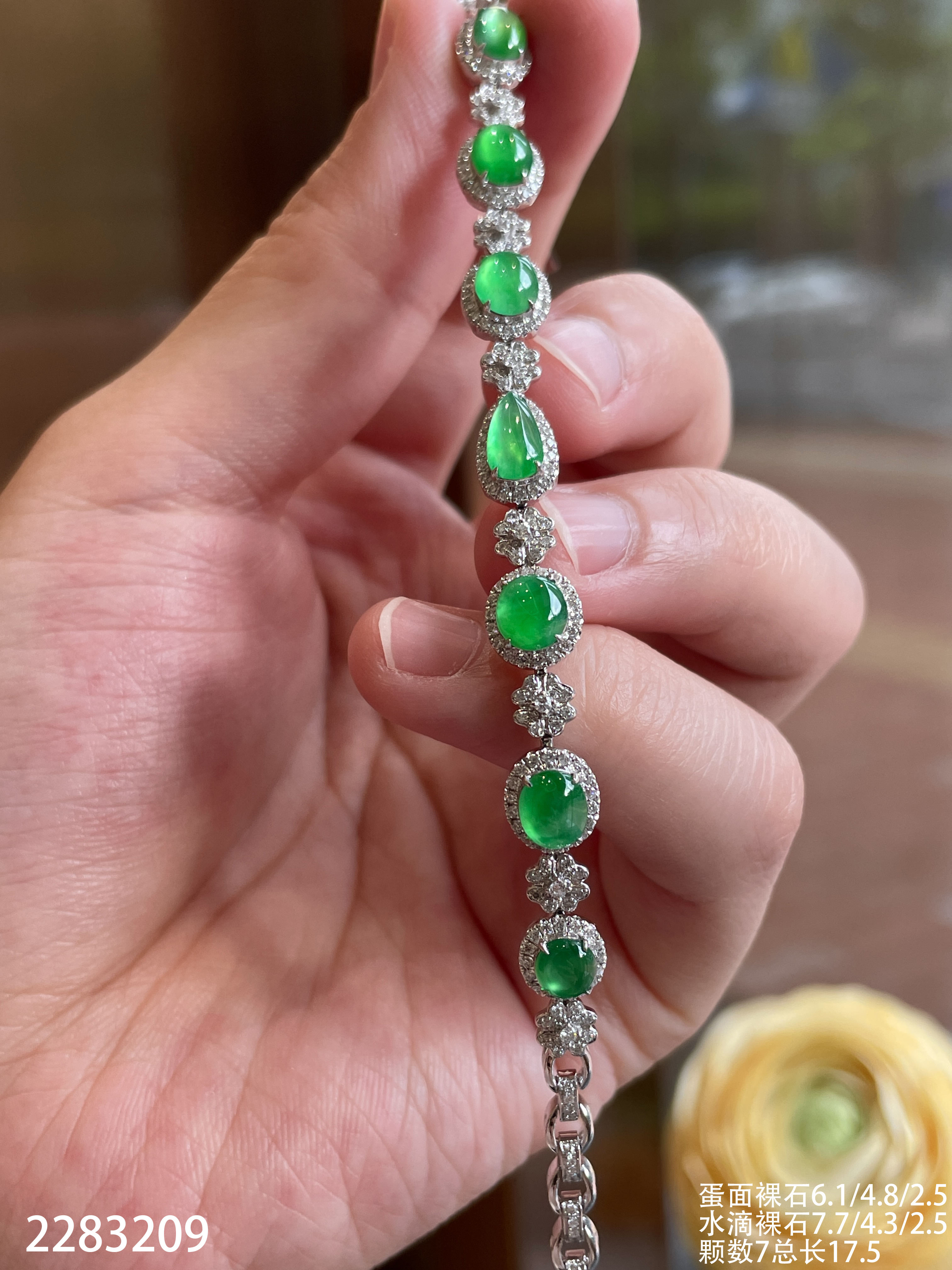 2283209,高冰艳阳绿蛋面手链。具体价格微信咨询