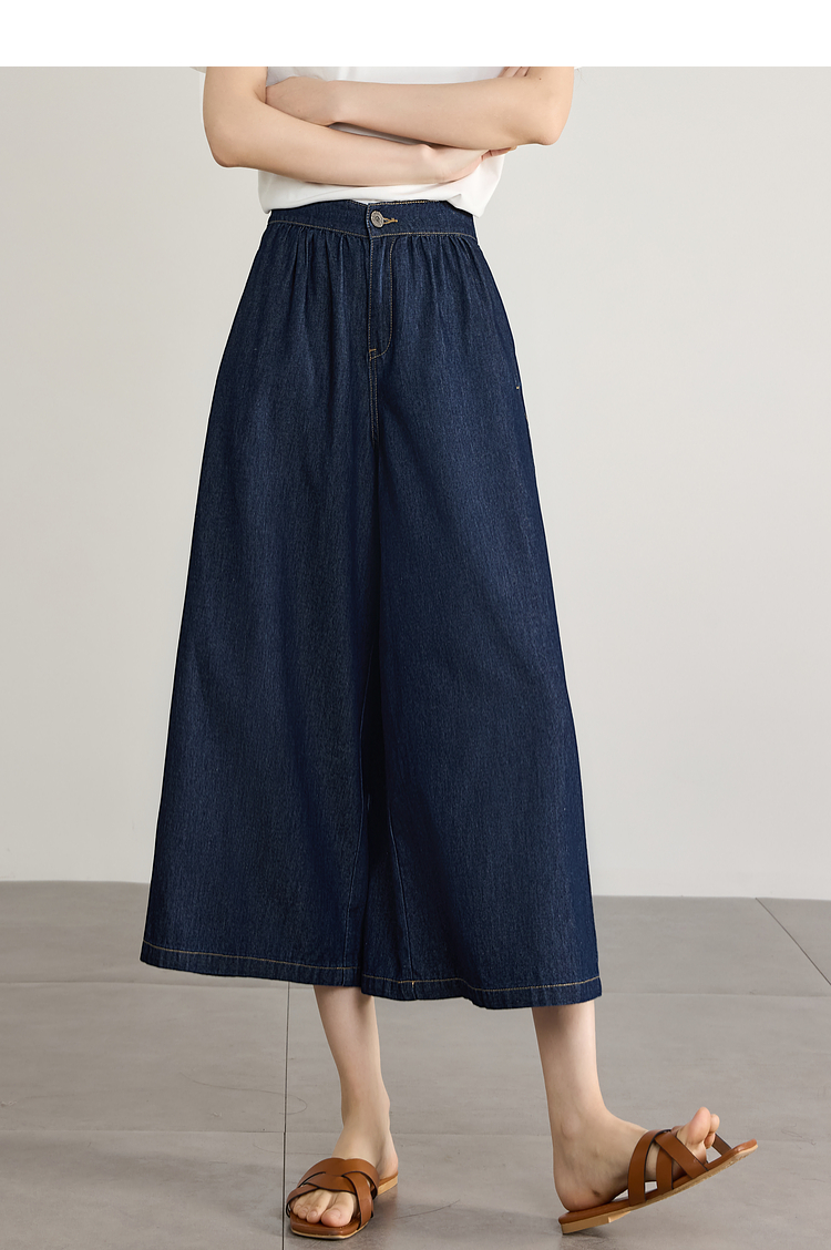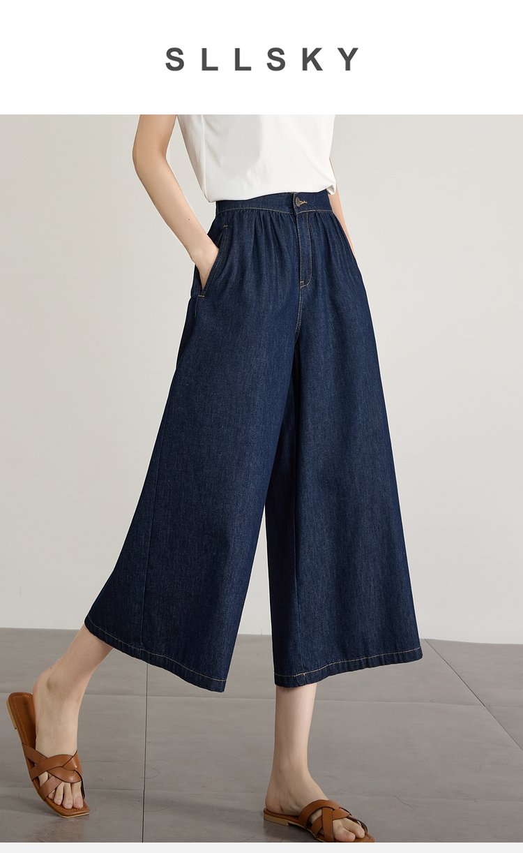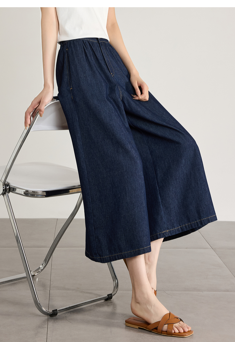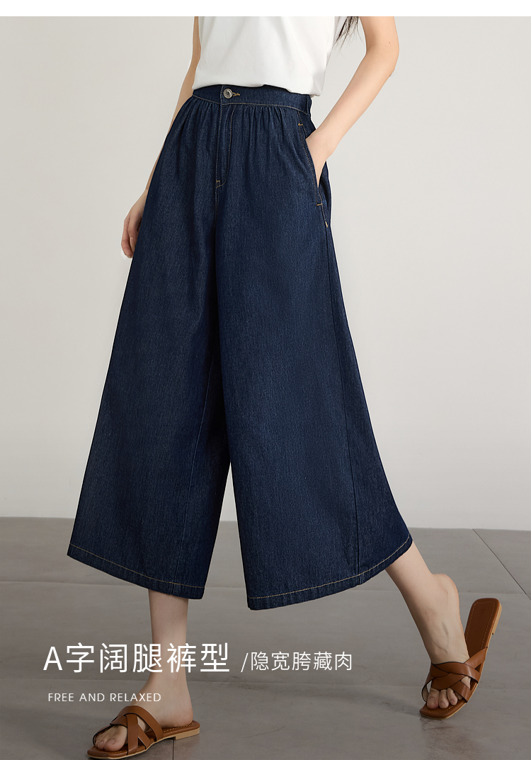 【专属特价】熙世界垂感牛仔裙裤阔腿裤2025夏季新款复古港风休闲八分宽松裤