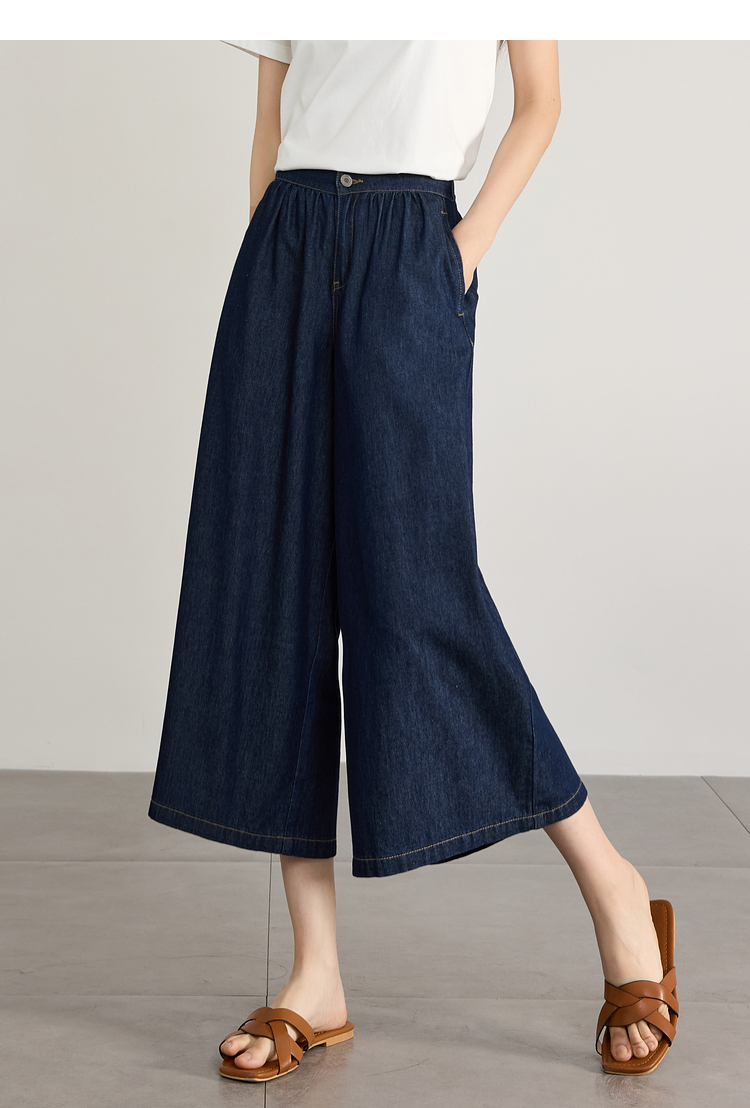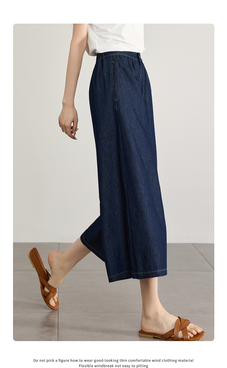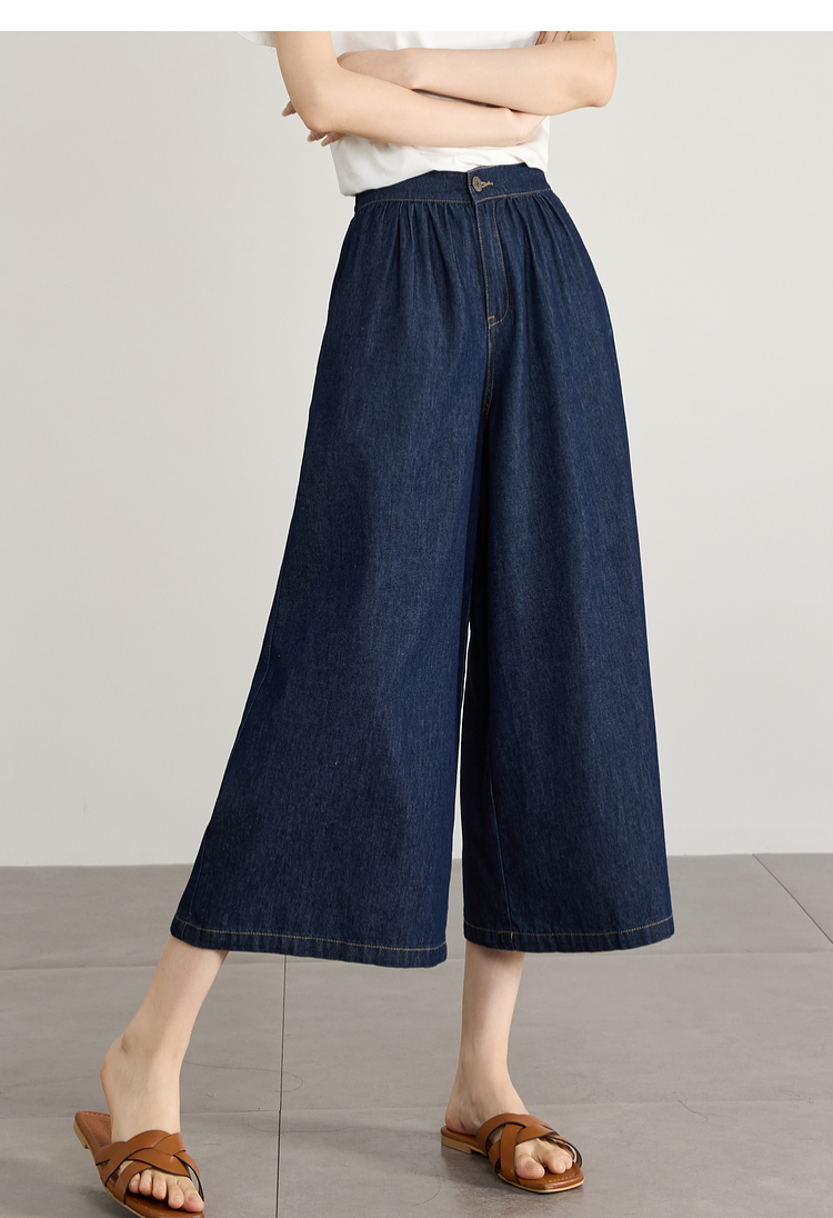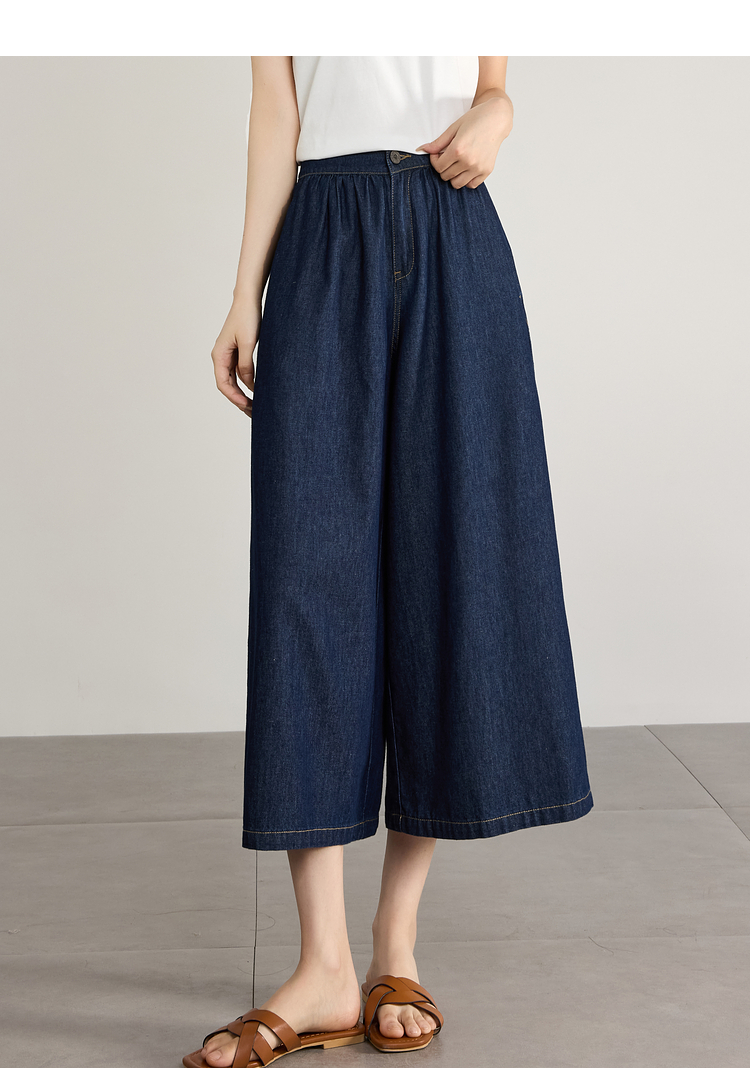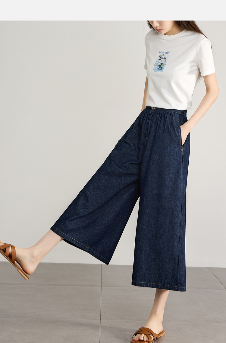 【专属特价】熙世界垂感牛仔裙裤阔腿裤2025夏季新款复古港风休闲八分宽松裤