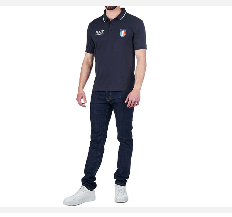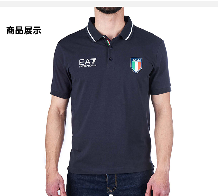 EMPORIO ARMANI EA7 阿玛尼 男士棉质字母标志logo印花短袖 POLO衫 藏蓝色 8NPFC0 PCA2Z 1578