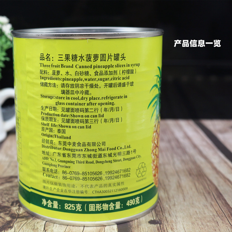 825g 【无拉环款】三果 糖水菠萝圆片罐头 水果披萨餐饮烘焙 水果罐头