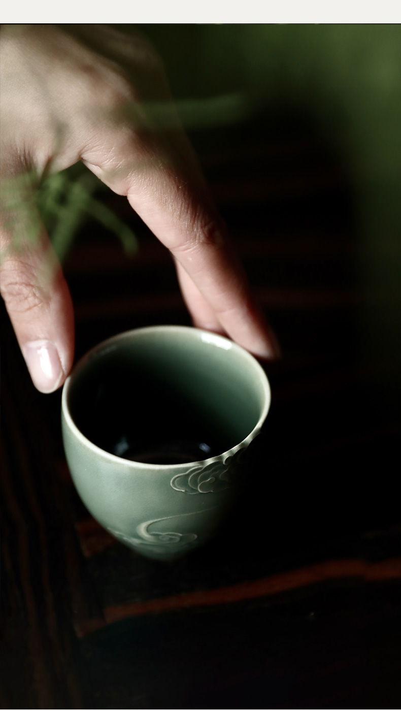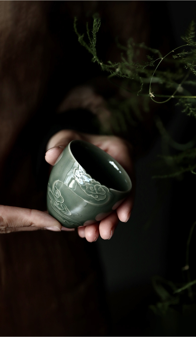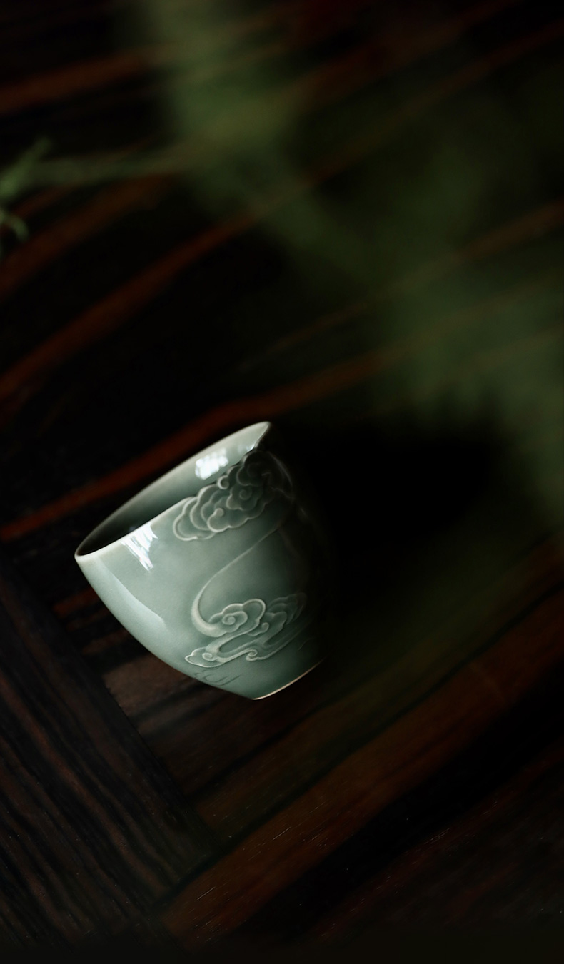 禺沐青云 严少英 云卷云舒杯 龙泉青瓷薄胎厚釉梅子青茶杯青瓷品茗杯名师手作主人杯个人杯