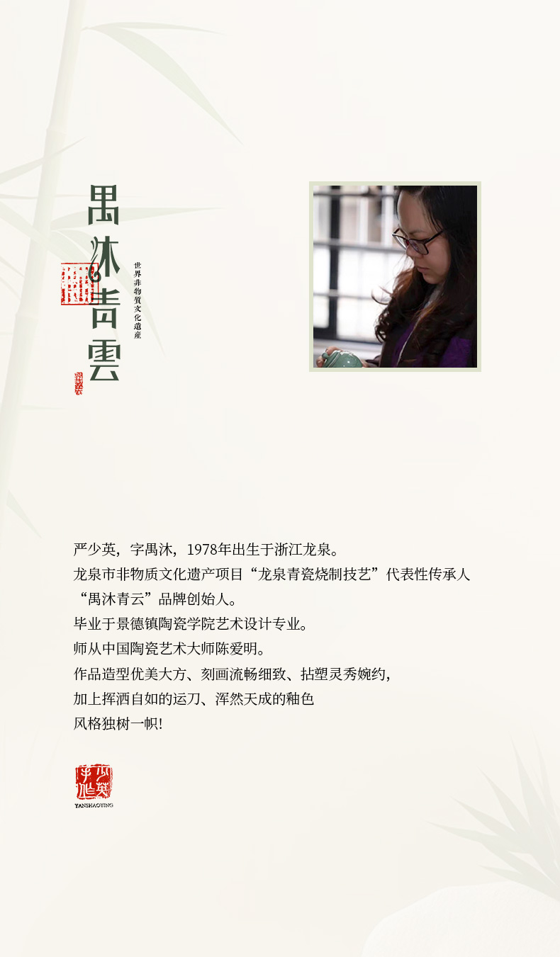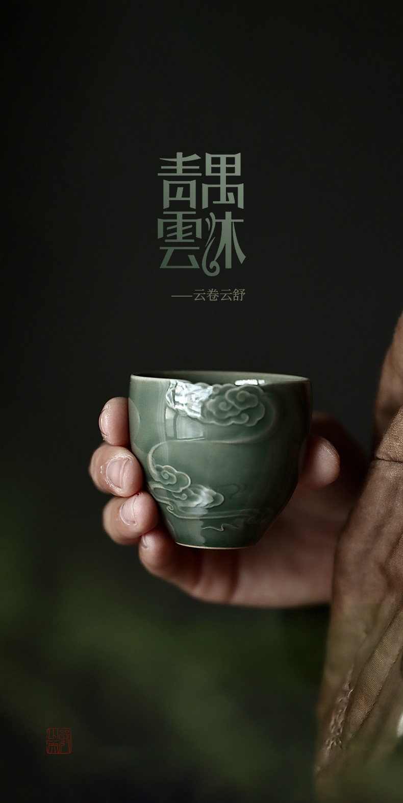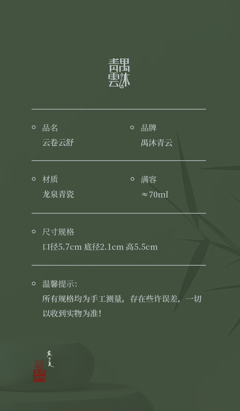 禺沐青云 严少英 云卷云舒杯 龙泉青瓷薄胎厚釉梅子青茶杯青瓷品茗杯名师手作主人杯个人杯