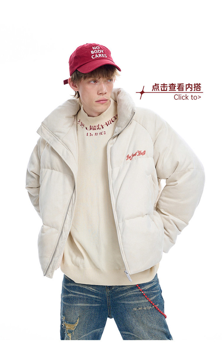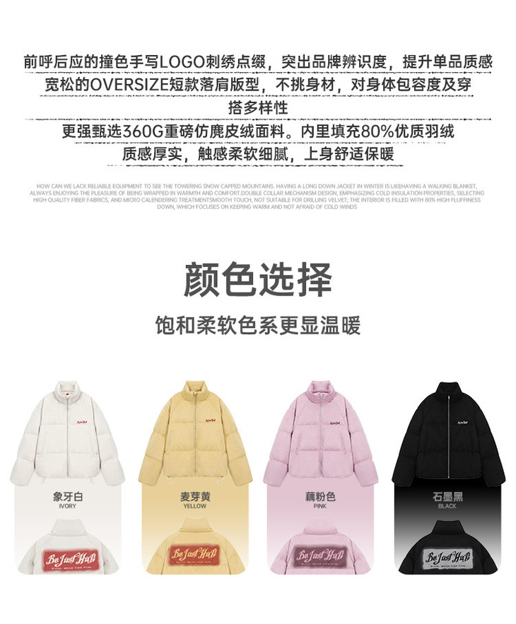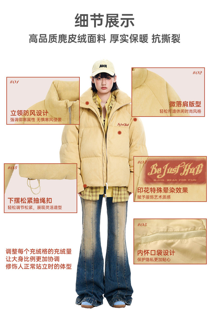 BJHG不计后果轻薄白鸭绒羽绒服男冬季加厚晕染宽松麂皮绒外套