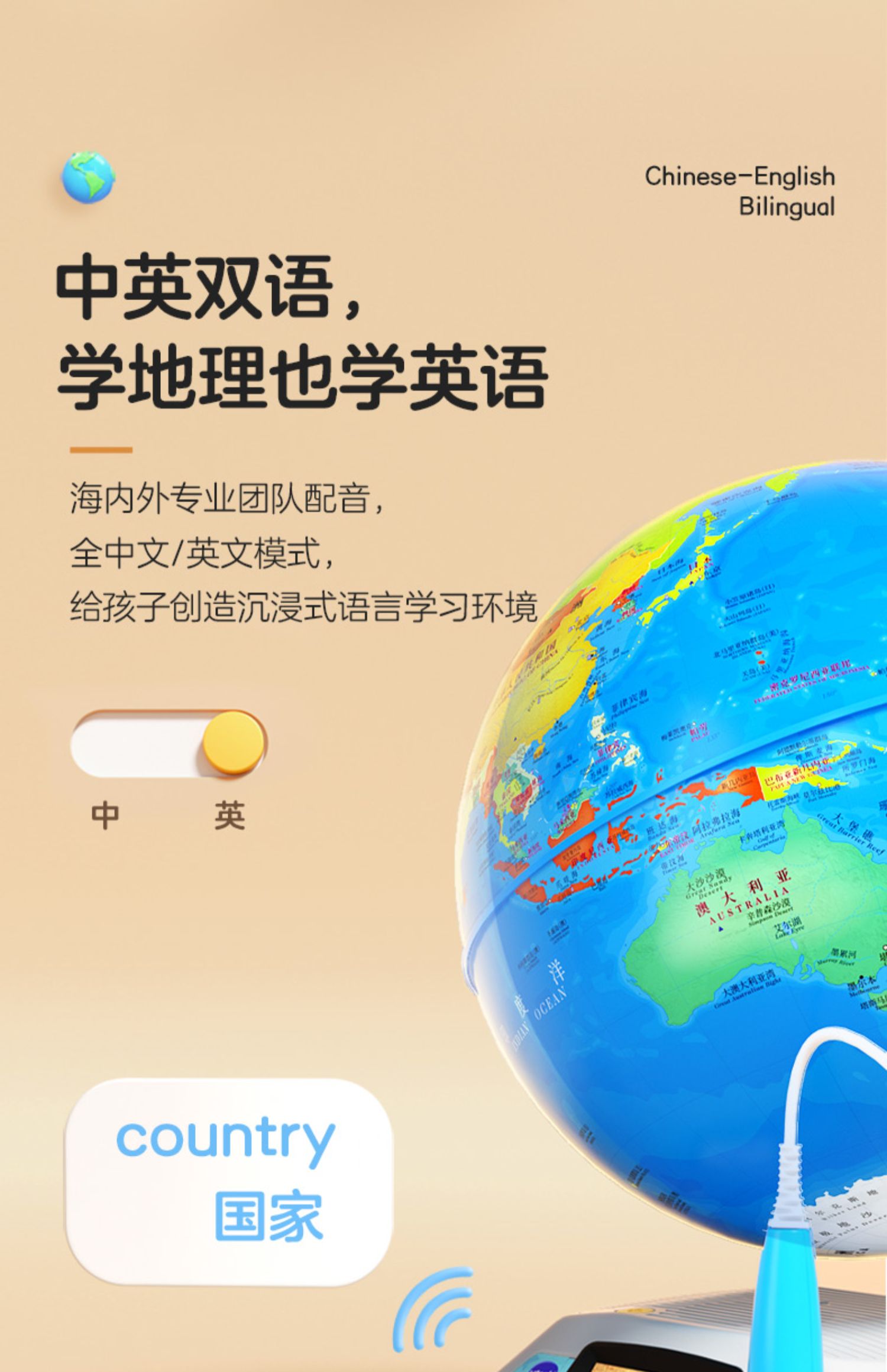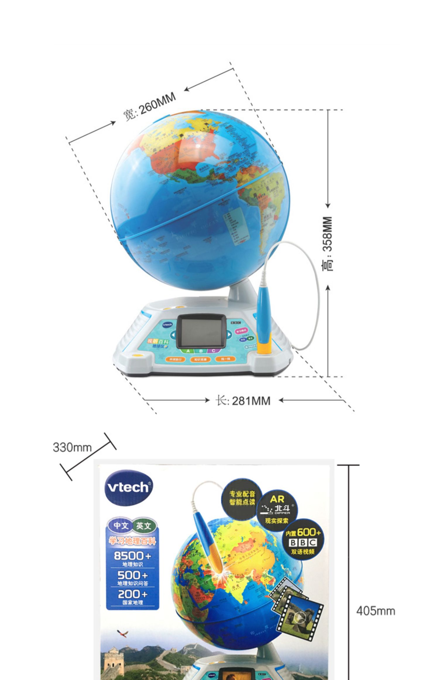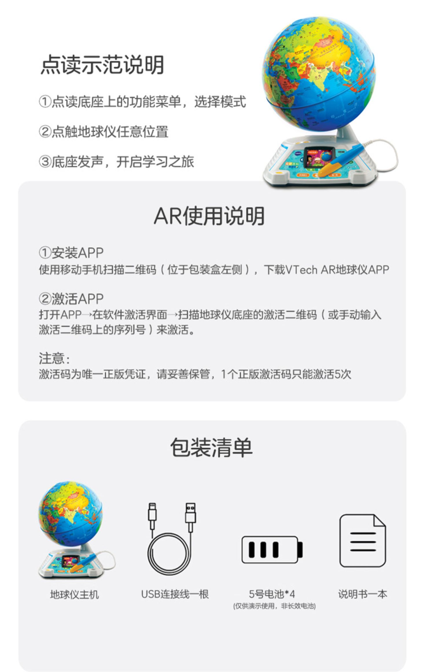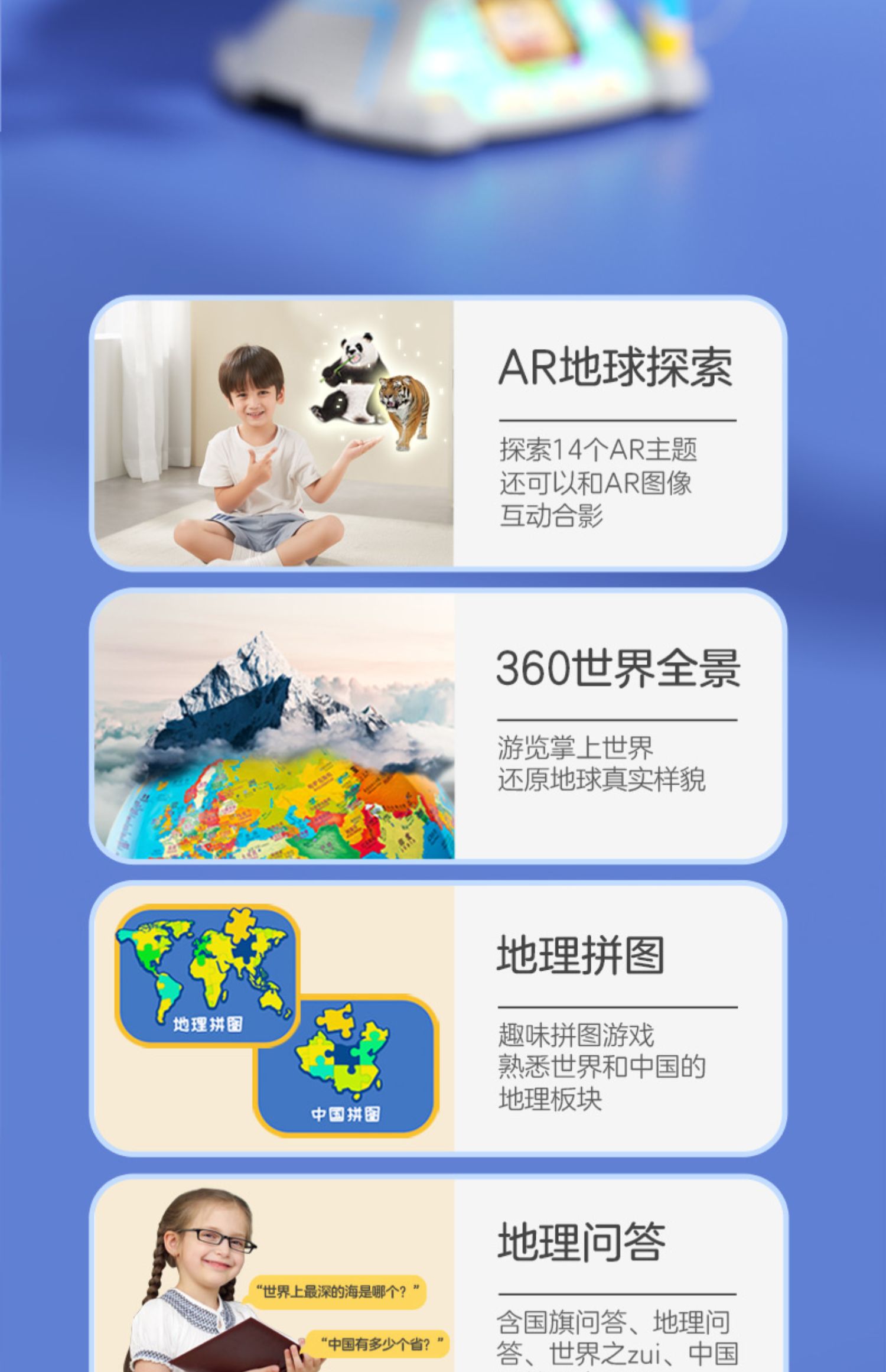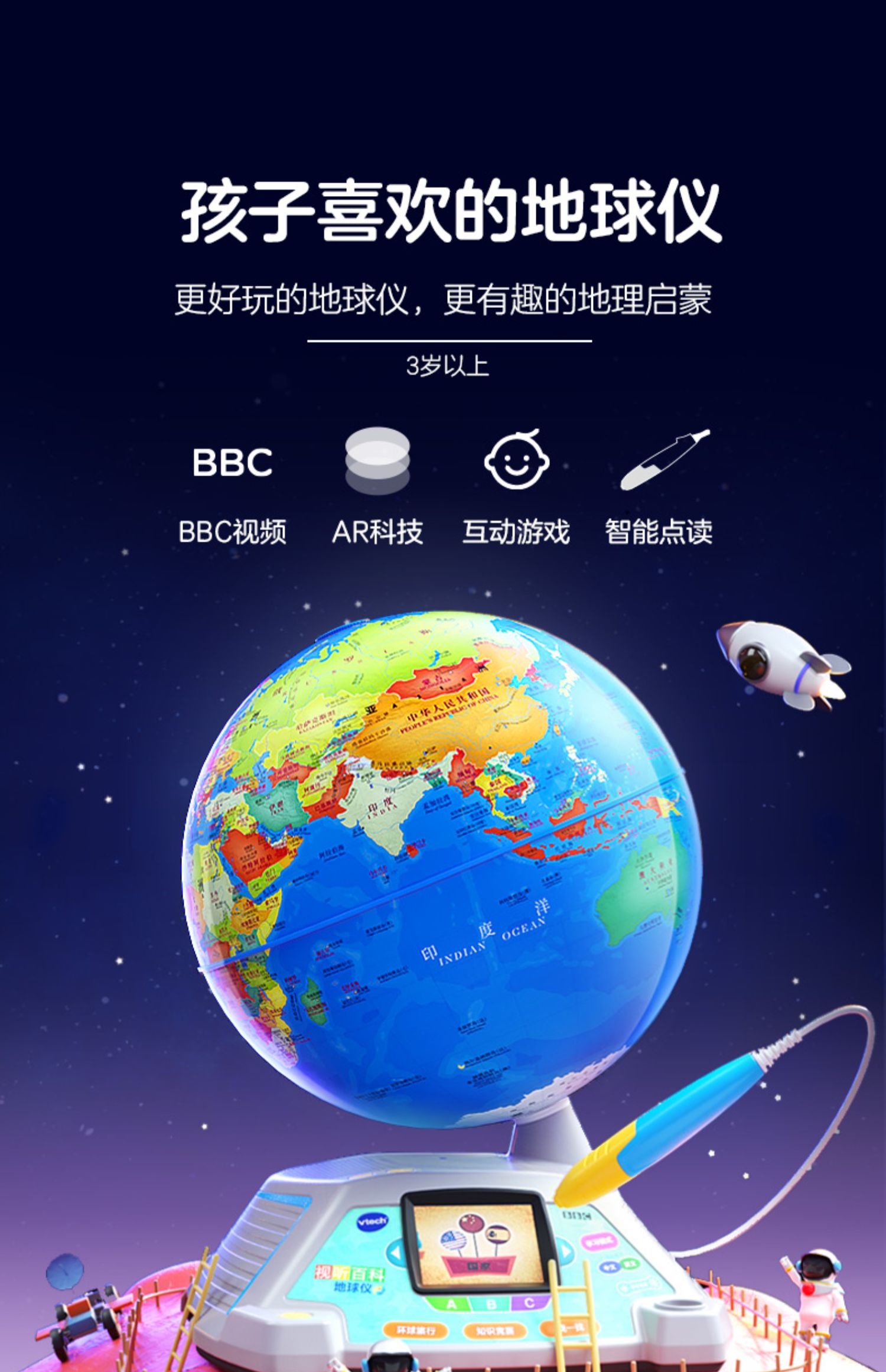 伟易达视听百科地球仪点触发声儿童地理启蒙玩具AR点读早教机教具