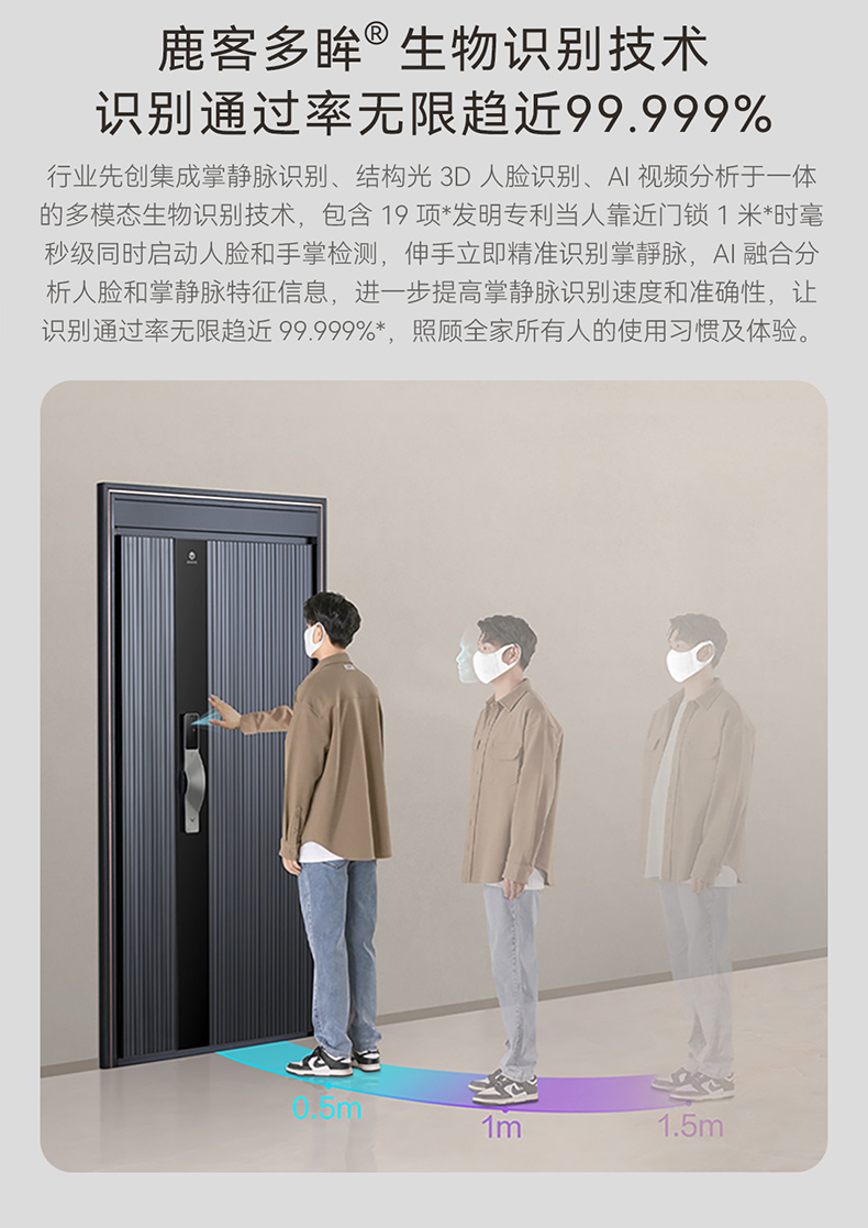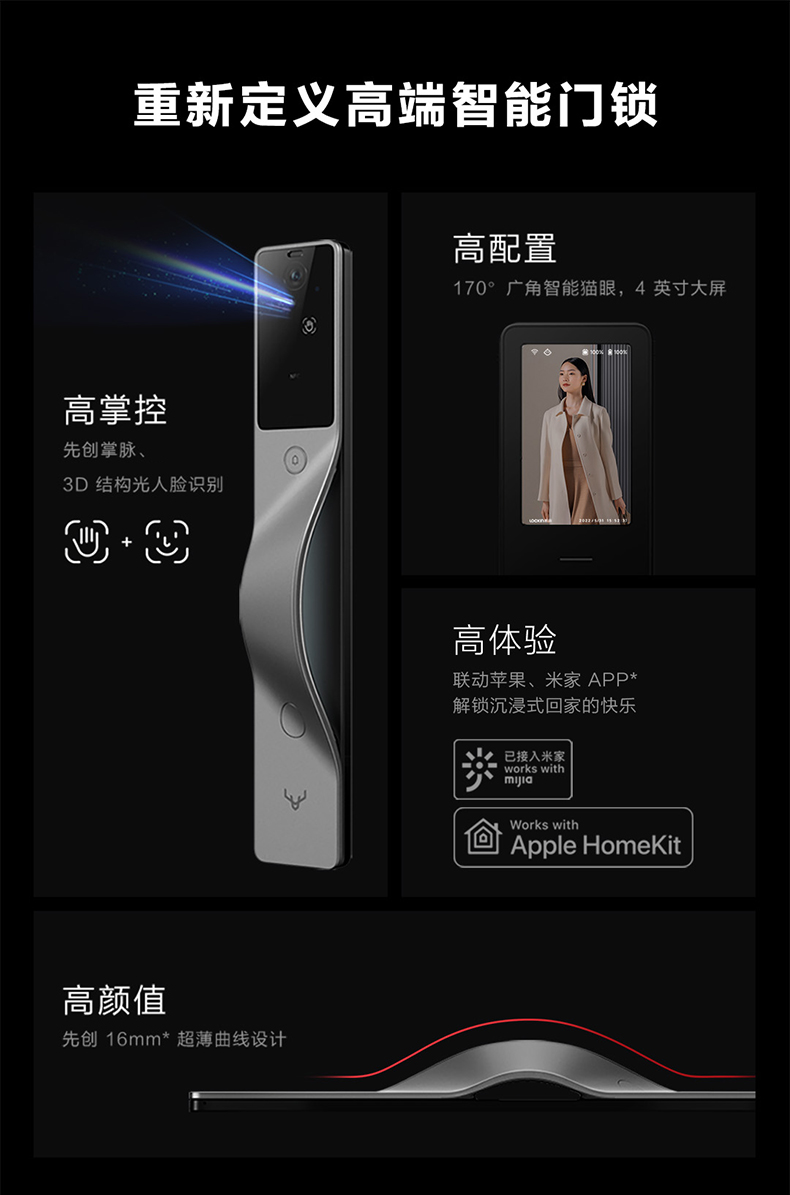 鹿客 V5MAX掌静脉智能锁苹果首席设计师的科技极简美学作品一触即开,哨兵安防,老少皆可用,超长续航,防宠物开、支持米家