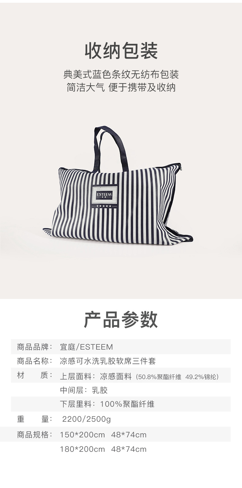一触即凉纳米凉感冰丝可水洗乳胶凉席三件套