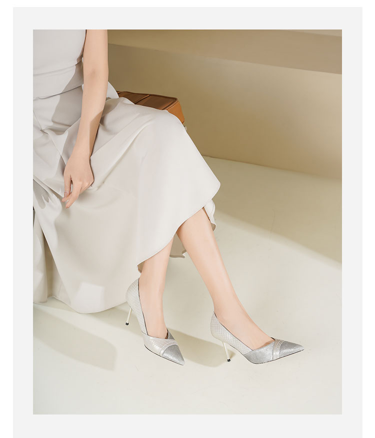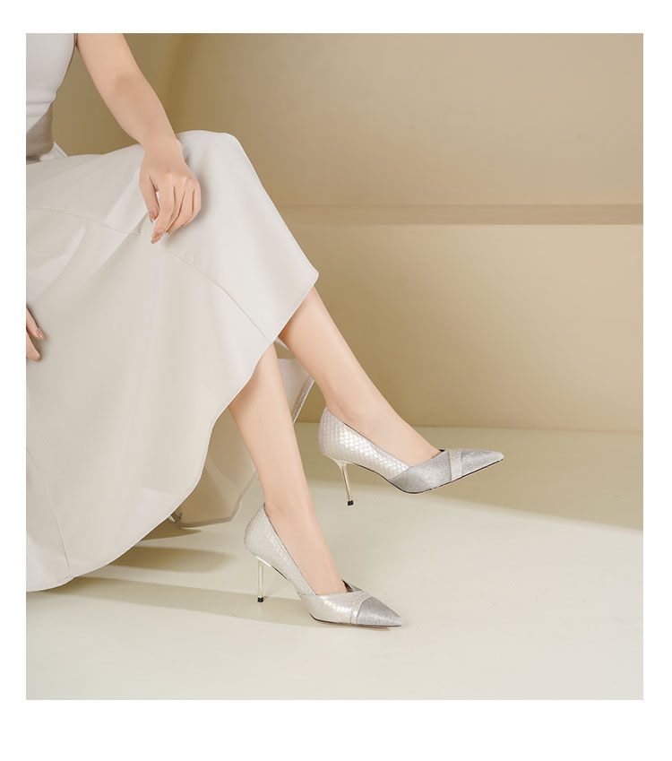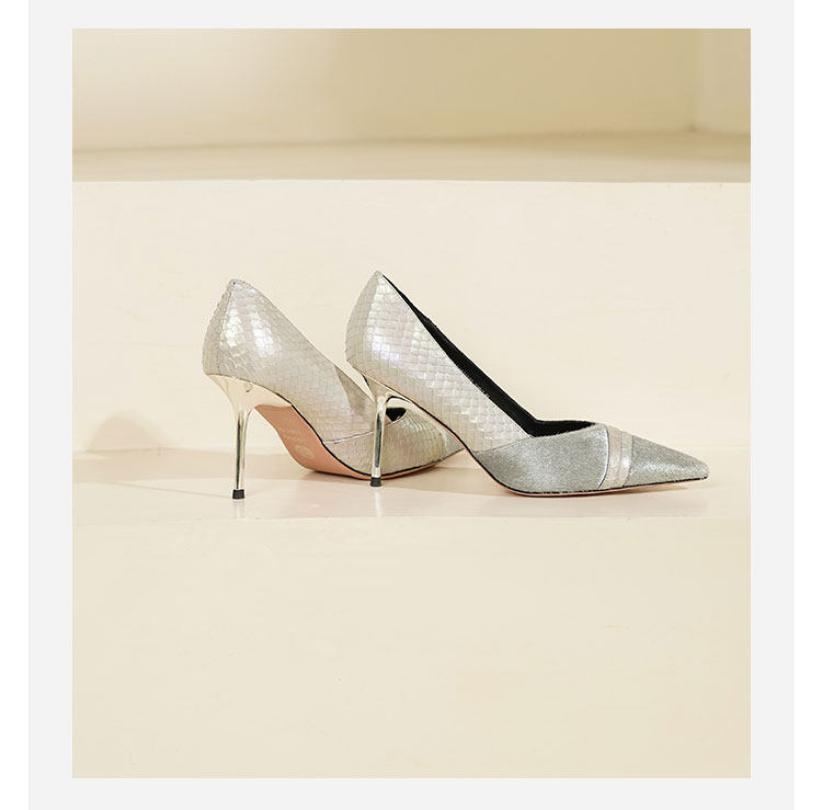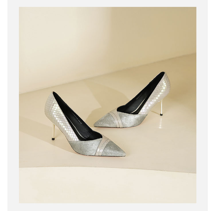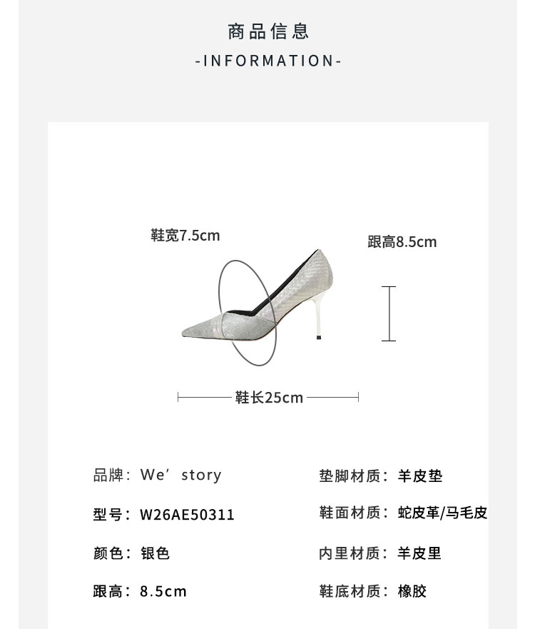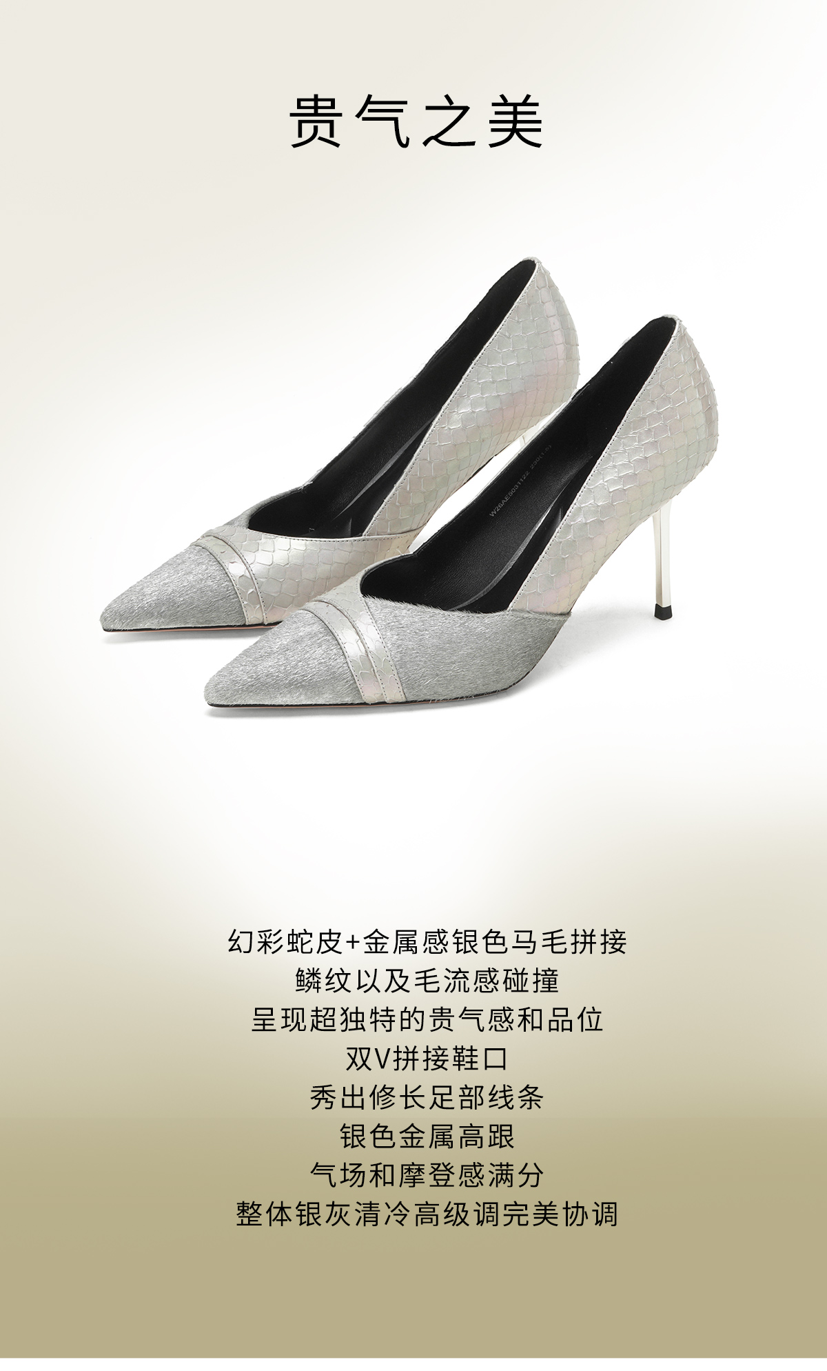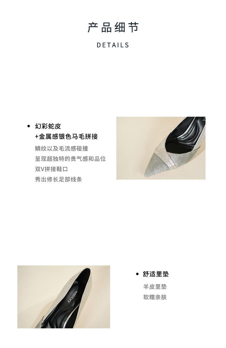 Westory2026年春季蛇皮拼马毛高跟尖头百搭通勤浅口单鞋W26AE50311