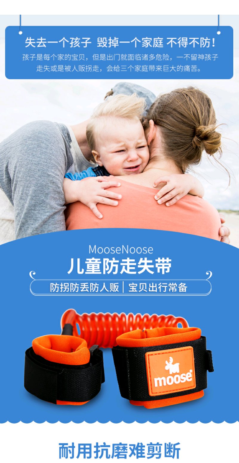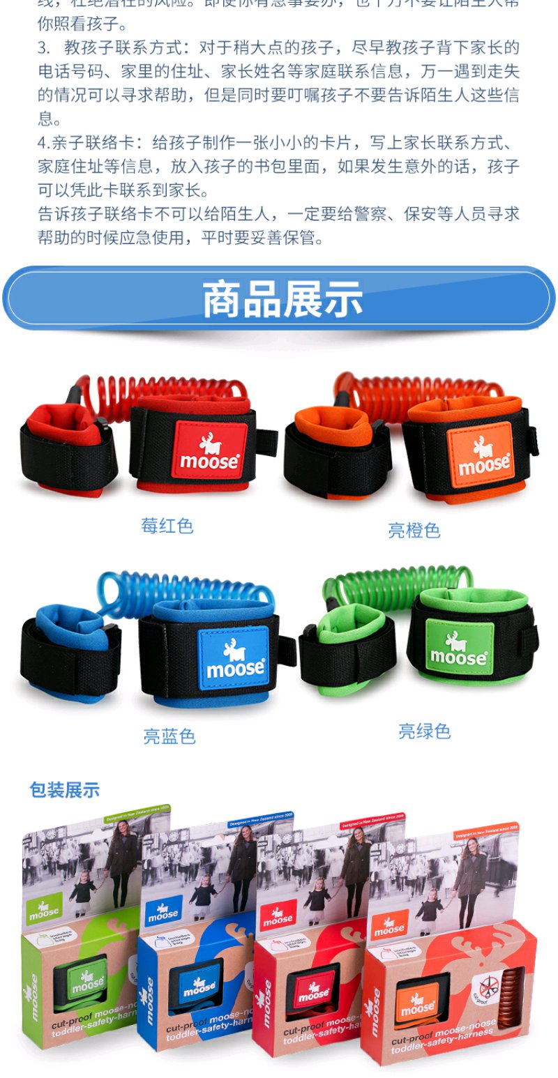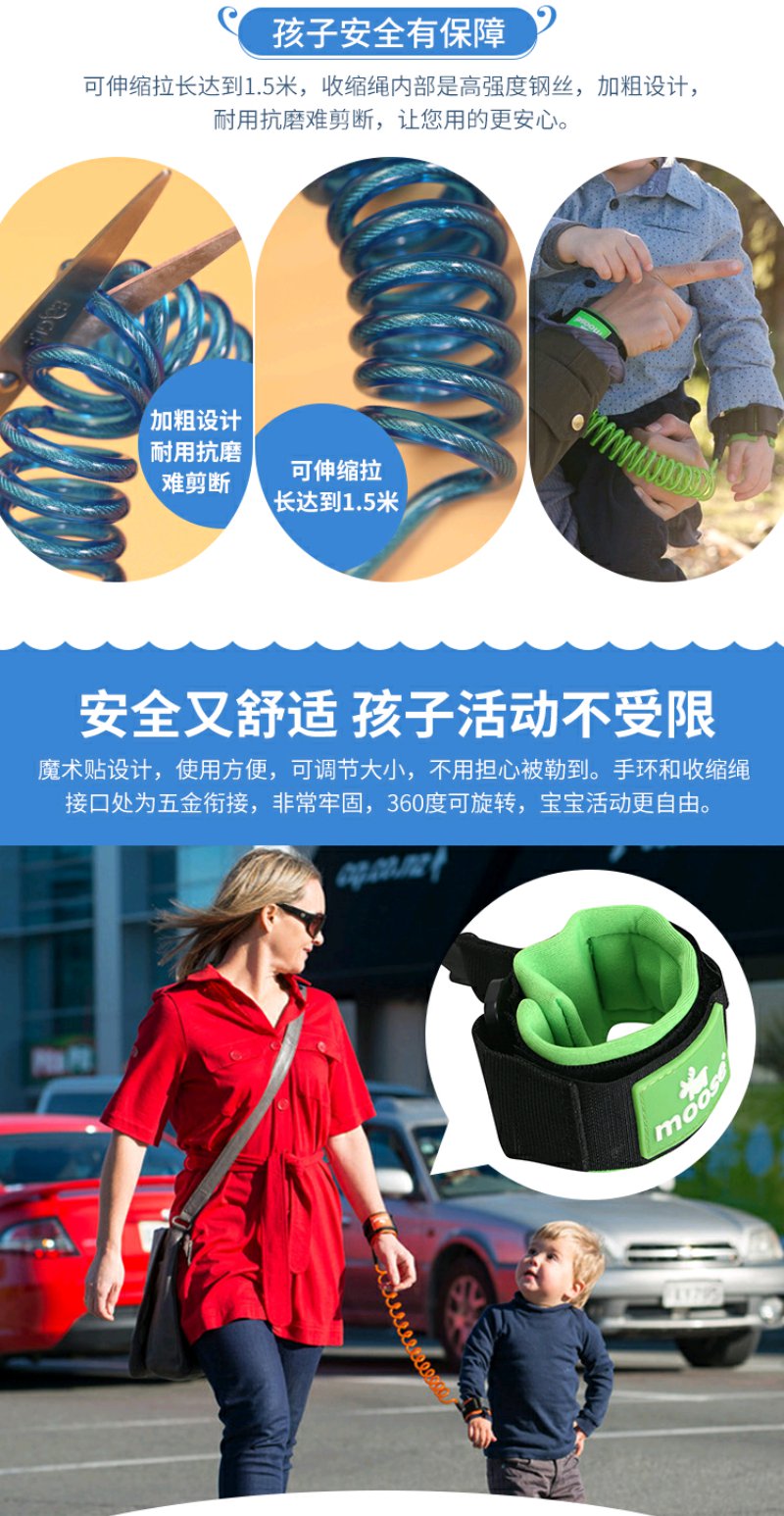 Moose防走失带牵引绳 宝宝儿童防丢失手环溜娃绳防走丢防丢绳安全FZ-MOS-38081/FZ-MOS-38074/FZ-MOS-38050/FZ-MOS-38067