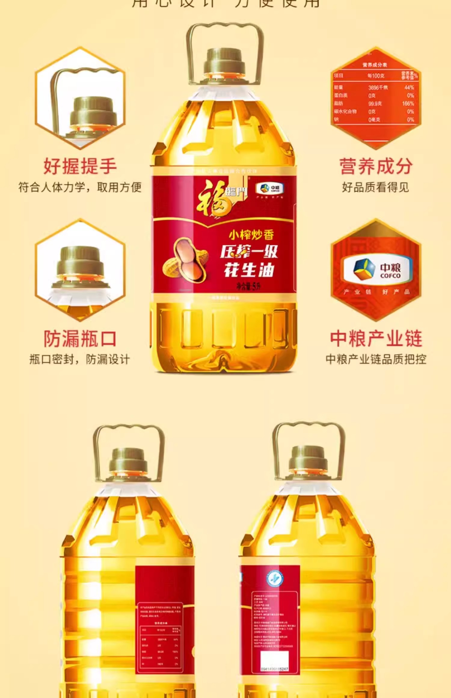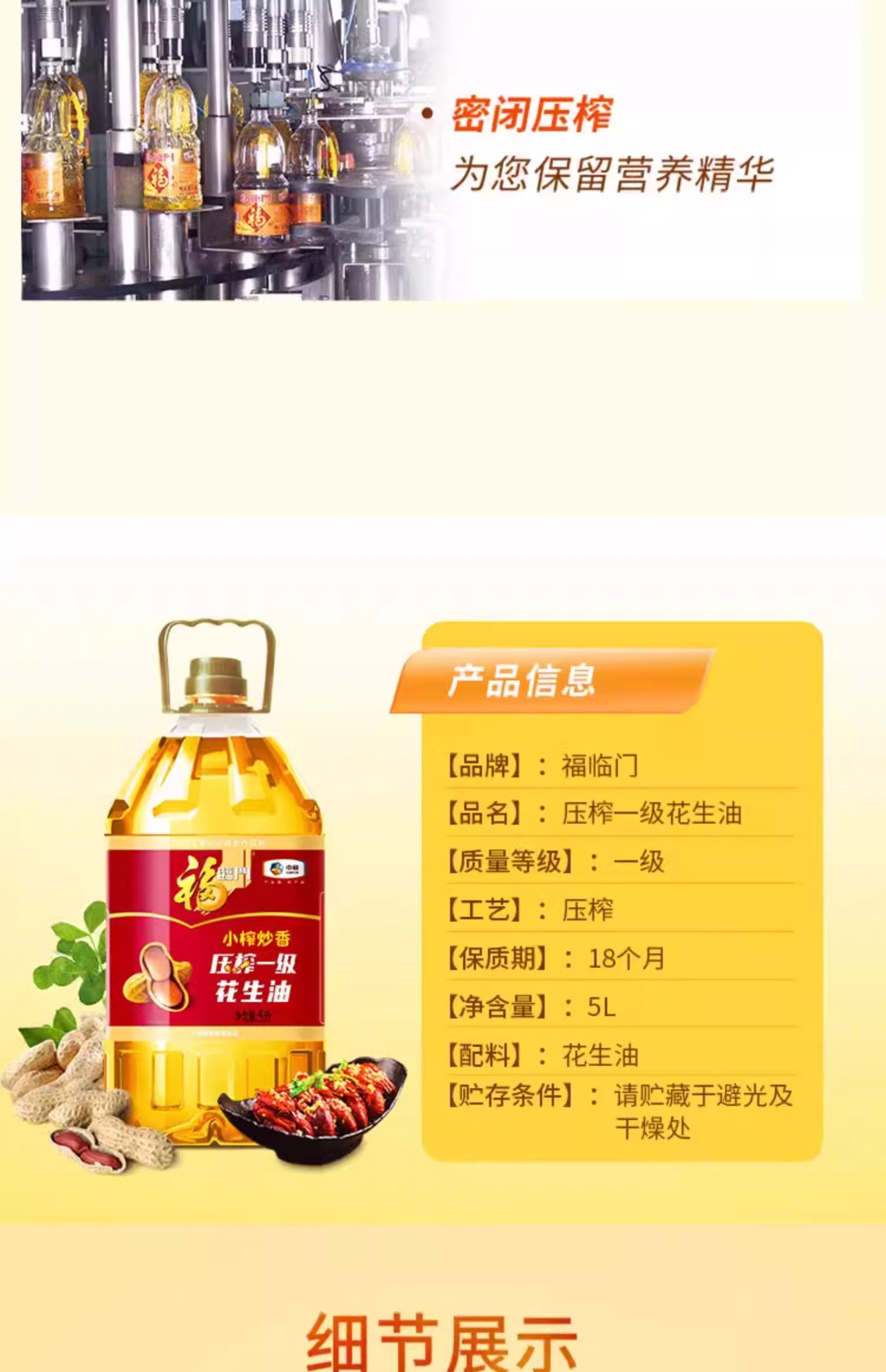 【秒杀】福临门小榨炒香压榨一级花生油5L