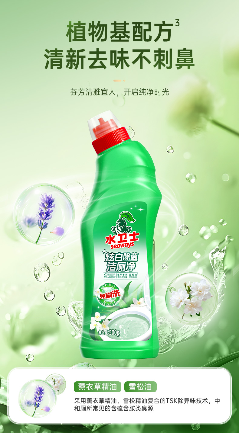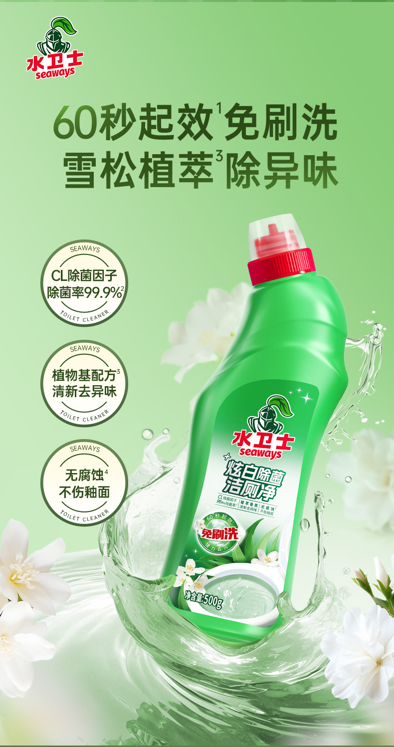 水卫士 炫白除菌洁厕净 60秒起效免刷洗 雪松植萃除异味 可每天使用 48小时发货