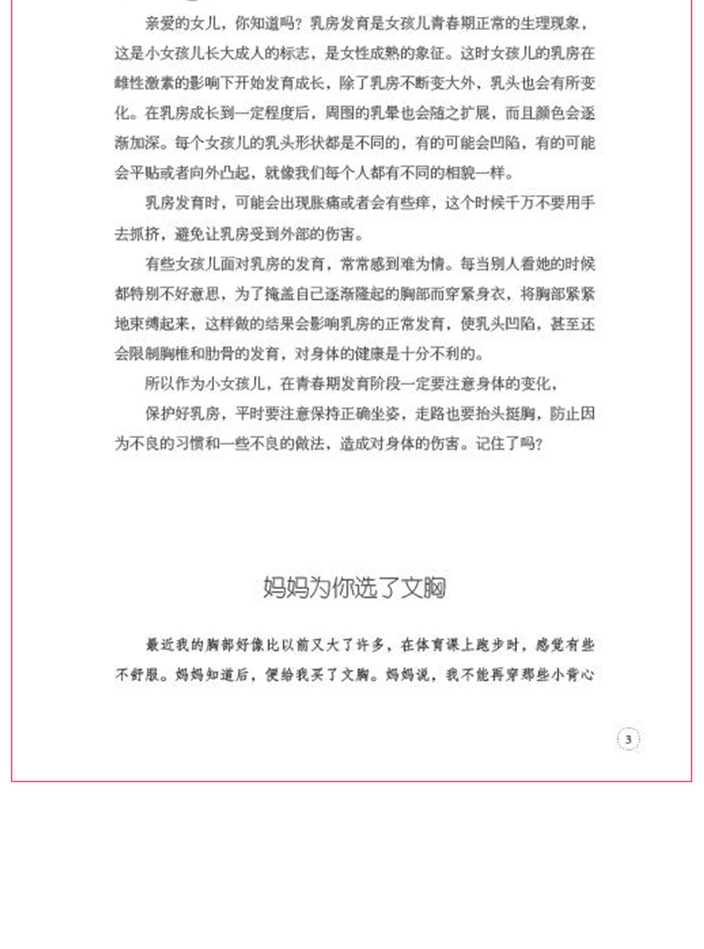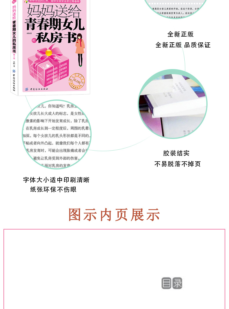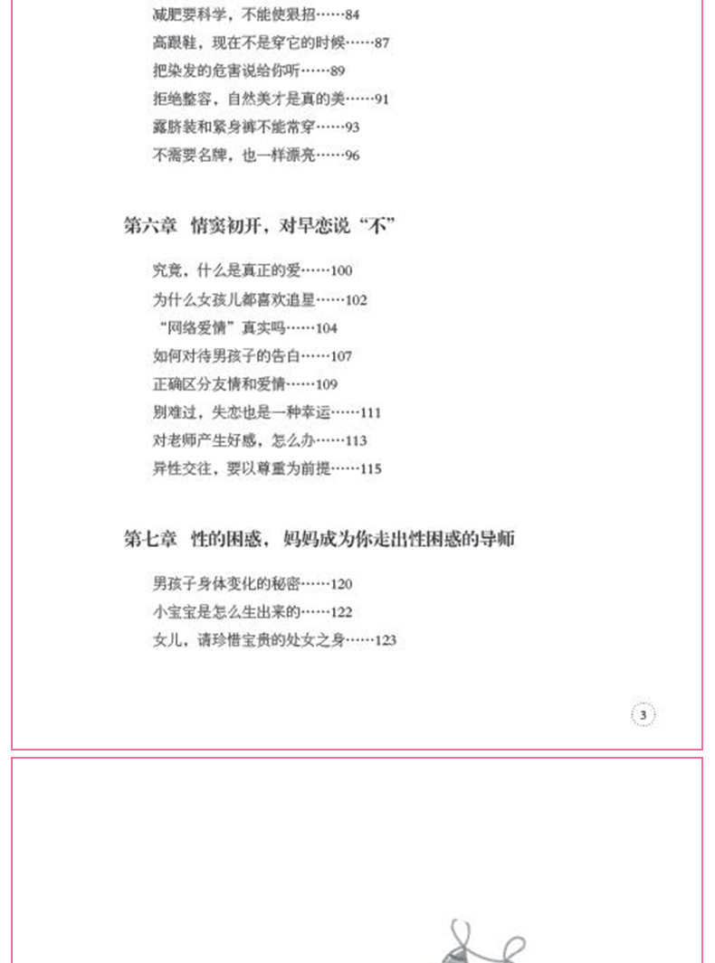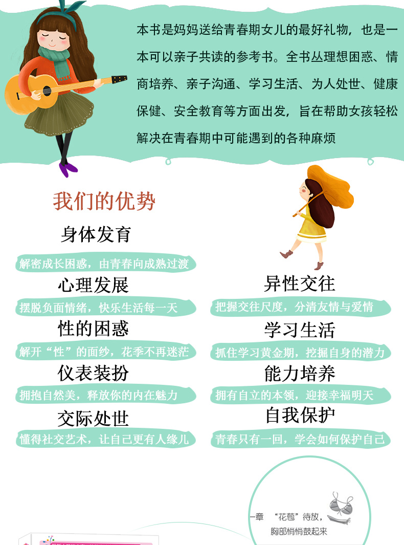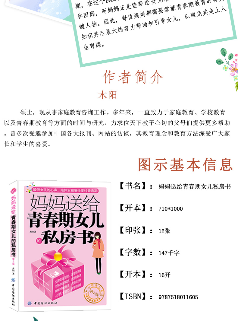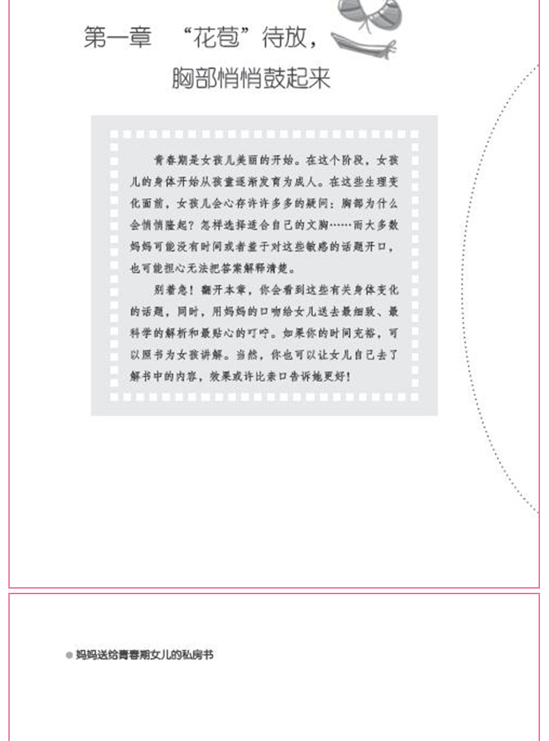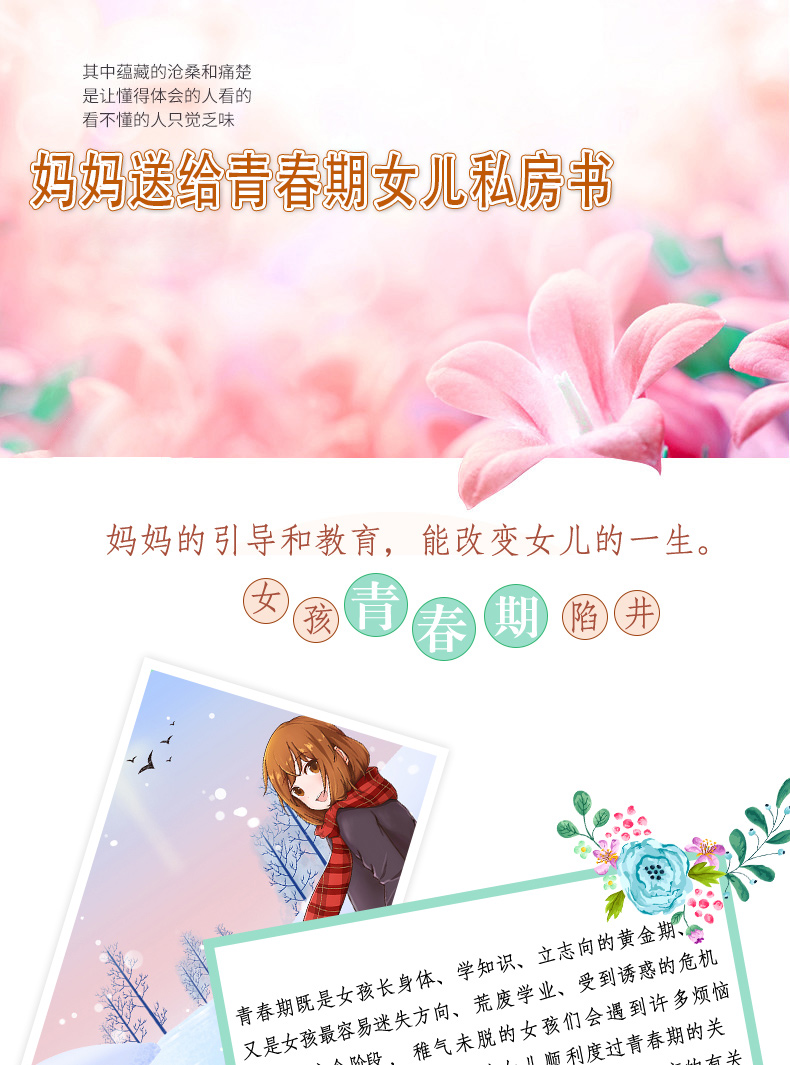 妈妈送给青春期女儿的私房书(版)是一本可供妈妈和女儿共同阅读的青春成长读本,也是一本代表全天下妈妈写给女儿看的书!本书能给予青春期女孩心灵成长的养料,指导她们如何生活、交友、学习、自我保护、掌控情绪,使她们在18岁前能拥有融入社会的本领和独立生存的能力!