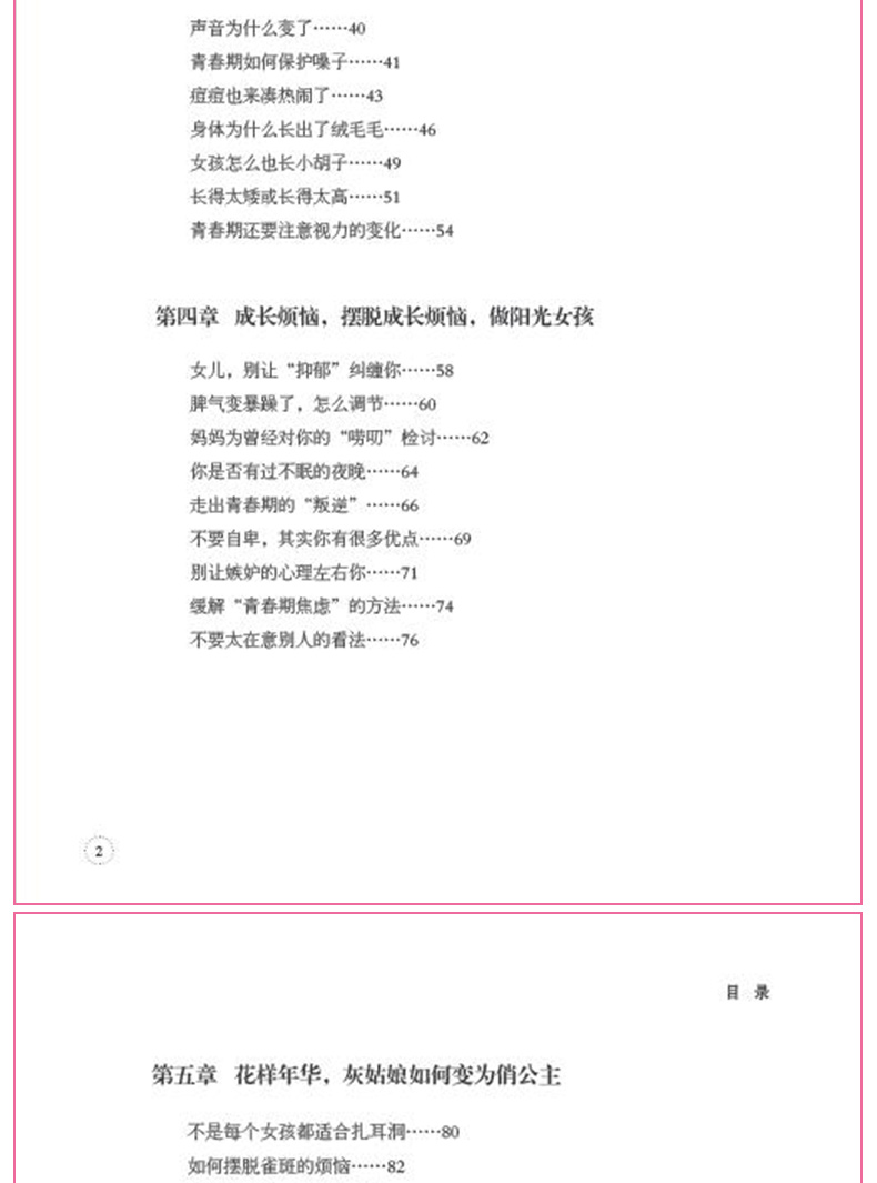 在女孩的花季岁月里,每一位妈妈都是惊喜与担忧并存的。惊喜的是,曾经不懂事的女儿一夜之间长成了大姑娘;担心的是,进入青春期的女儿有了自己的心事,并为此变得敏感与脆弱。为了帮助花季女孩顺利度过青春期,妈妈送给青春期女儿的私房书(版)在版的基础上,结合个妈妈的成长经验和育女经验,以一位母亲的身份,以青春期女孩的故事为背景,描述了女孩进入青春期后要面临怎样的生理、心理变化,并给出了为详尽的解决办法。希望每个女孩都可以平安、快乐地度过花季,走过雨季。
