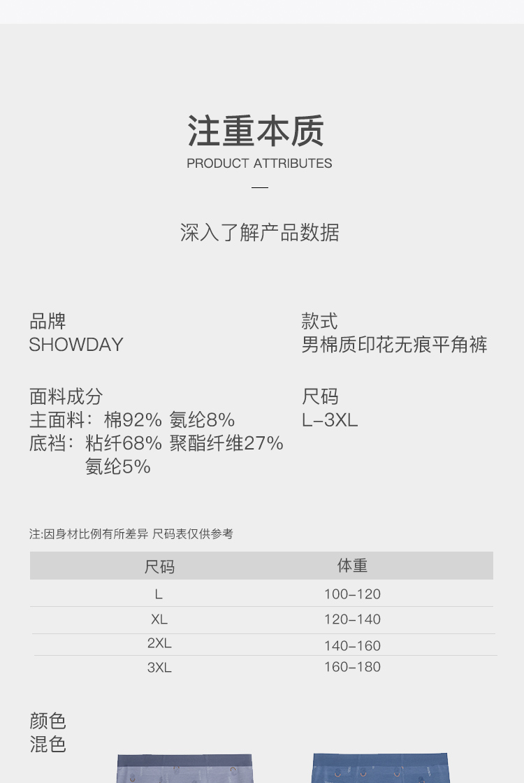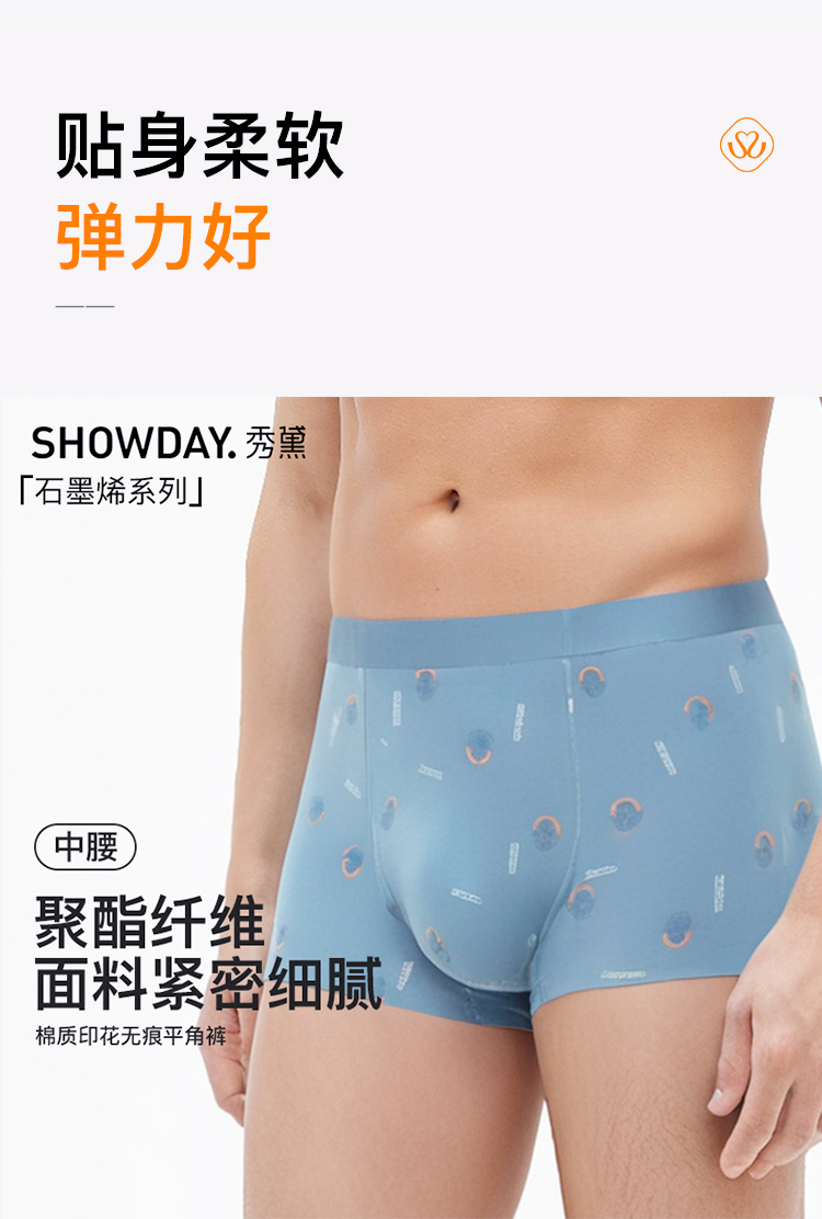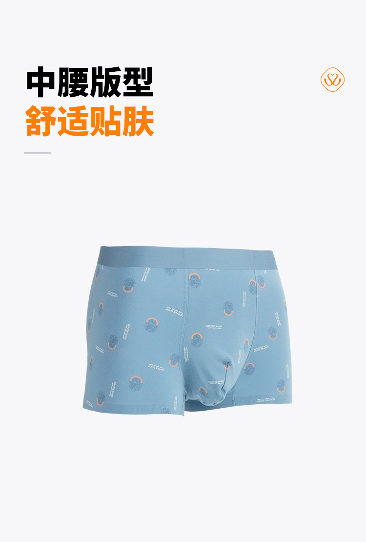 男棉质印花无痕平角裤
