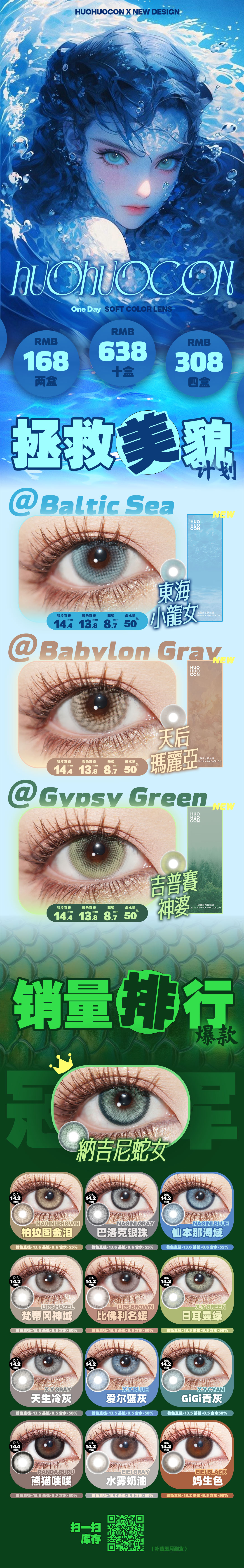 HUOHUOCON日抛活动·0-800度(无525/575)·东海小龙女&天后玛丽亚&吉普赛神婆&纳吉尼蛇女&巴洛克银珠&仙本纳海域&柏拉图金泪&熊猫噗噗&水雾奶油&妈生色