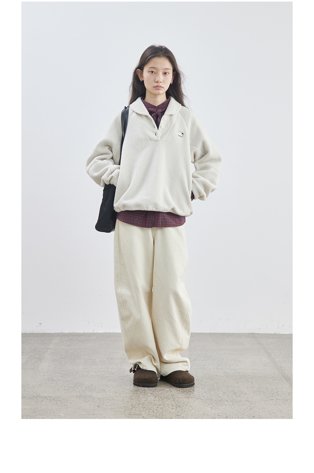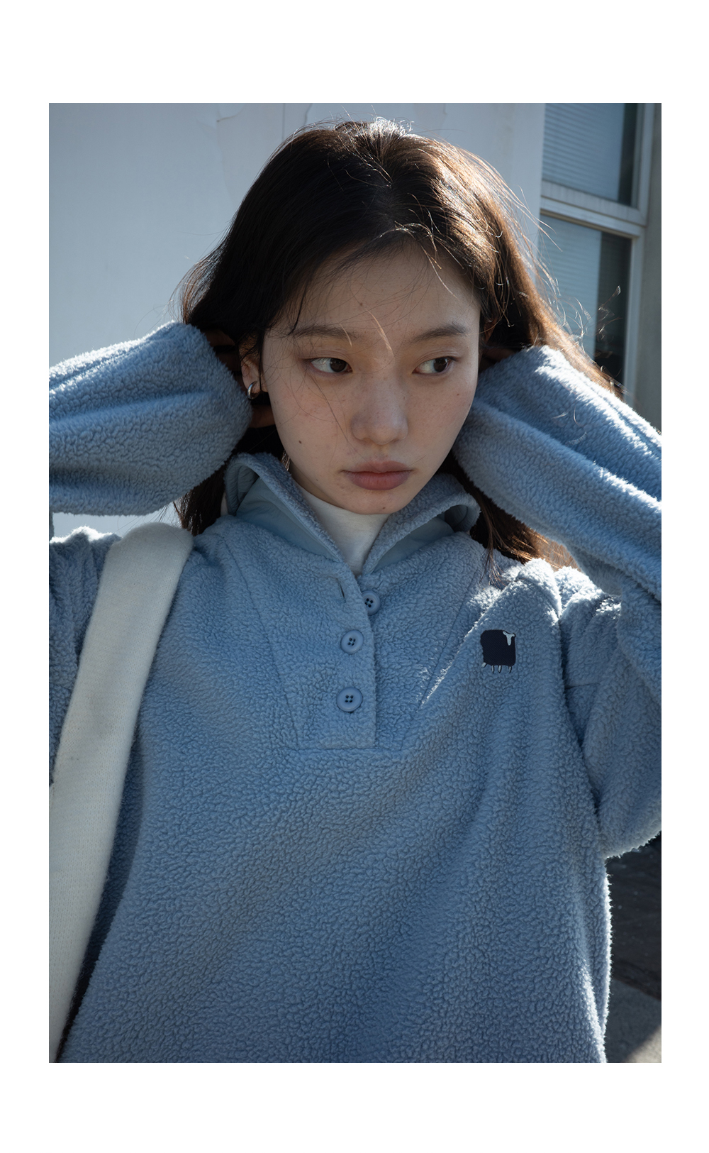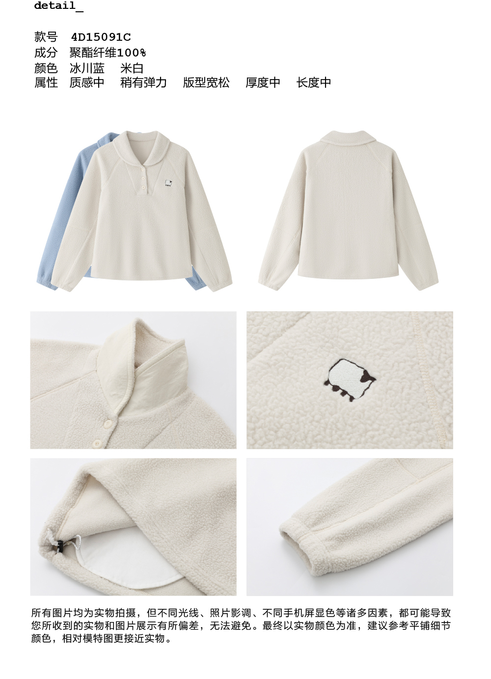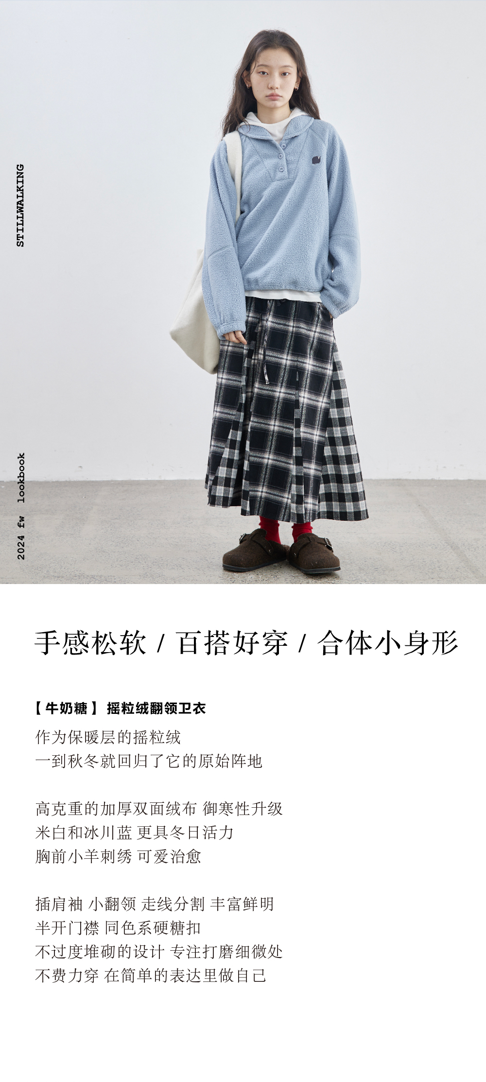 步履不停/4D15091C/摇粒绒半开翻领长袖卫衣