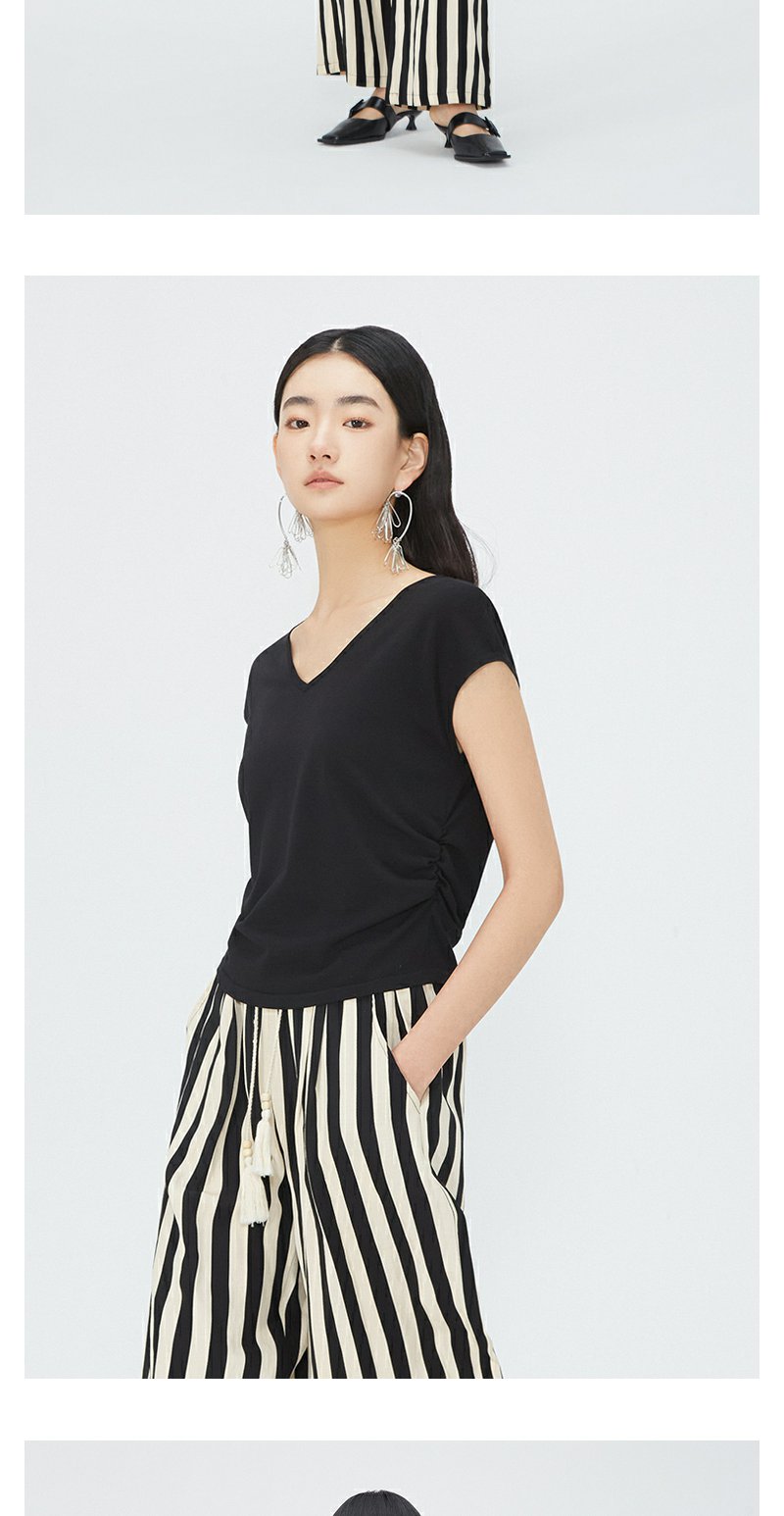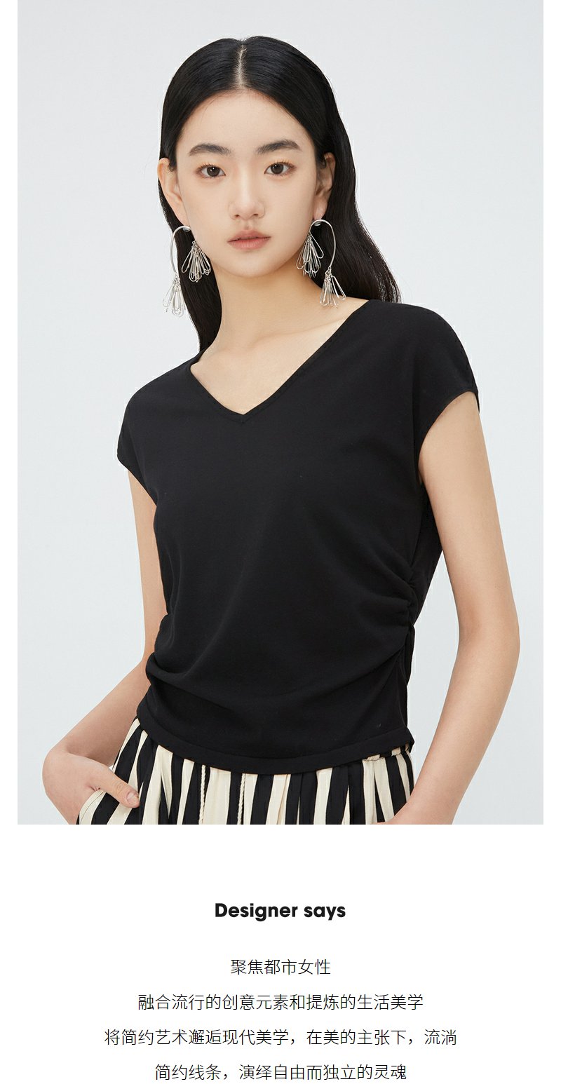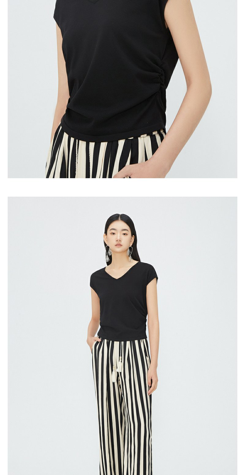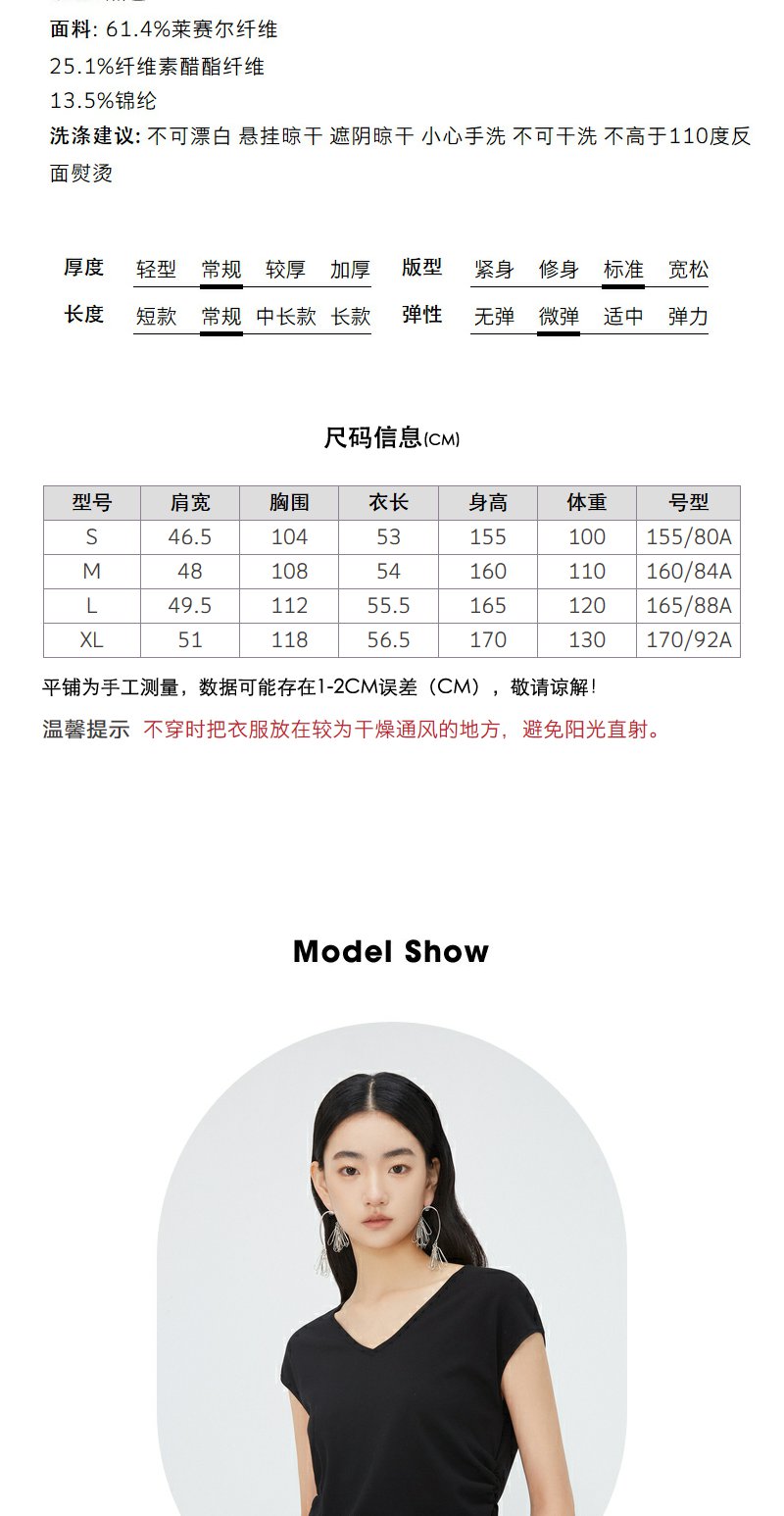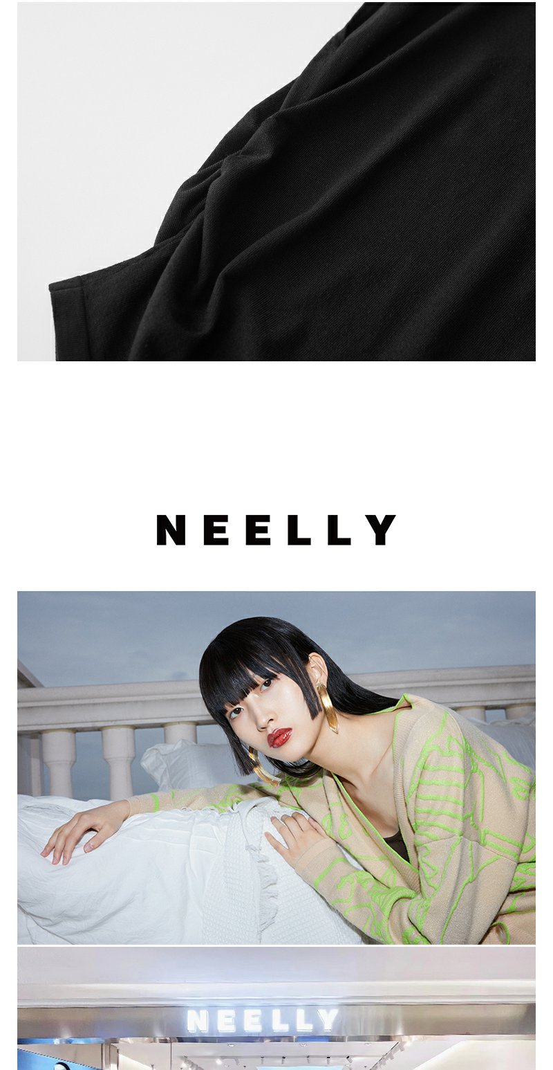NEELLY纳俪商场同款夏季新款莱赛尔无袖针织衫女V领褶皱显瘦上衣N25054A04646