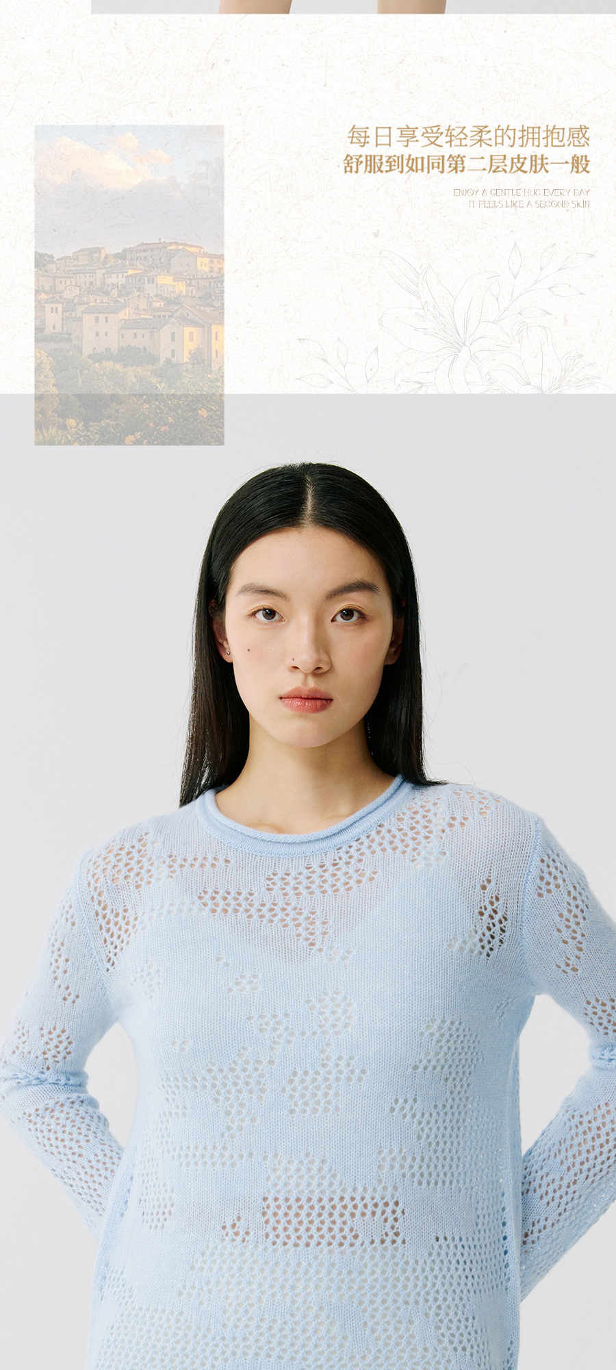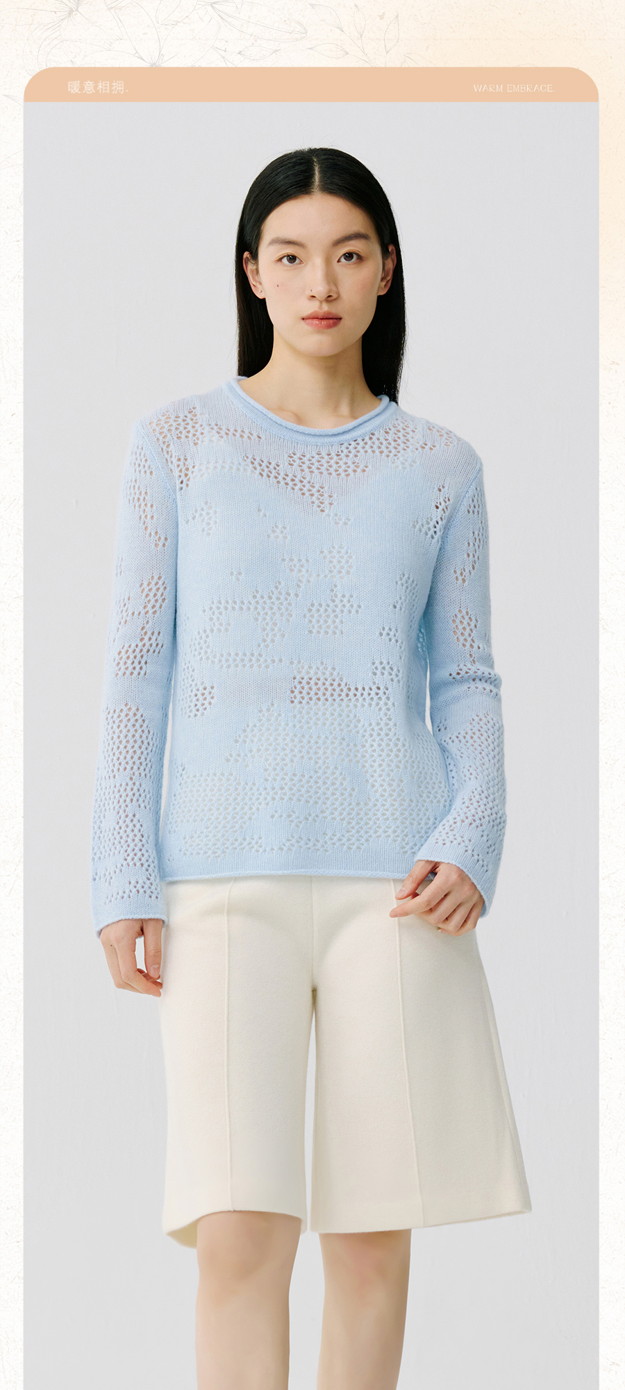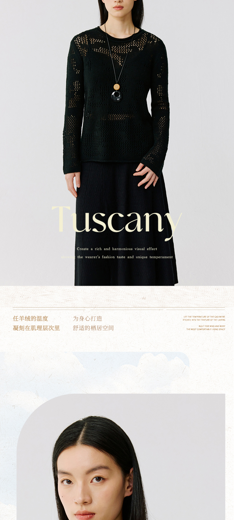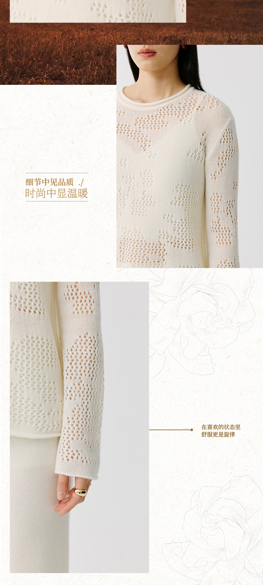 东黎 • 托斯卡纳系列—风与形 山羊绒女士镂空圆领套衫 5143