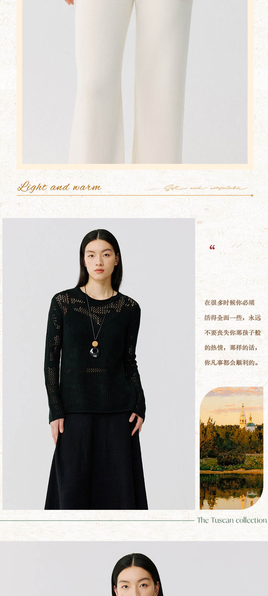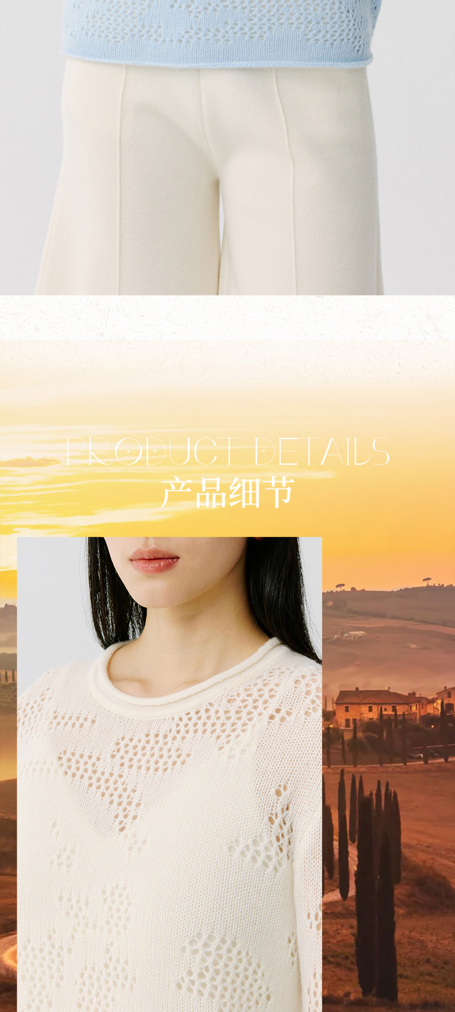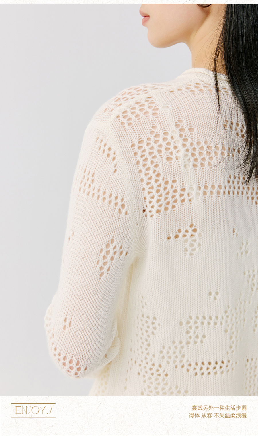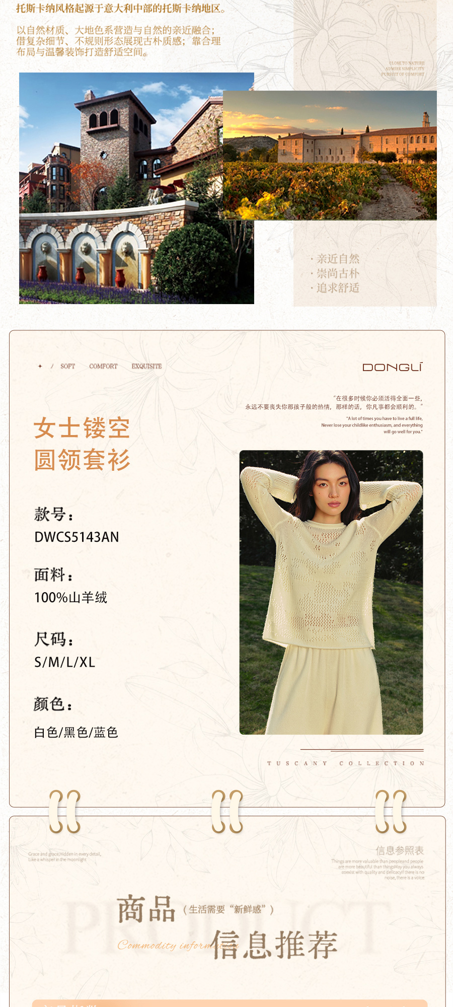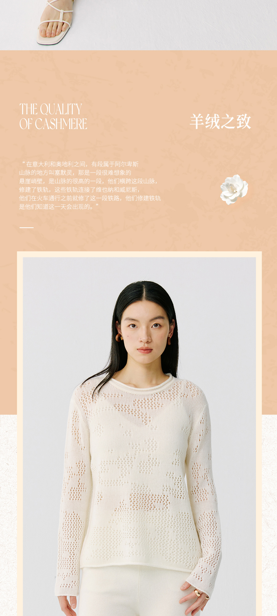 东黎 • 托斯卡纳系列—风与形 山羊绒女士镂空圆领套衫 5143