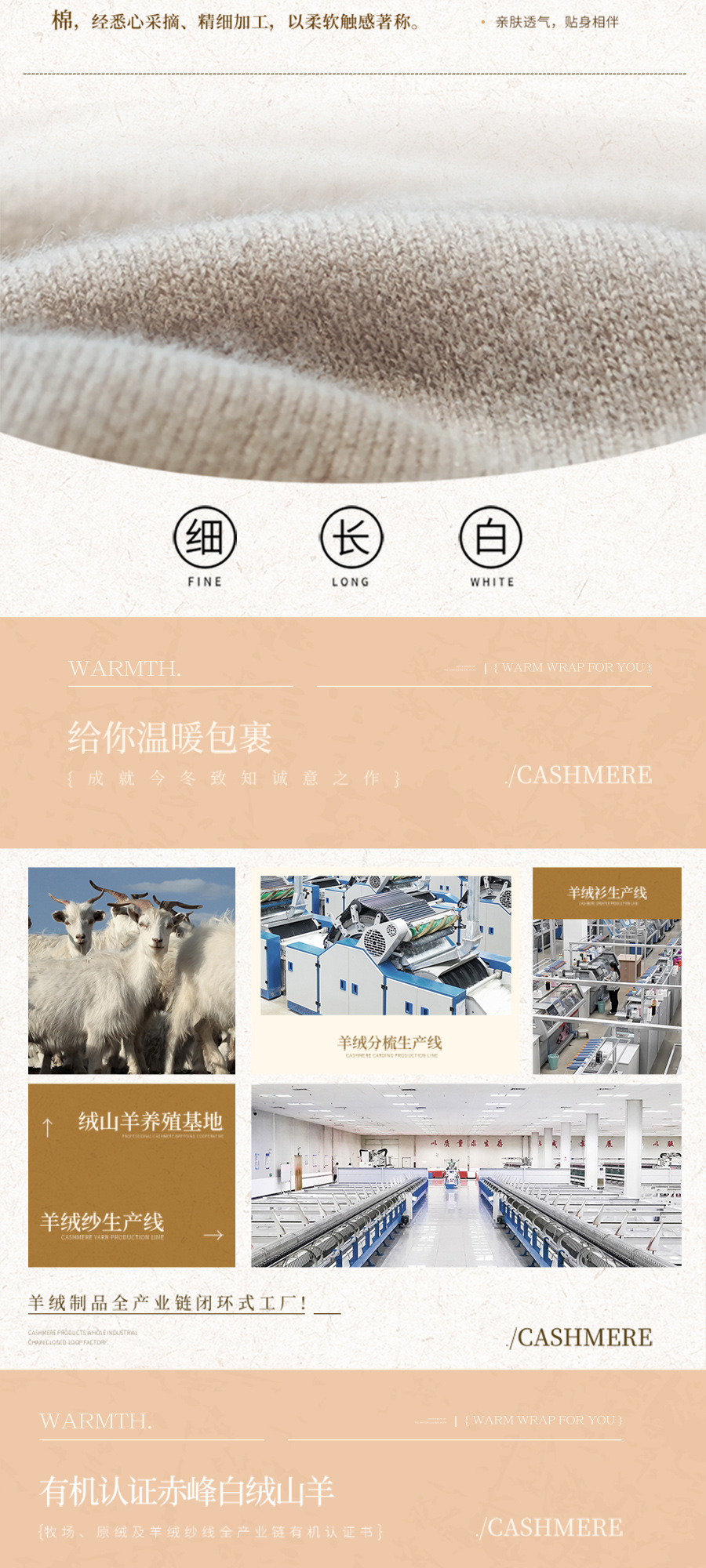 东黎羊绒是赤峰东荣集团自主品牌,自有牧场/羊绒制品全产业链优势,实现了羊绒从“牧场”到“商场”的华丽转变。