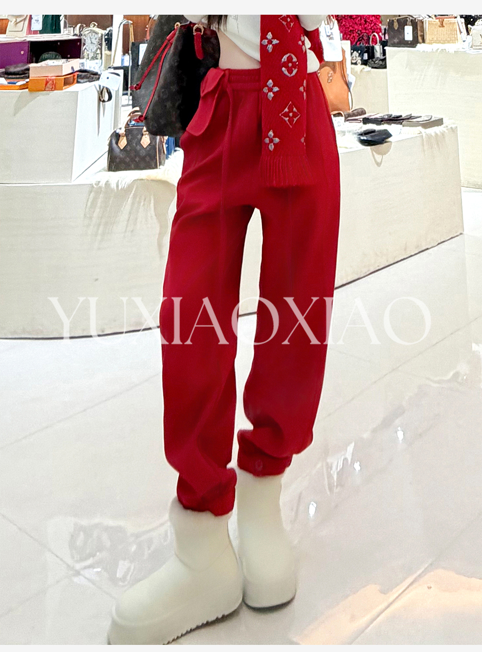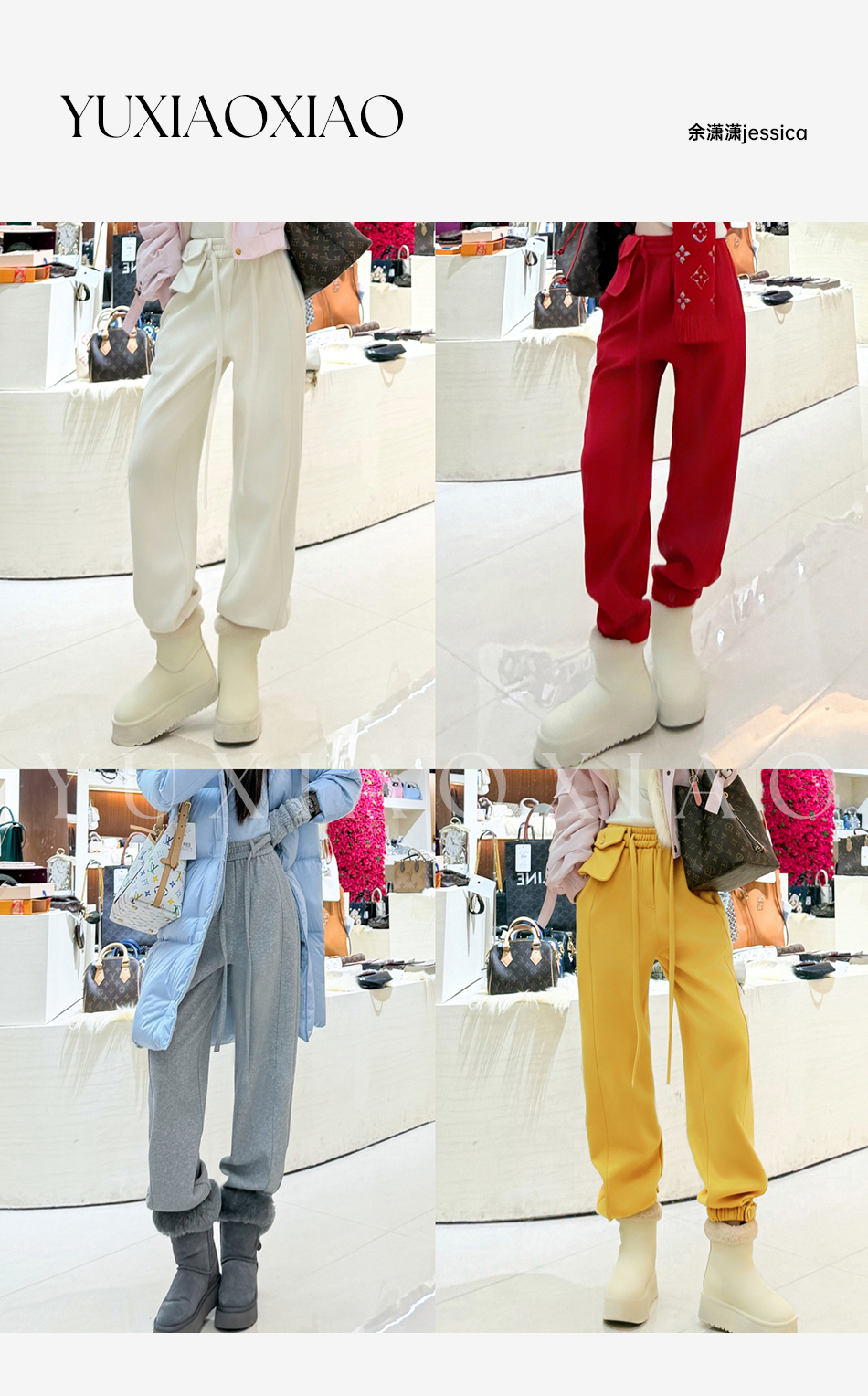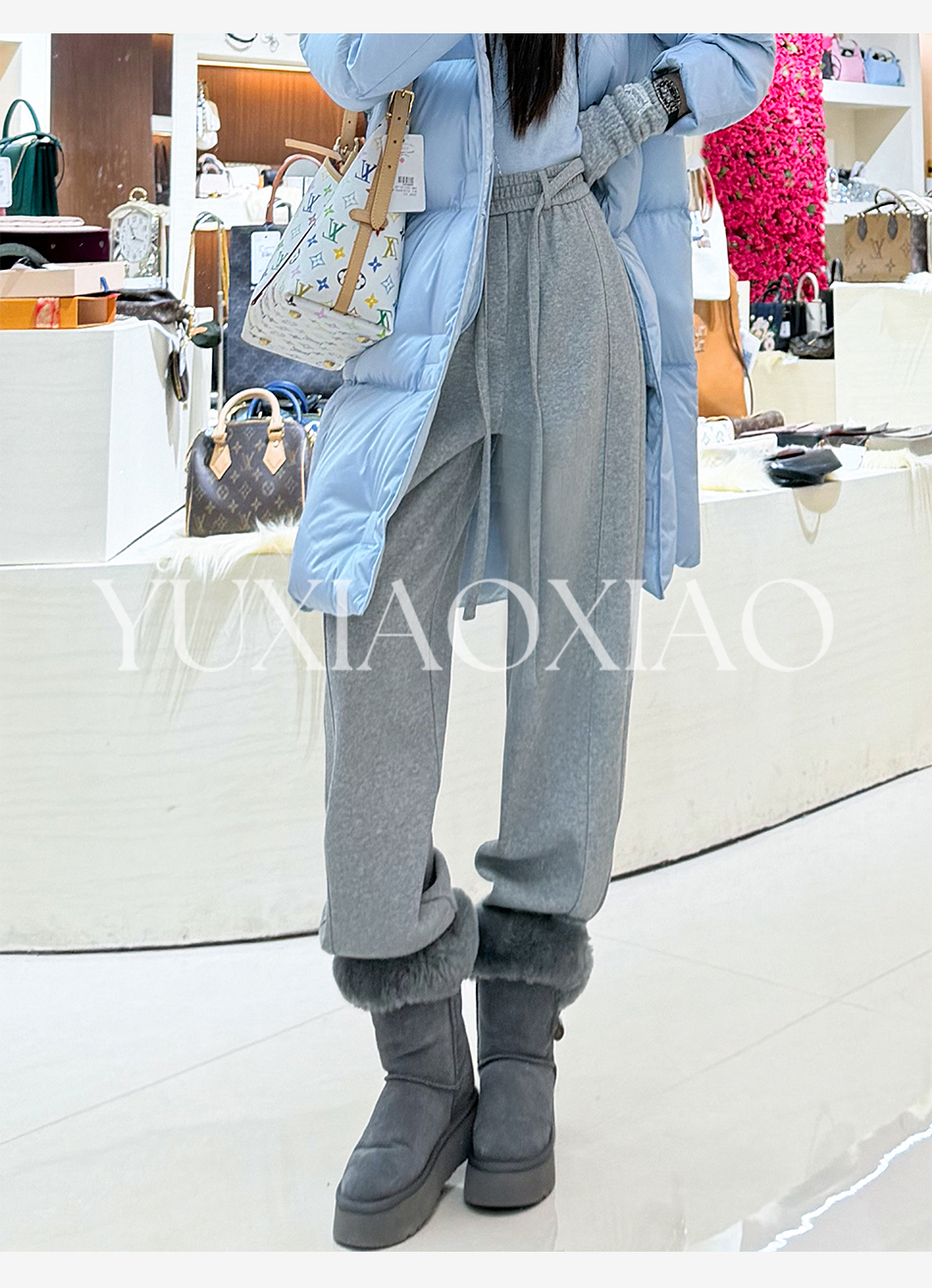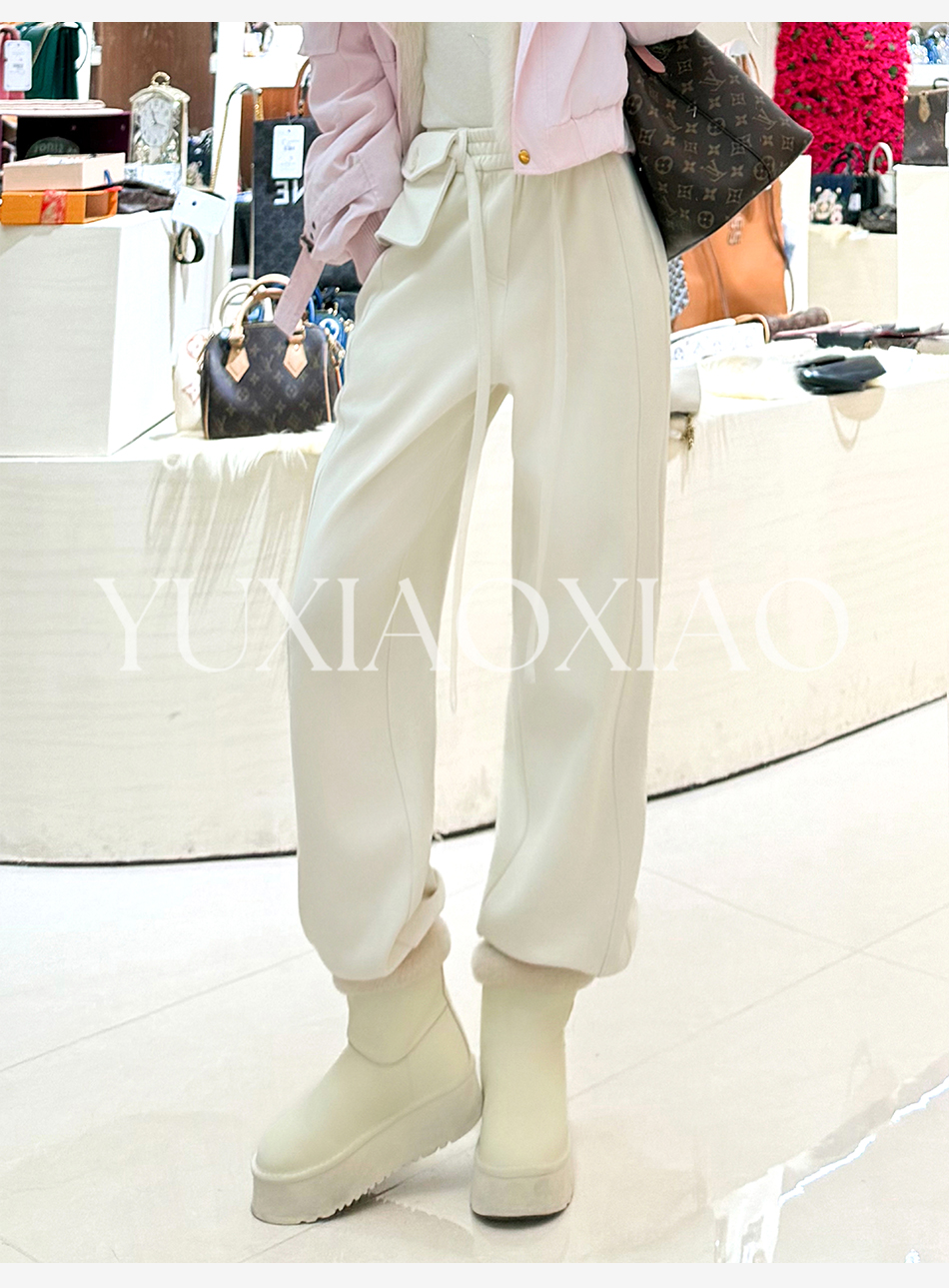 余潇潇【恋冬环游】含桑蚕丝加绒保暖时尚针织松紧收口休闲萝卜裤