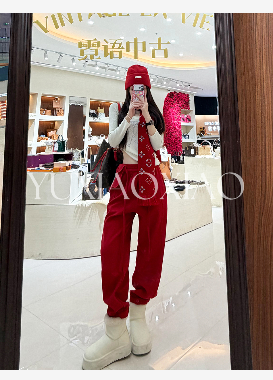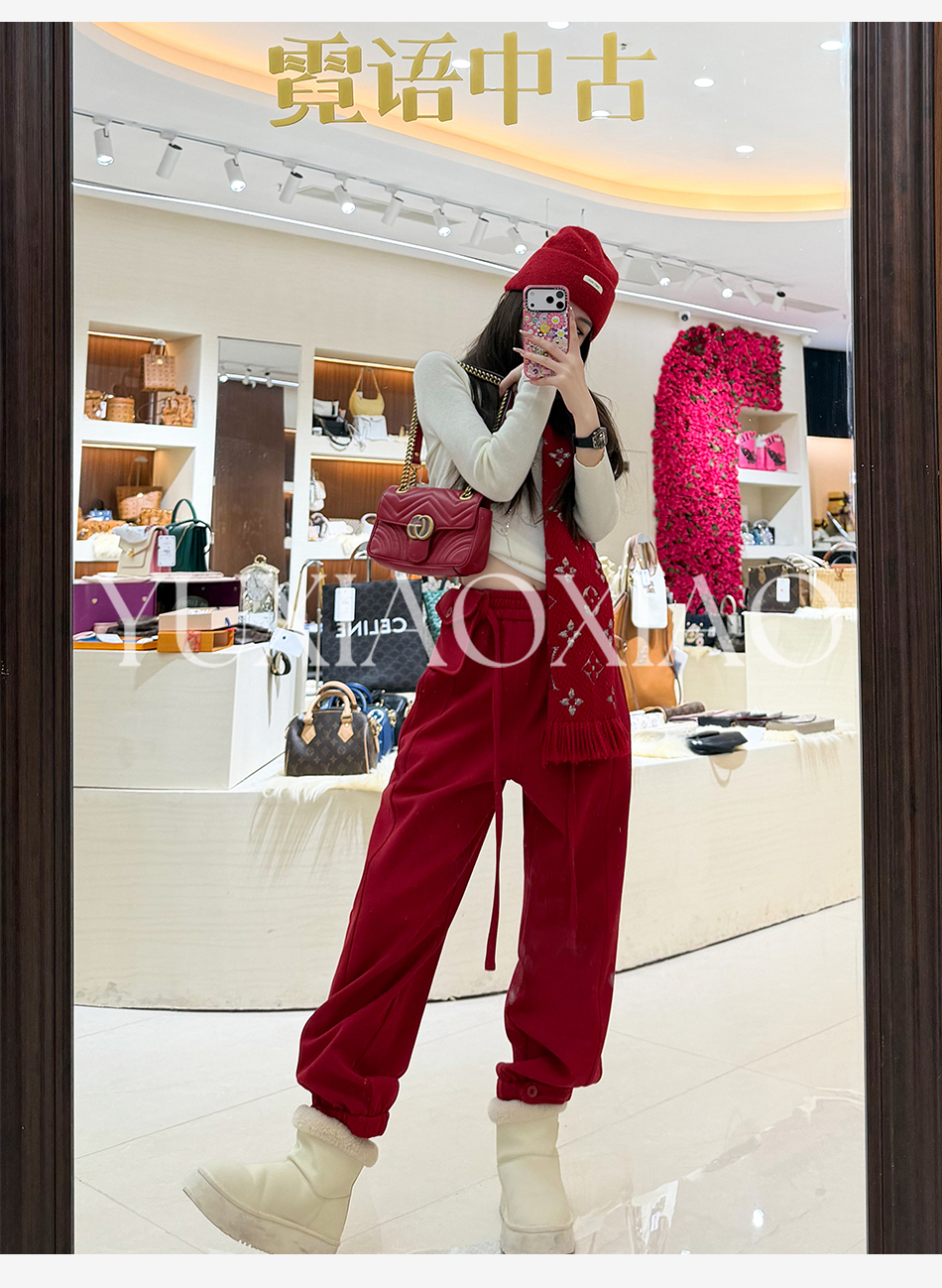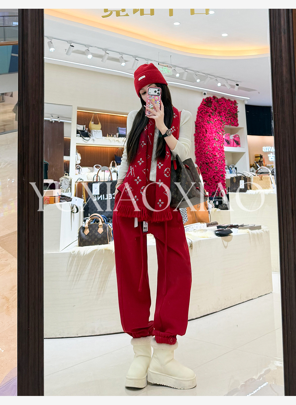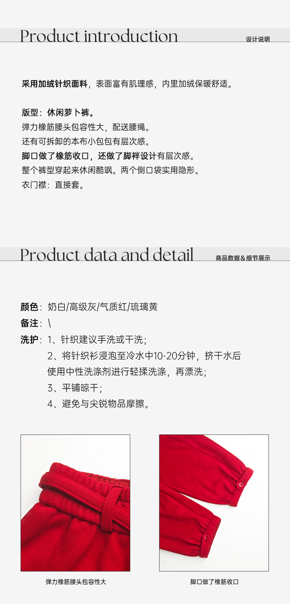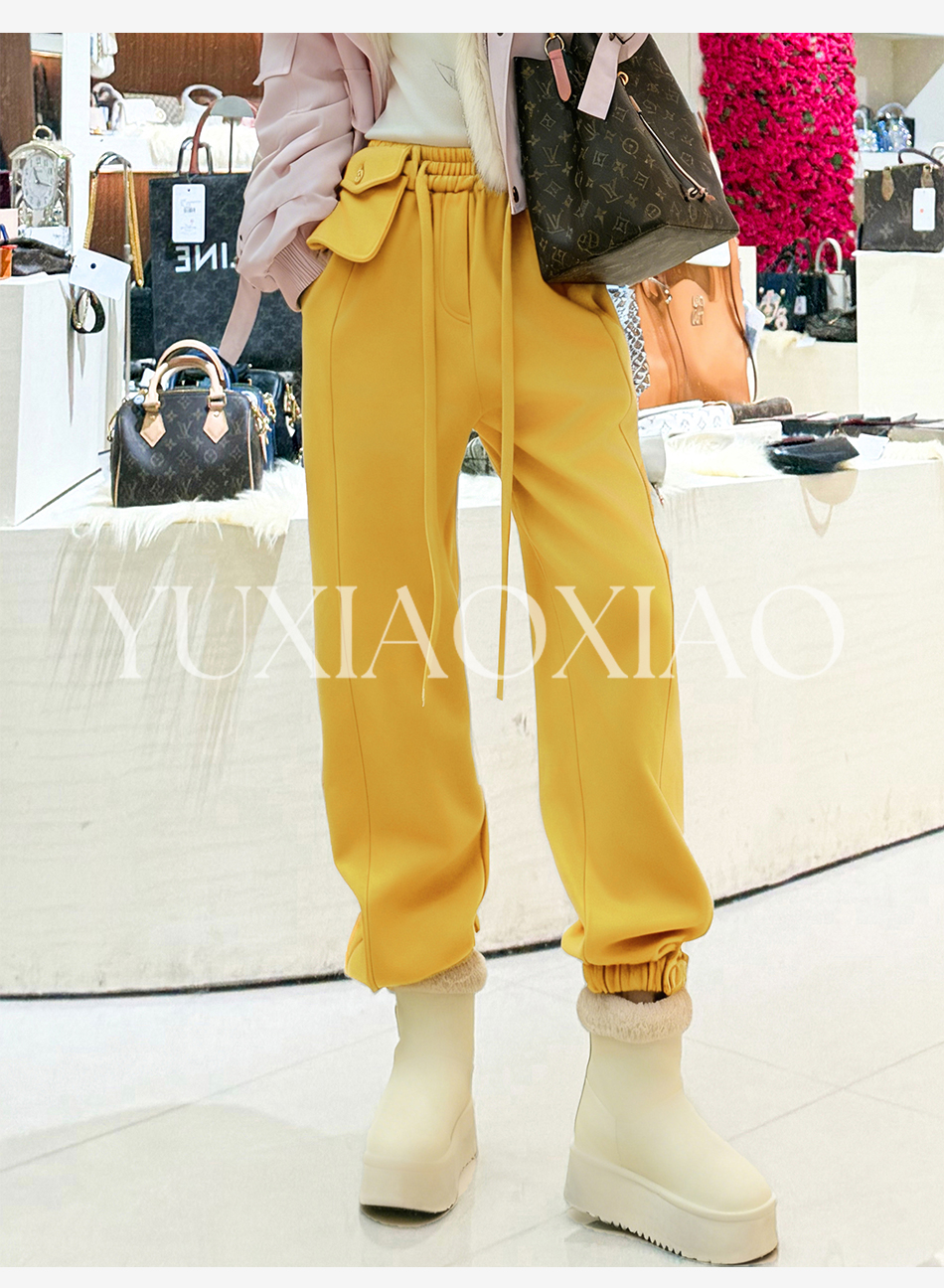 余潇潇【恋冬环游】含桑蚕丝加绒保暖时尚针织松紧收口休闲萝卜裤