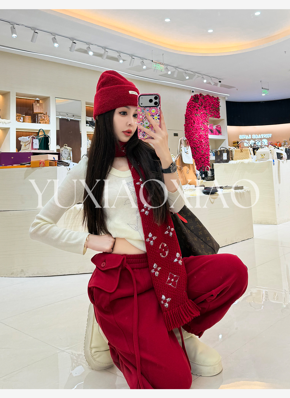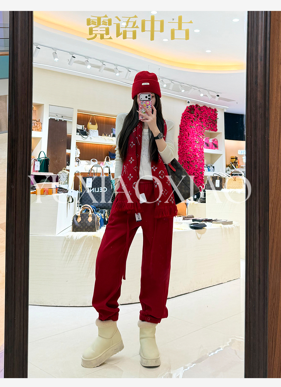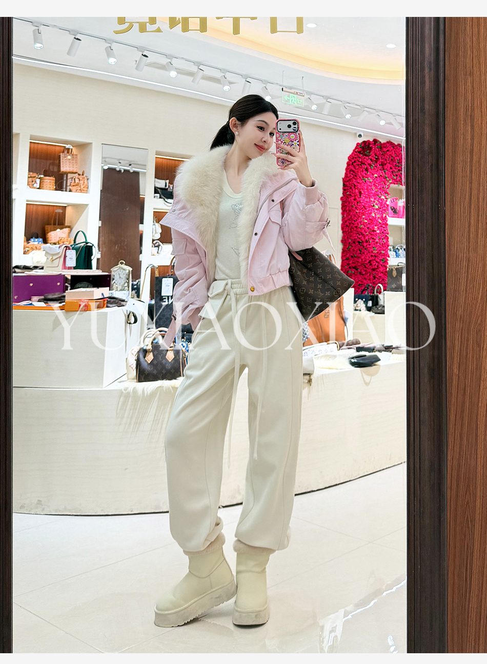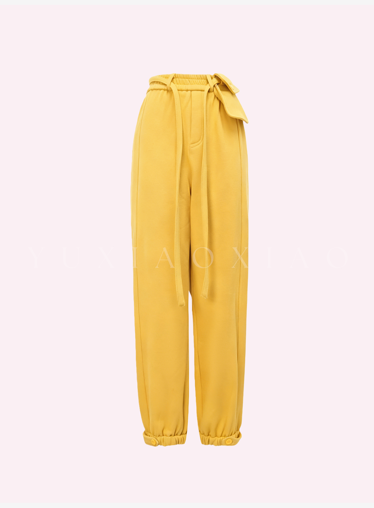 余潇潇【恋冬环游】含桑蚕丝加绒保暖时尚针织松紧收口休闲萝卜裤