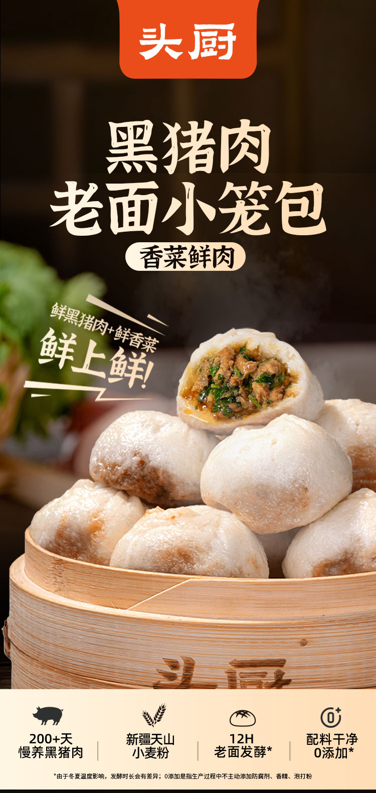 【头厨黑猪肉老面小笼包-香菜猪肉】手工鲜制,一口下去鲜香多汁,营养早餐,全家放心吃