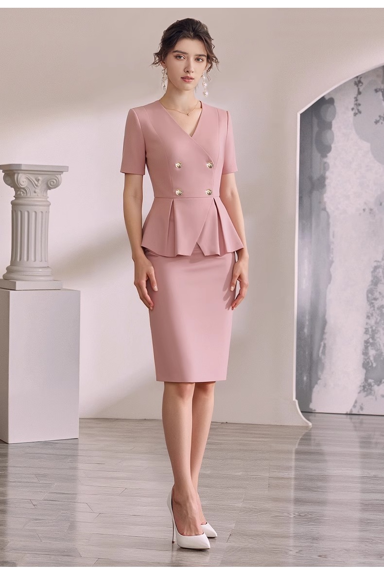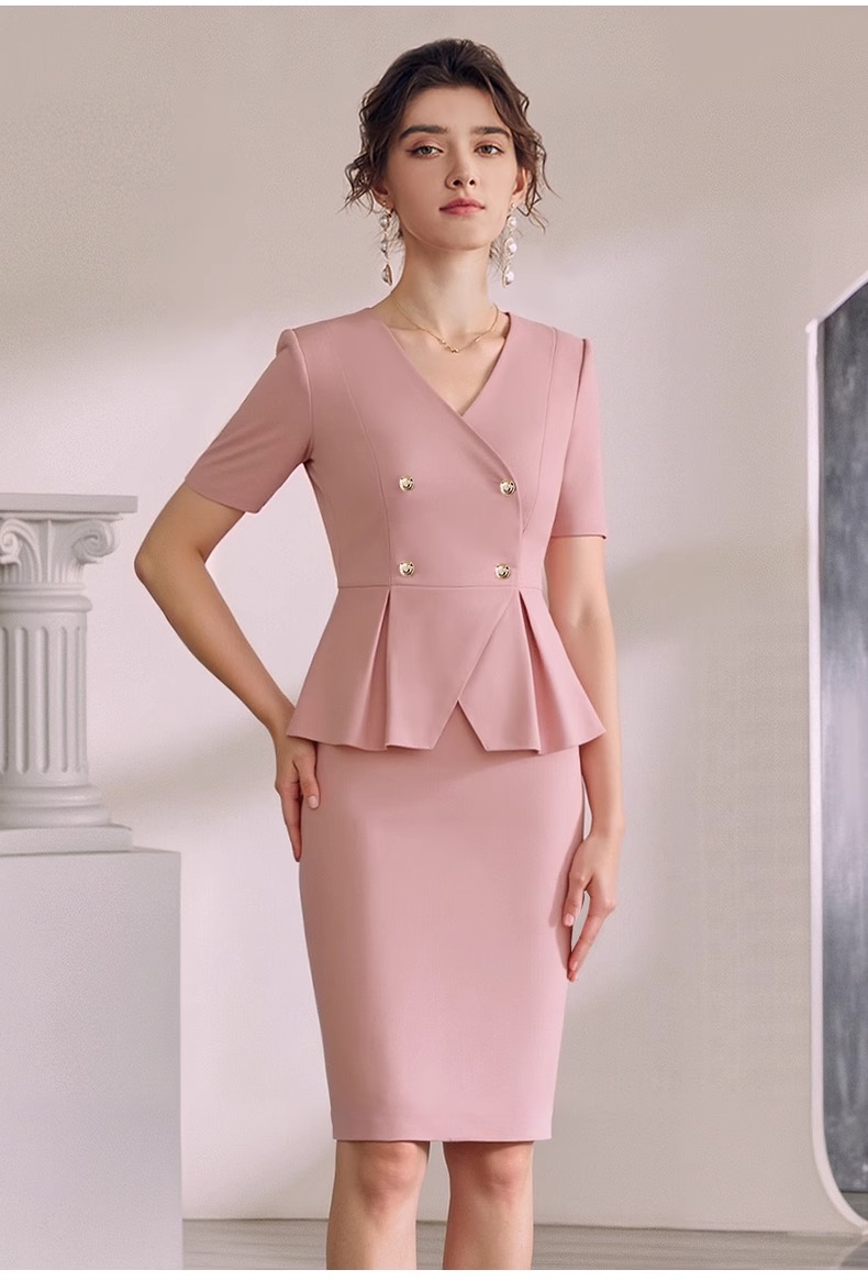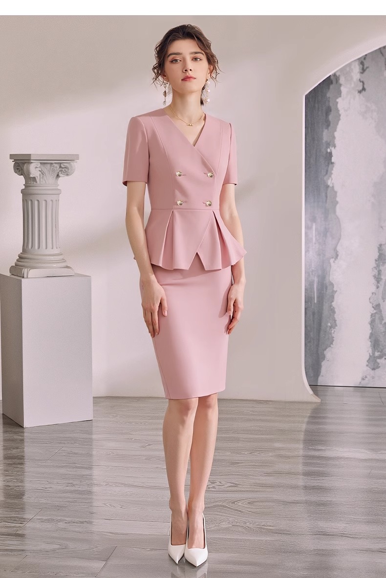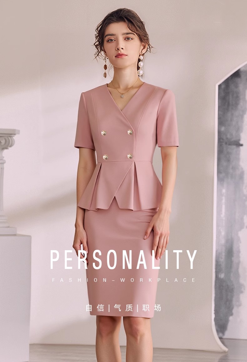 IWY/气夏季新款粉色假两件连衣裙修身显瘦气质女神范儿正装Q1388