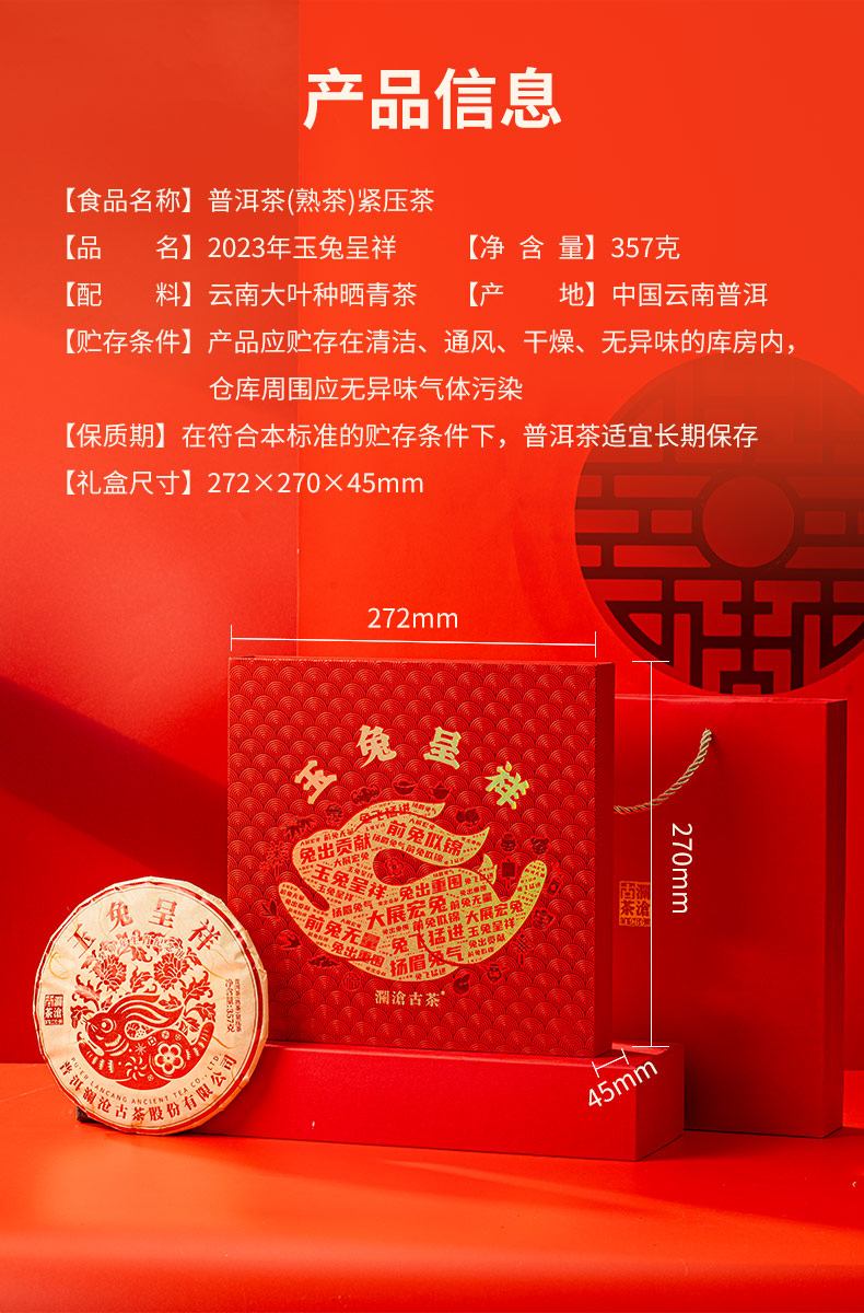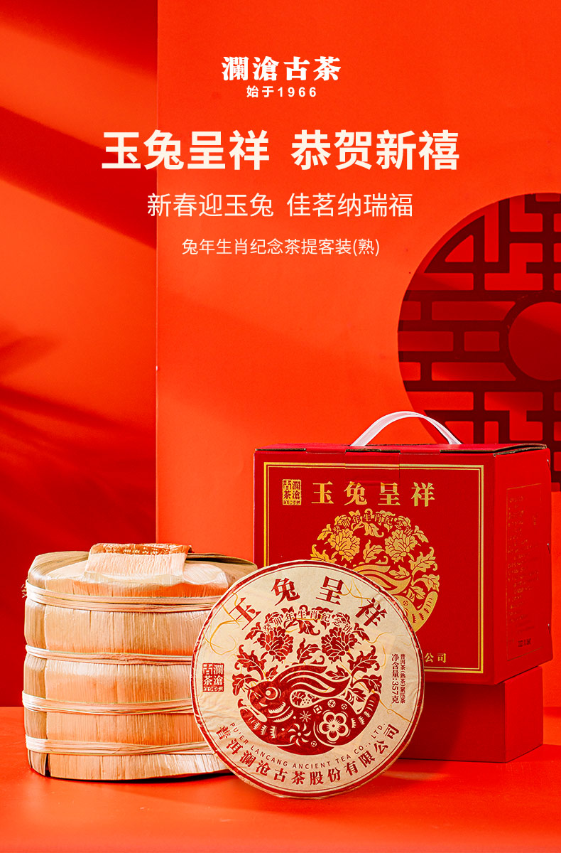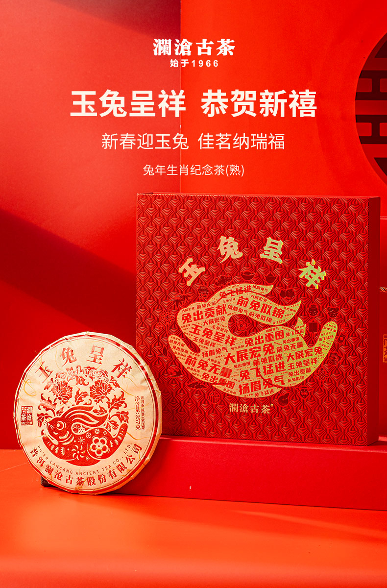 澜沧古茶2023年玉兔呈祥熟茶大饼普洱茶生肖饼云南茶叶送礼