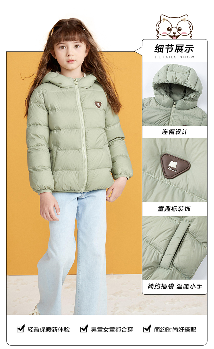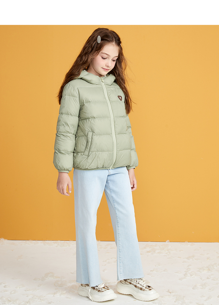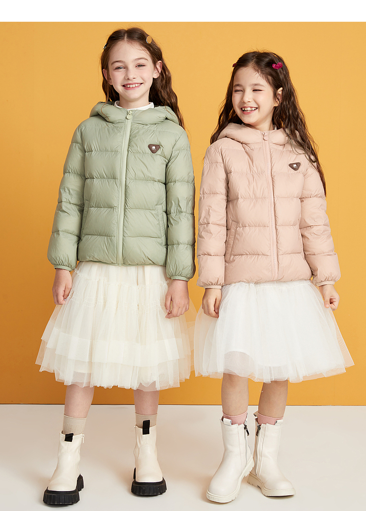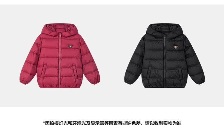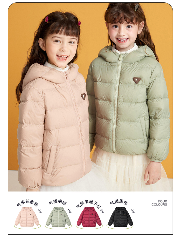 笛莎千与2024冬季新款男女童同款基础连帽轻薄羽绒服