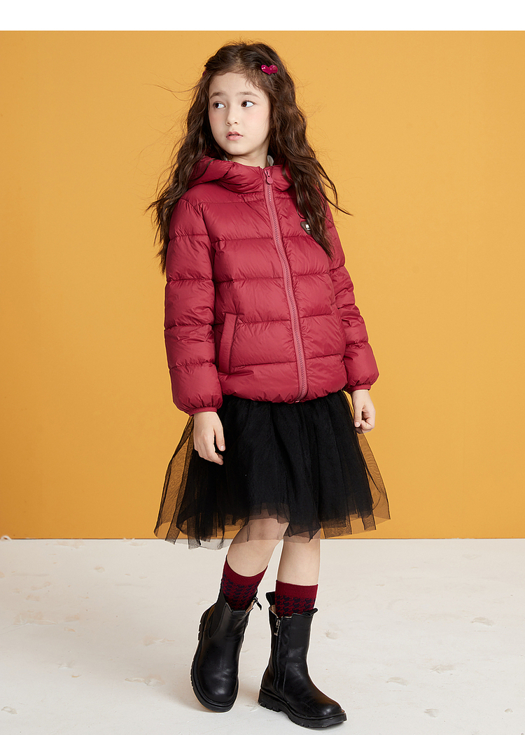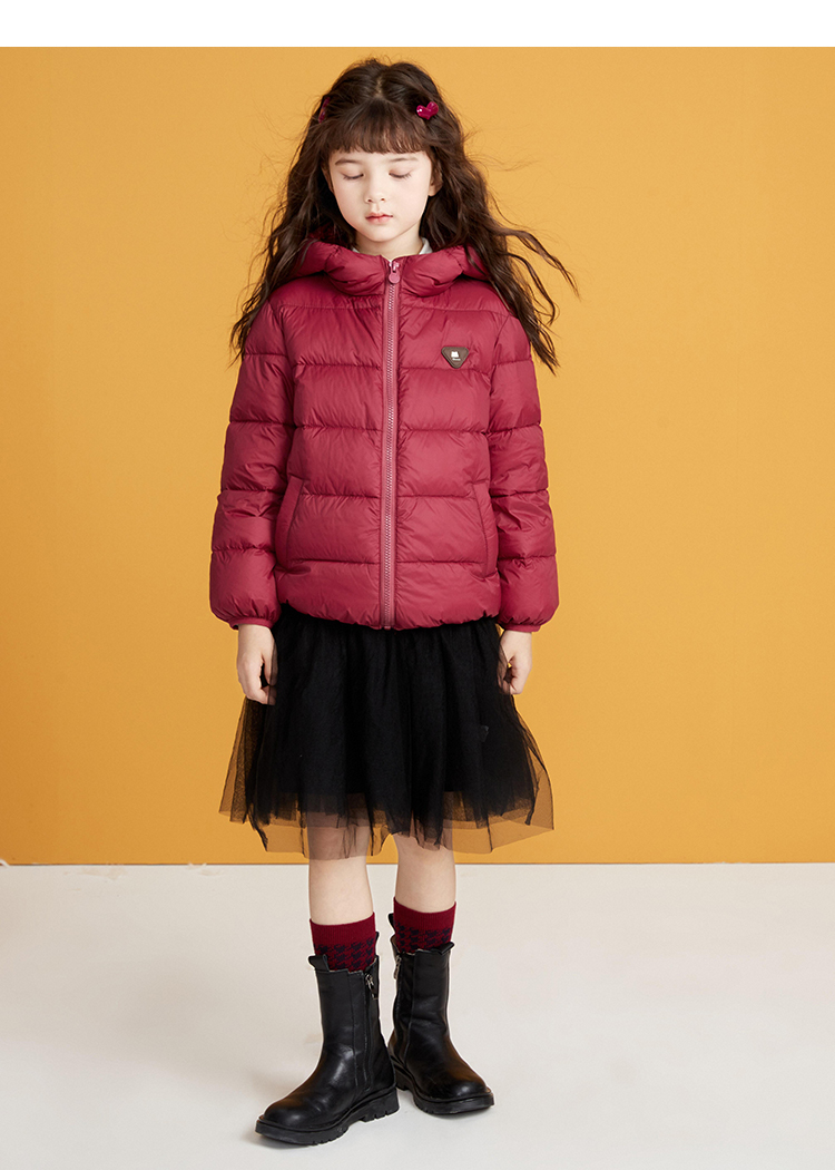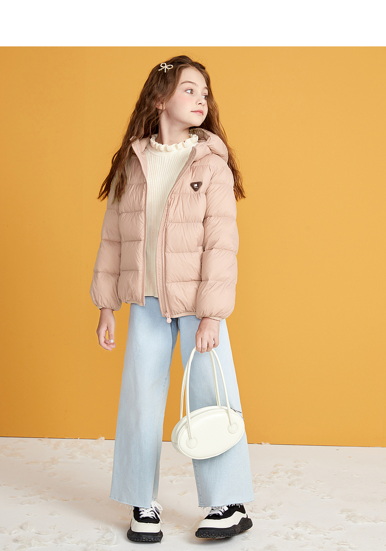 笛莎Deesha 童装女童羽绒服2025冬新款女童基础款连帽轻薄羽绒服