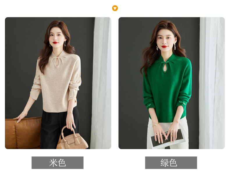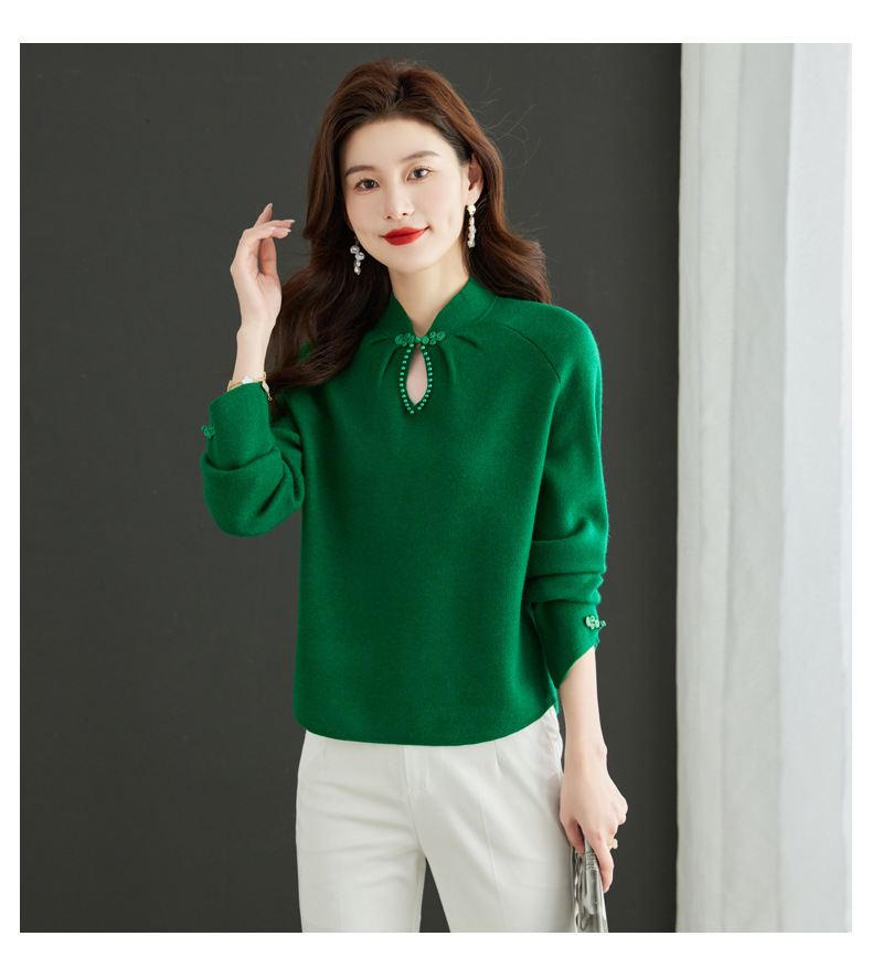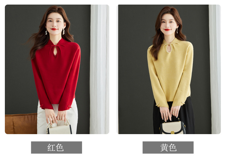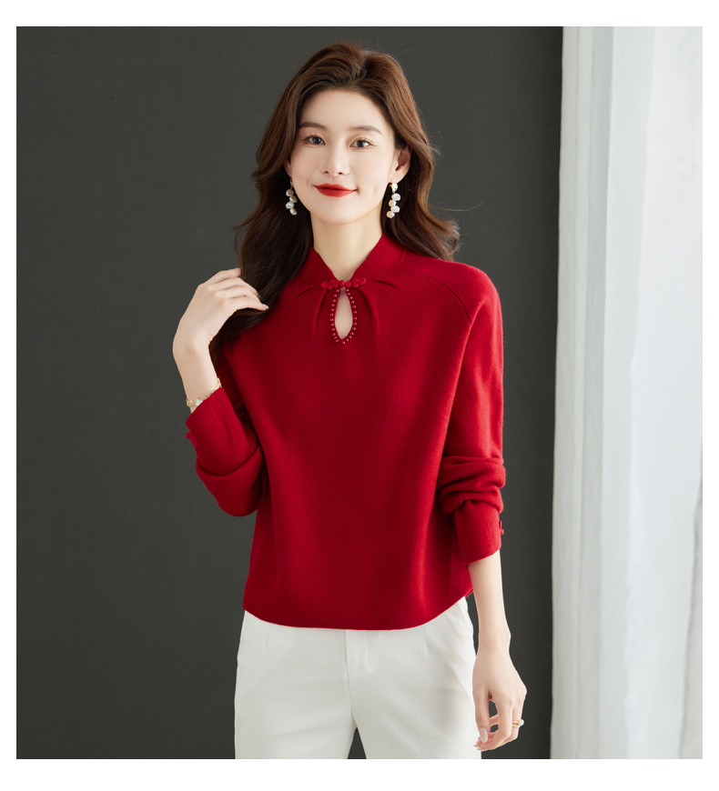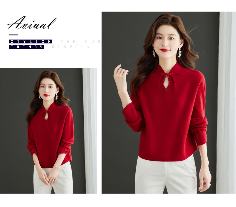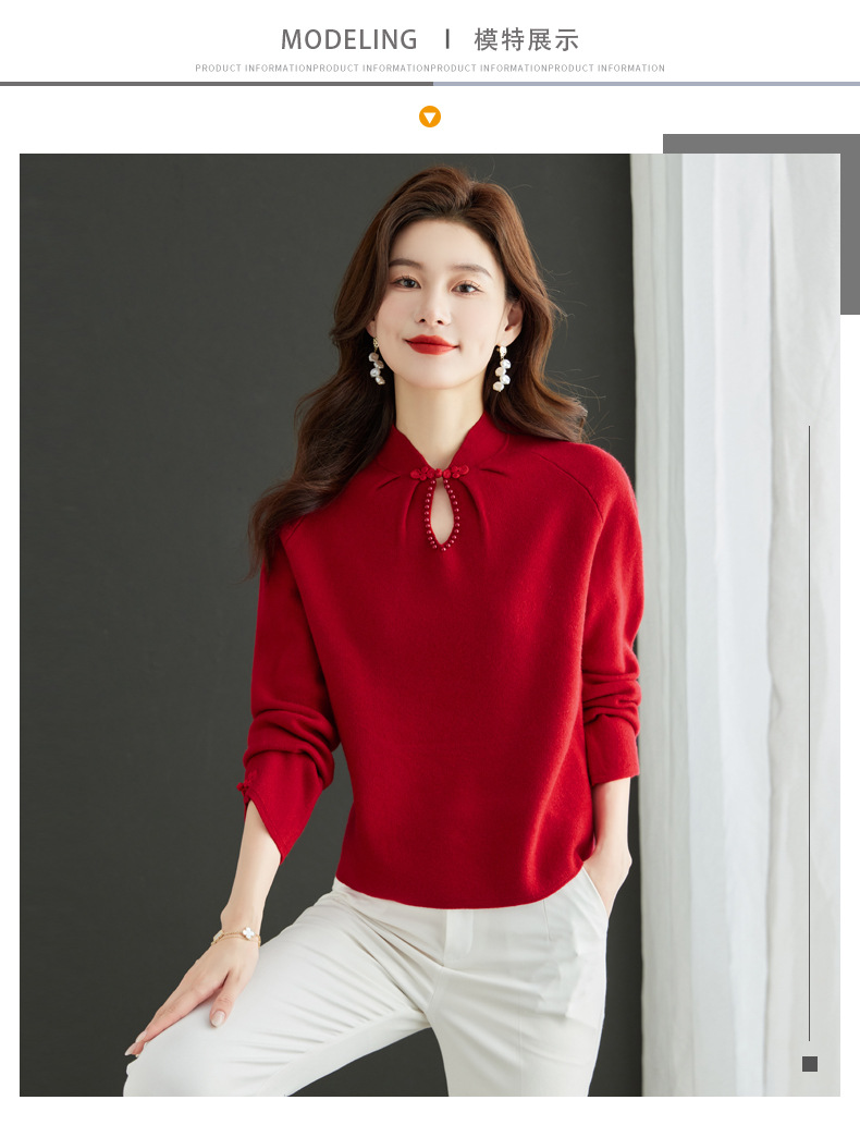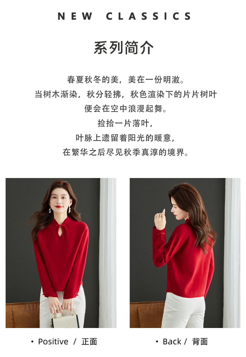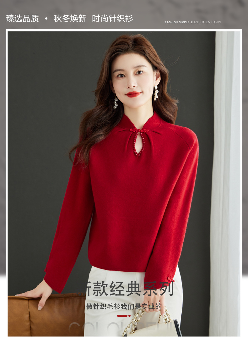 秋冬新款,设计感小香风毛衣女小个子短款针织立领国风红色上衣CC-MY-68278