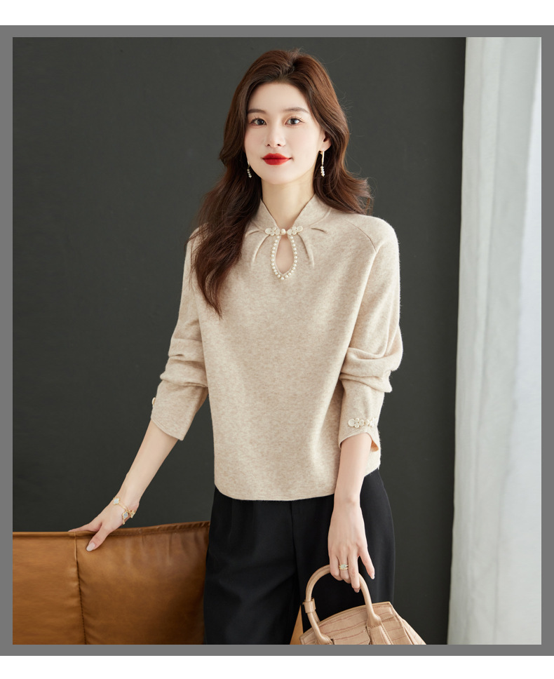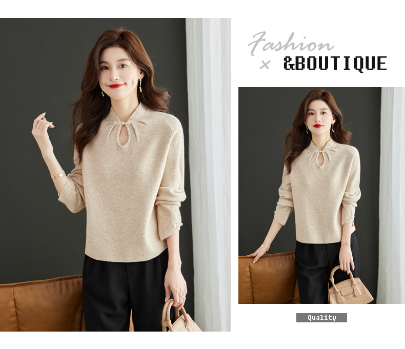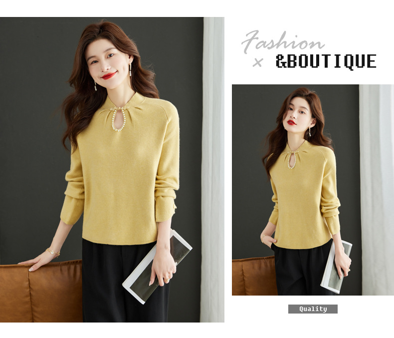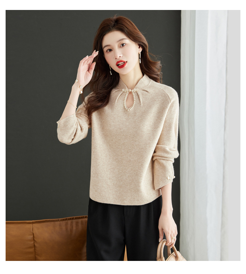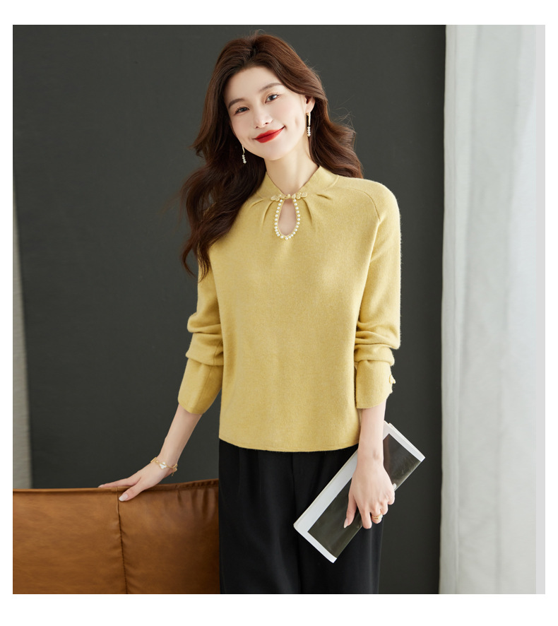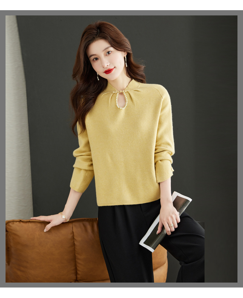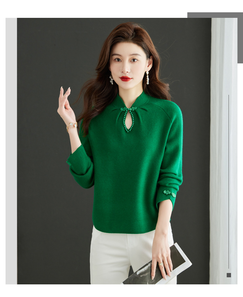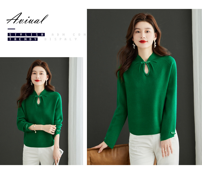 秋冬新款,设计感小香风毛衣女小个子短款针织立领国风红色上衣CC-MY-68278