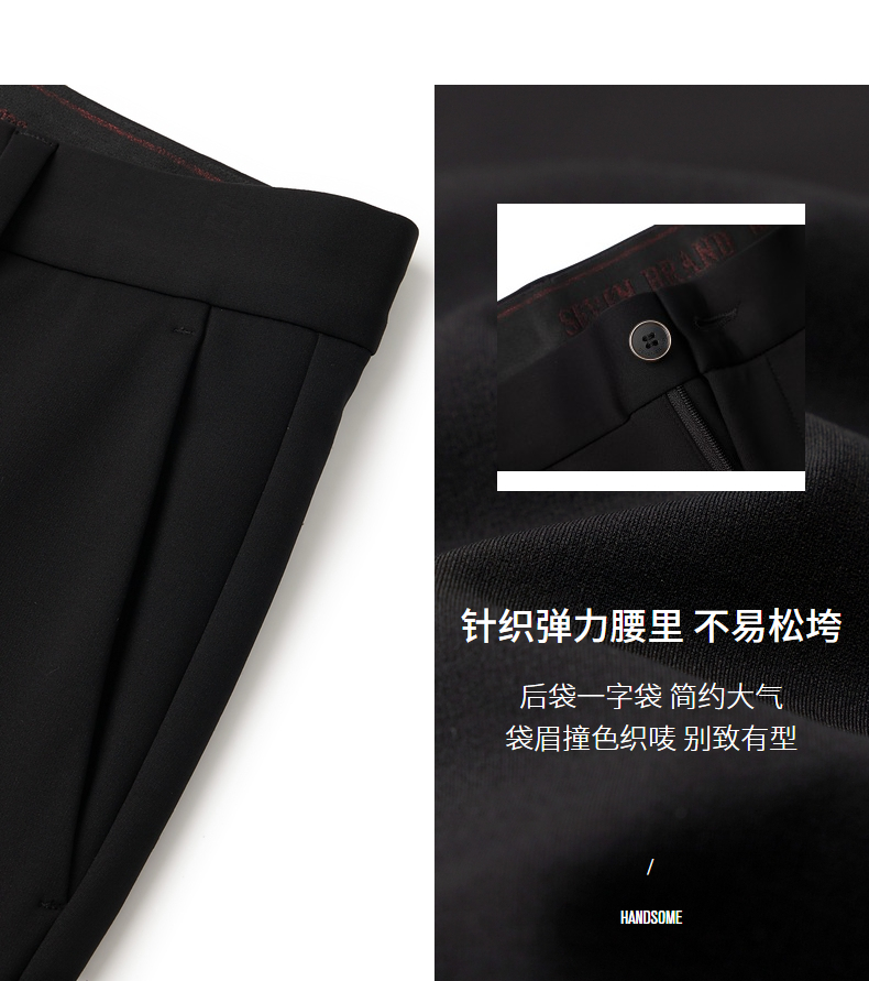 【高弹】柒牌磨毛休闲裤男2024秋冬新款商务休闲黑色百搭直筒长裤 127H70450